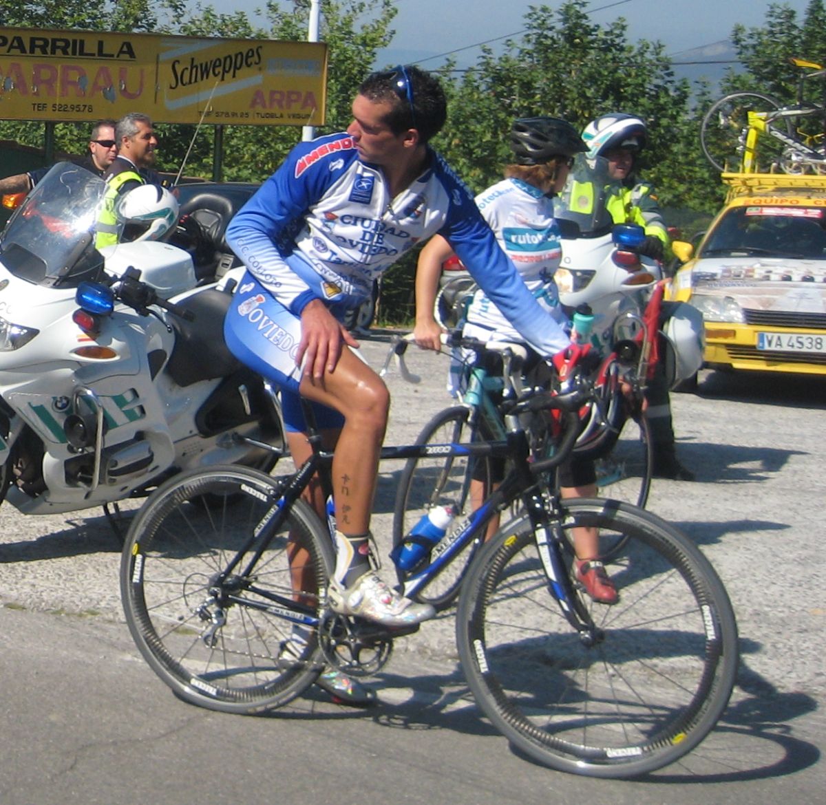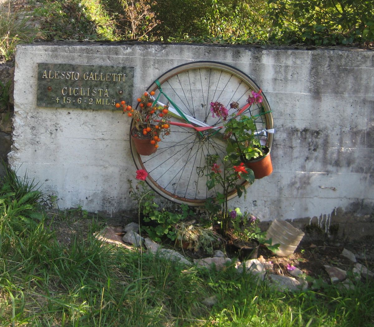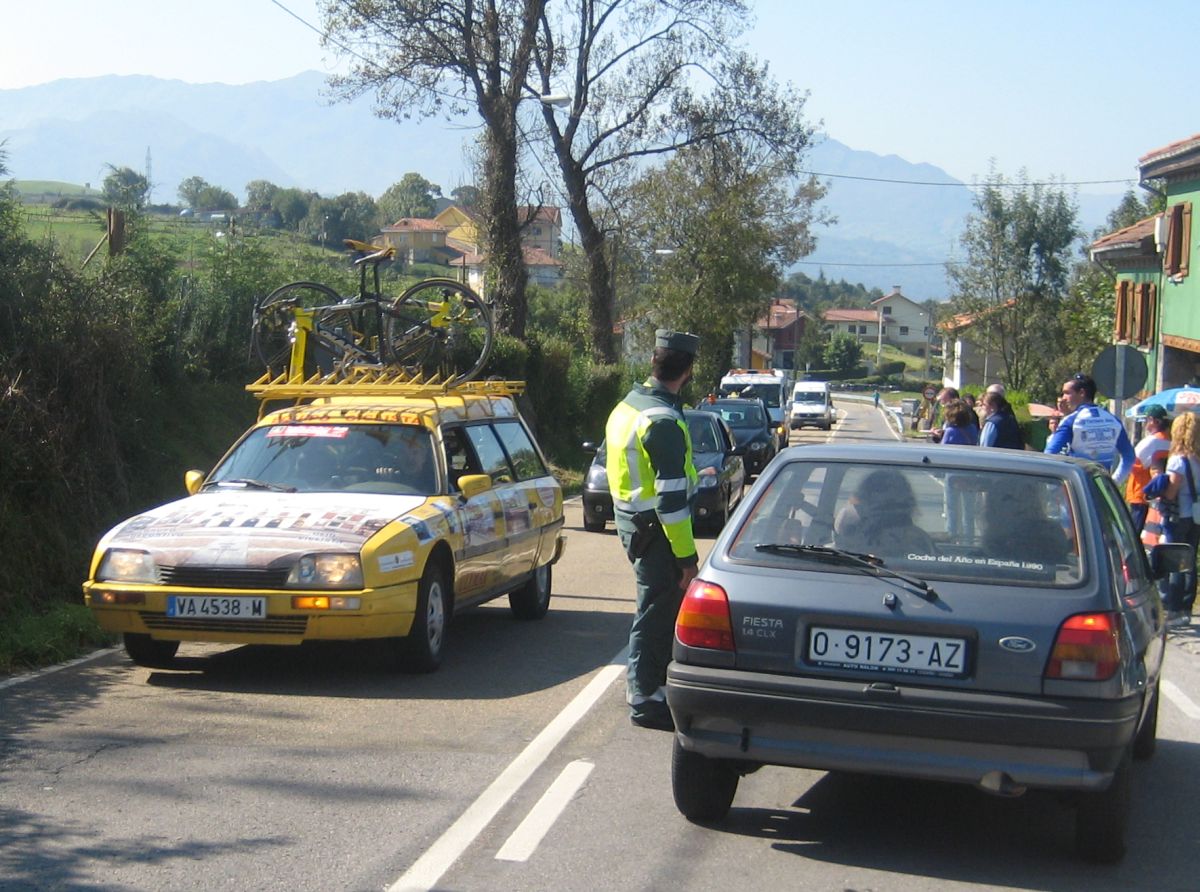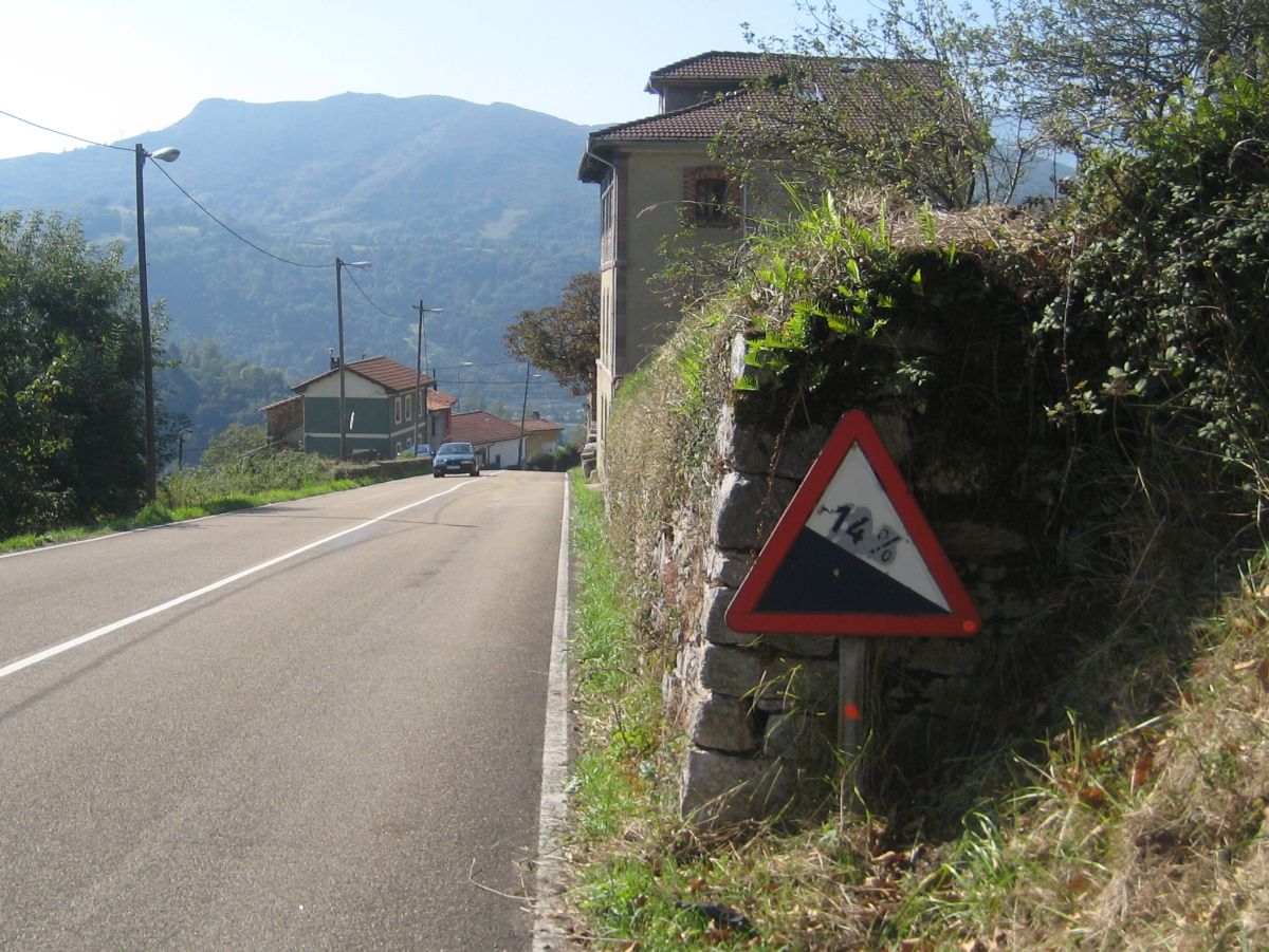 Llegamos a la primera subida, nadie quería atacar, todos con miedo en el muro del 14%, en el paso por la rueda de recuerdo a Alessio Galleti, fallecido allí en la subida al Naranco del 2005. Parecía la subida a Montjuic de profesionales, todos subiendo despacio las primeras subidas, no queriendo gastar las balas al principio. Yo iba observando el percal, mirando atrás a ver como iba la gente subiendo a ese ritmo cómodo, algunos se iban quedando, al fondo alguno buscando agarrarse a los coches y todo.