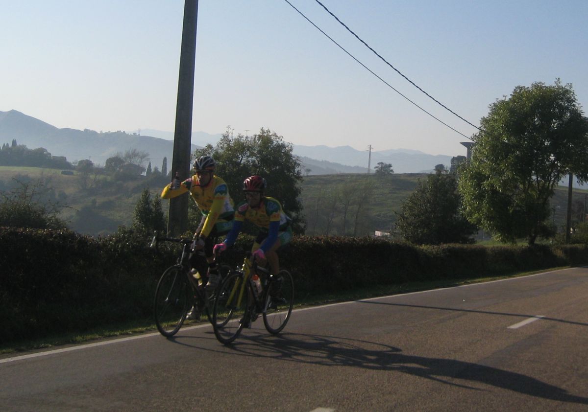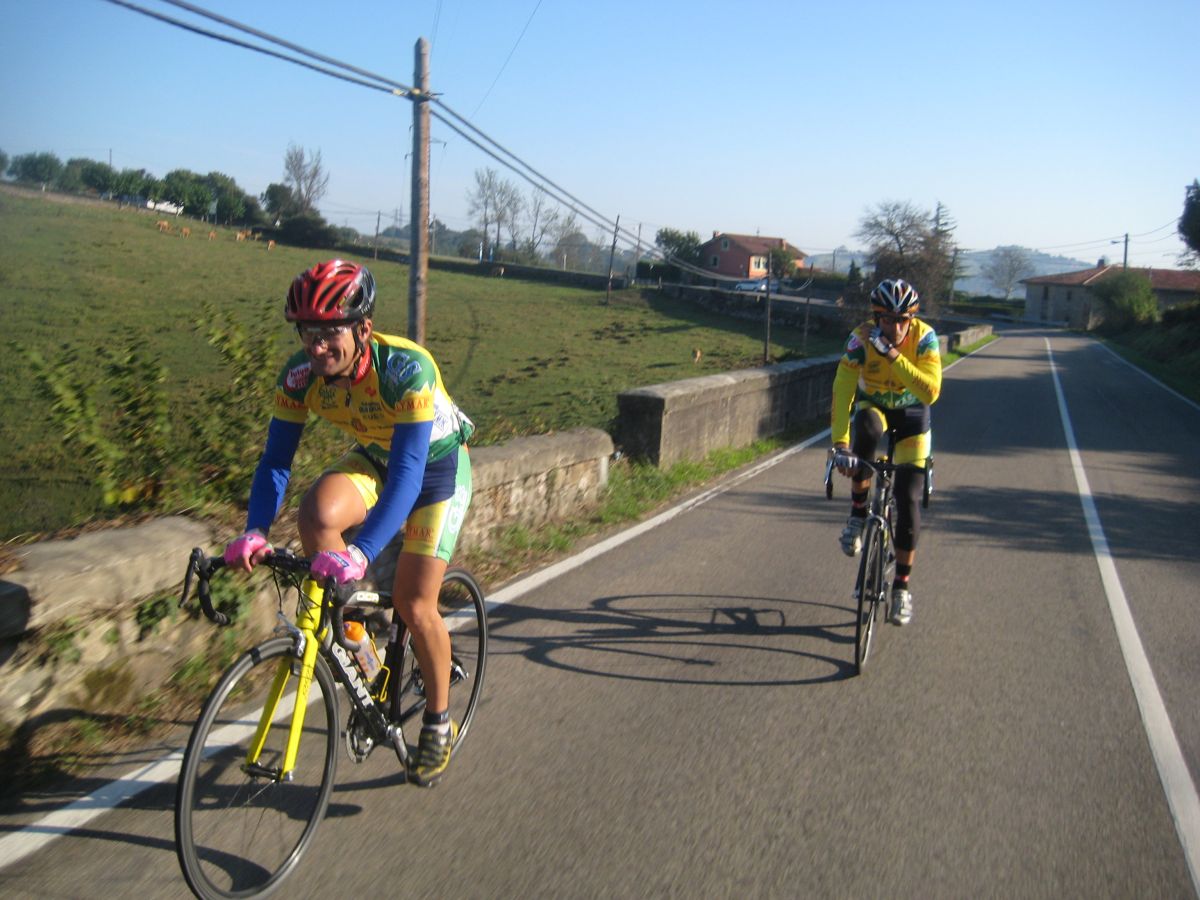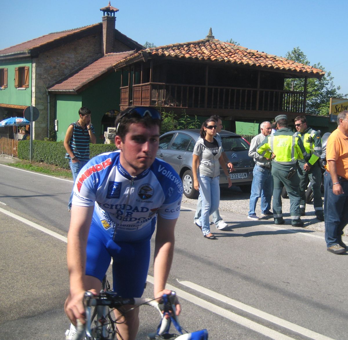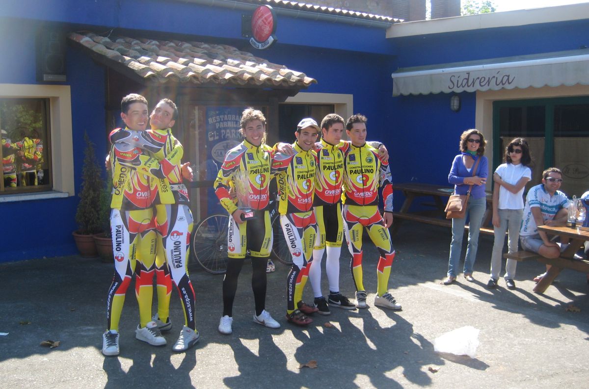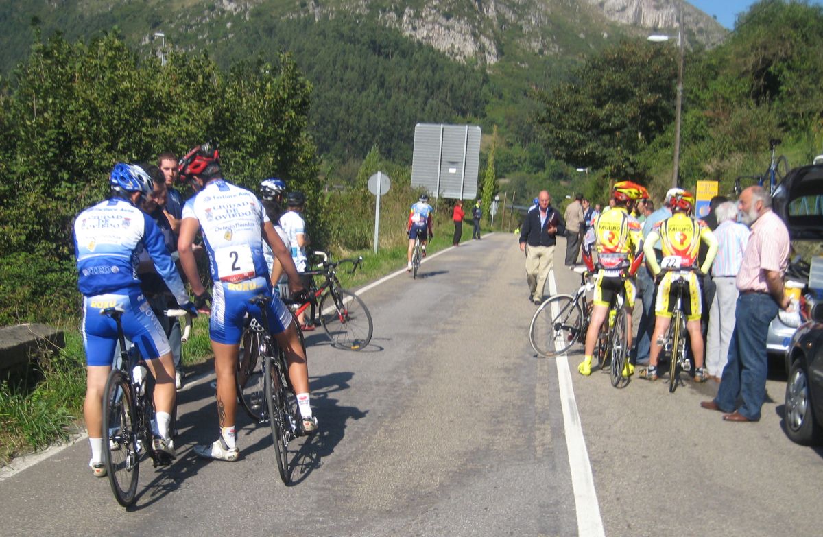 Ya en el último km, metí el plato y ataqué, ya esaba harto de tanta ostia, de tanto paseo, me fui con algunos mas, que salieron muy cucos y me ganaron el sprint por la montaña, yo pasé tercero por el Alto de la Manzaneda, San Esteban de las Cruces, a la altura de la Sidreria Parrau, donde estaba situada la línea de meta. Parecía que se animaba la carrera, con mi ataque y el sprint de la montaña nos habíamos marchado 4 hombres, 2 Paulinos, Treceño y yo, me puse a dar continuidad con Treceño, al principio los Paulinos no pasaban y eso que eran mayoría, no iba su capitán Mario de Sarraga y eso les creaba dudas.