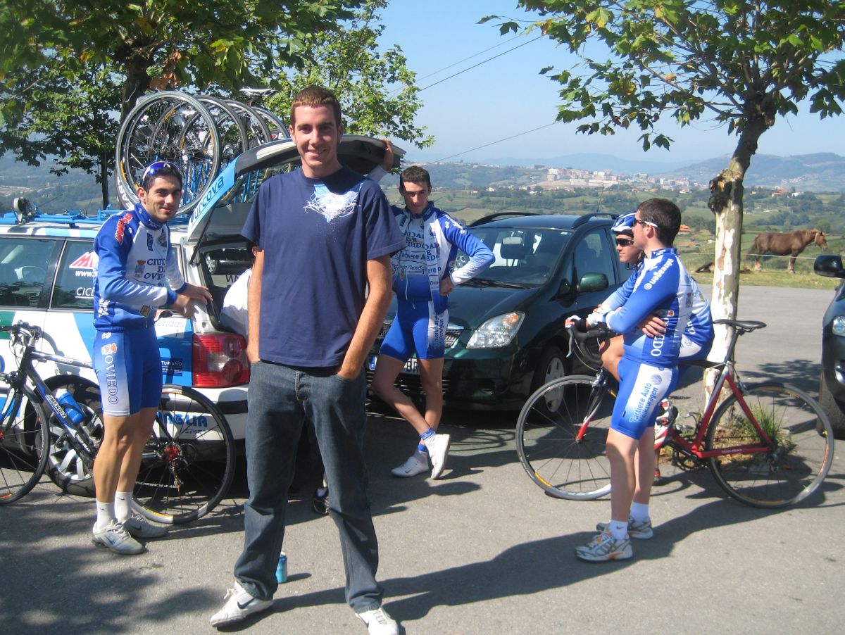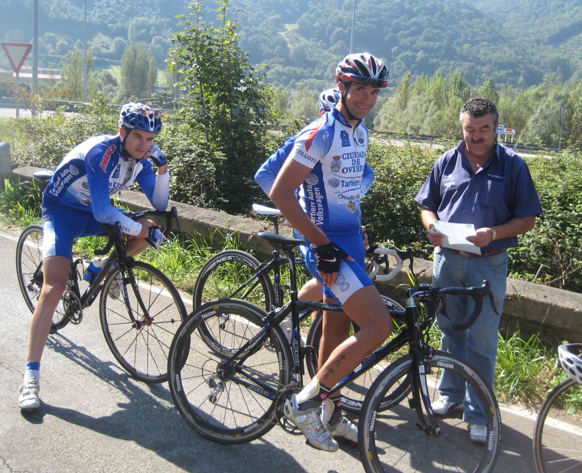 Bonita carrera en La Manzaneda, Oviedo, que constaba de 2 sectores, el primero en línea, de 55 kms, con 3 subidas al durisimo col de La Manzaneda, con rampas del 14% en su inicio, y un final también duro, que iba a hacer daño, el segundo sector, cronoescalada de 4 kms a la Manzaneda, con los hombres que se terminaran el primer sector. El equipo que aqui veniamos, el de siempre, el Julymar de Segovia, Cuco y Diegoweb.