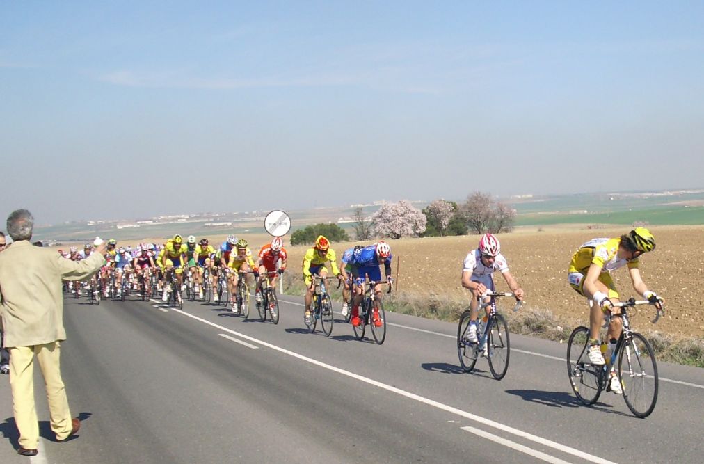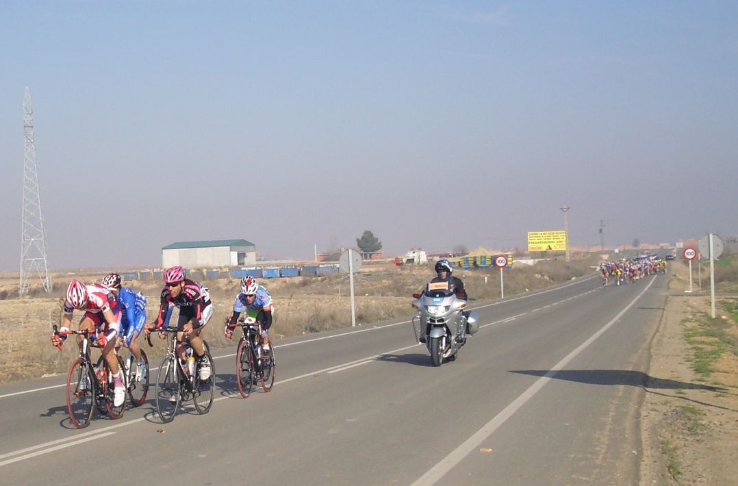 El Mando del pelotón lo cogió Luis Miguel Peñas, el solo se puso a tirar llevando al paquete enfilado, y recortando a los escapados, menuda marcha llevaba Peñas, en esta subida al repecho me quedé en la oficina, ya estaba la carrera muy organizada y en la oficina era donde mas se recuperaba.