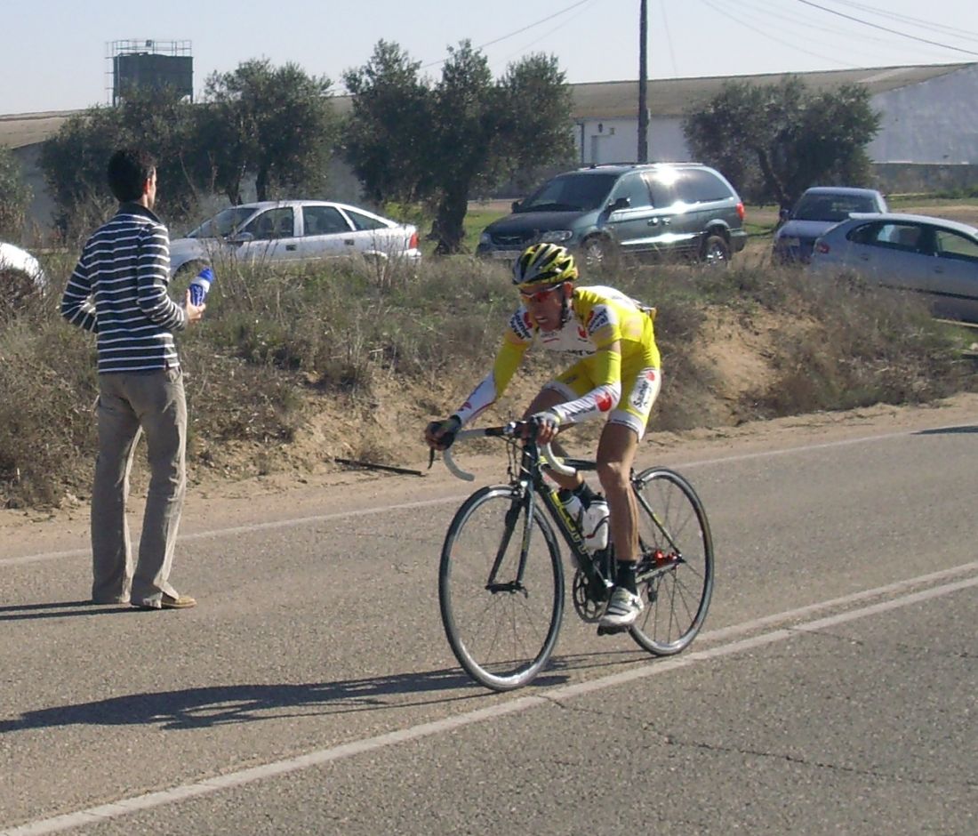 Yo al ver que ya no cogían y que lo que se iba a esprintar ya en el pelotón era para un octavo, decídí jugarmela y atacar de lejos, sabía que yo solo tenía todas las de perder pero no me jugaba gran cosa, ataque a 3 kms de meta, antes de la última subida, me fui solo y yo mismo me sorprendí del hueco que abrí, la pena que iba solo, y yo solo con la Cannonda mucho mucho no podía remar para arriba en la subida.