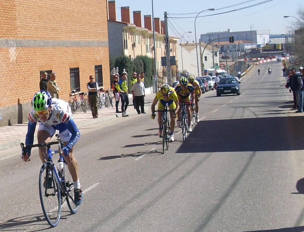 Yo volví a arrancar en el mismo repecho de antes, otra vez cogí algo de hueco pero el pelotón nos neutralizó antes, ya no querían dejar sorpresas, nueva subida a Olías del Rey, que se hizo mas fuerte, esta vez se engatilló un poco mas la cosa, paso esprintando por el pueblo, y mucha tensión otra vez, el culpable de la tensión era que se estaba levantando un poco de aire.