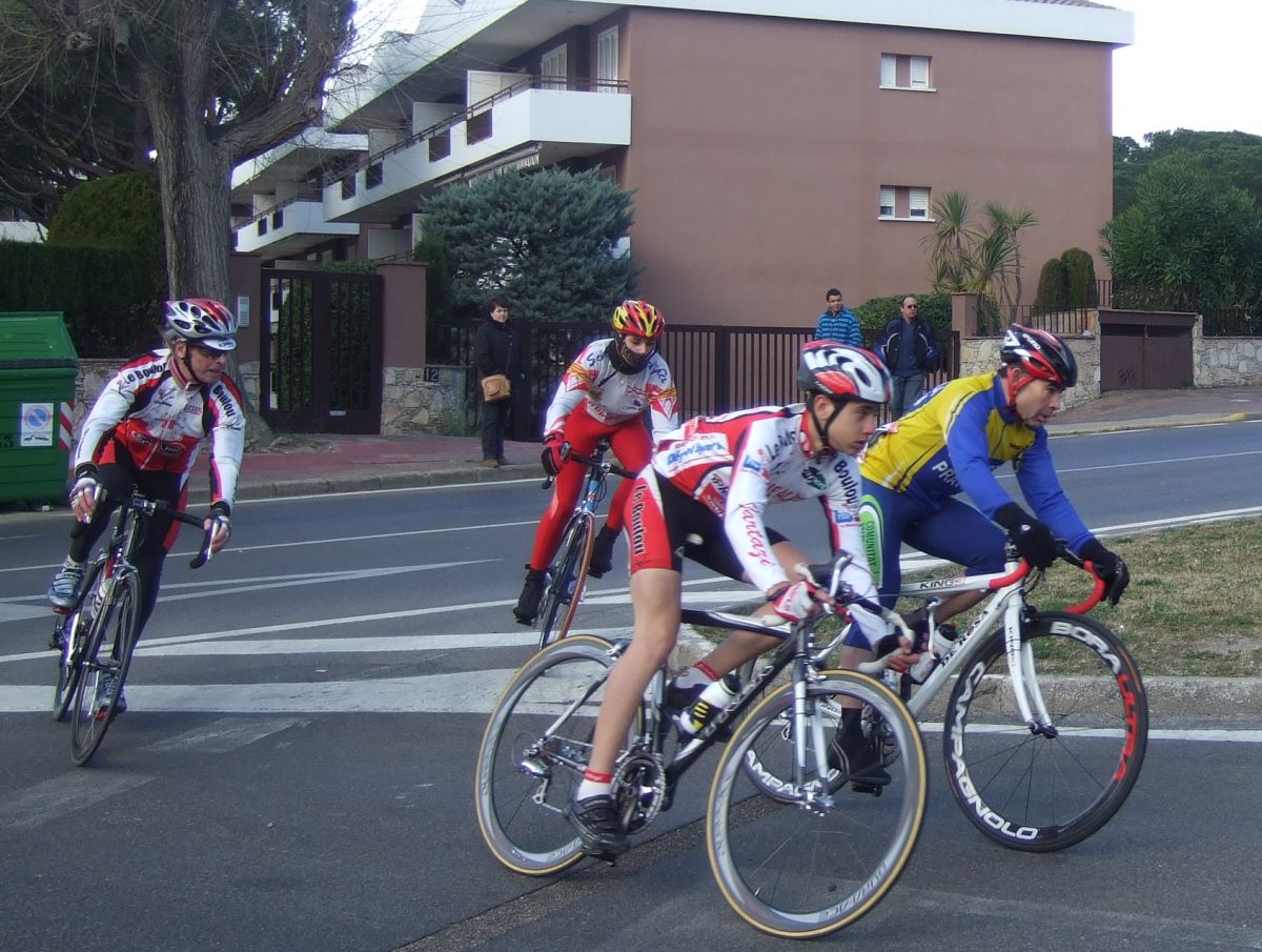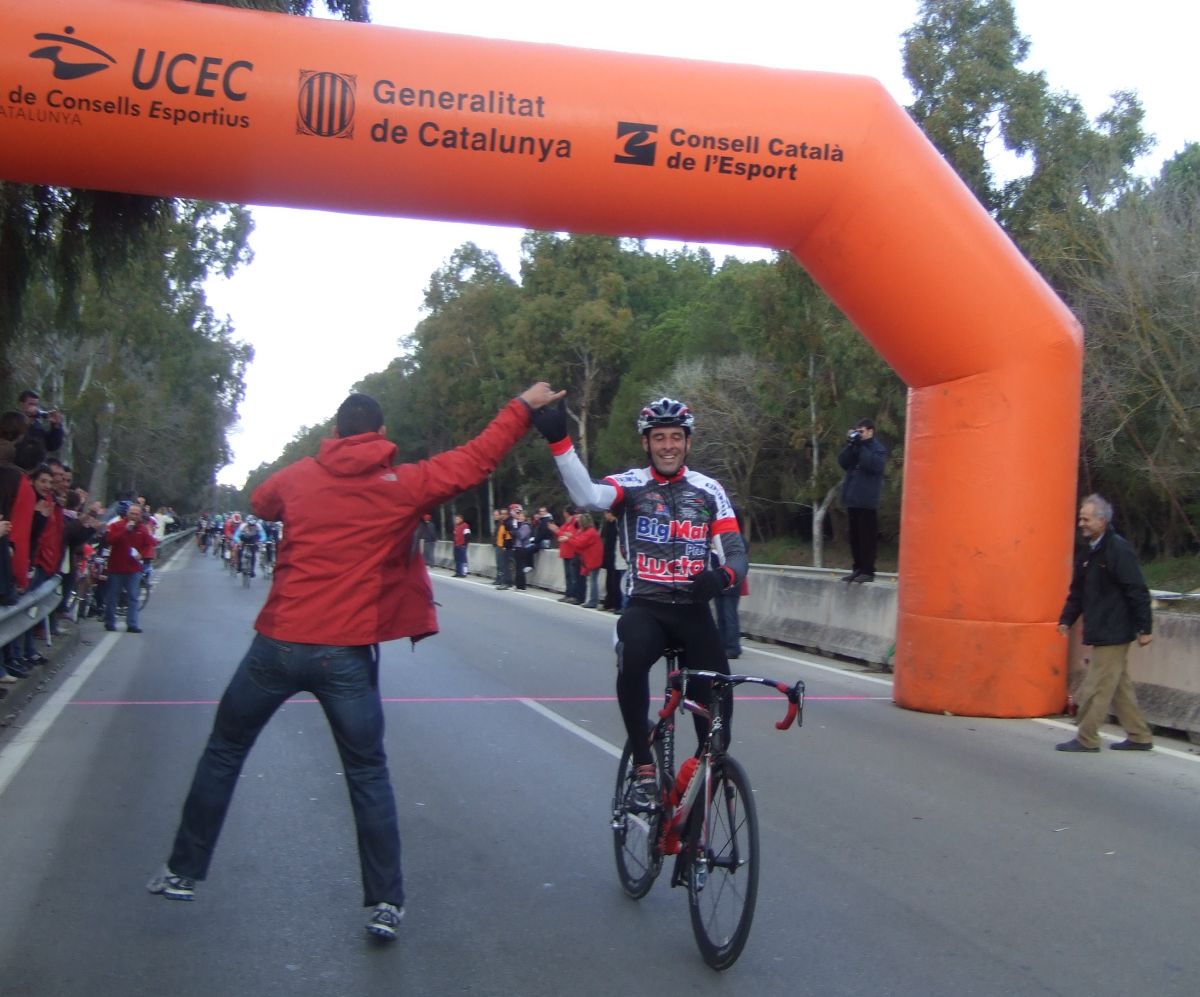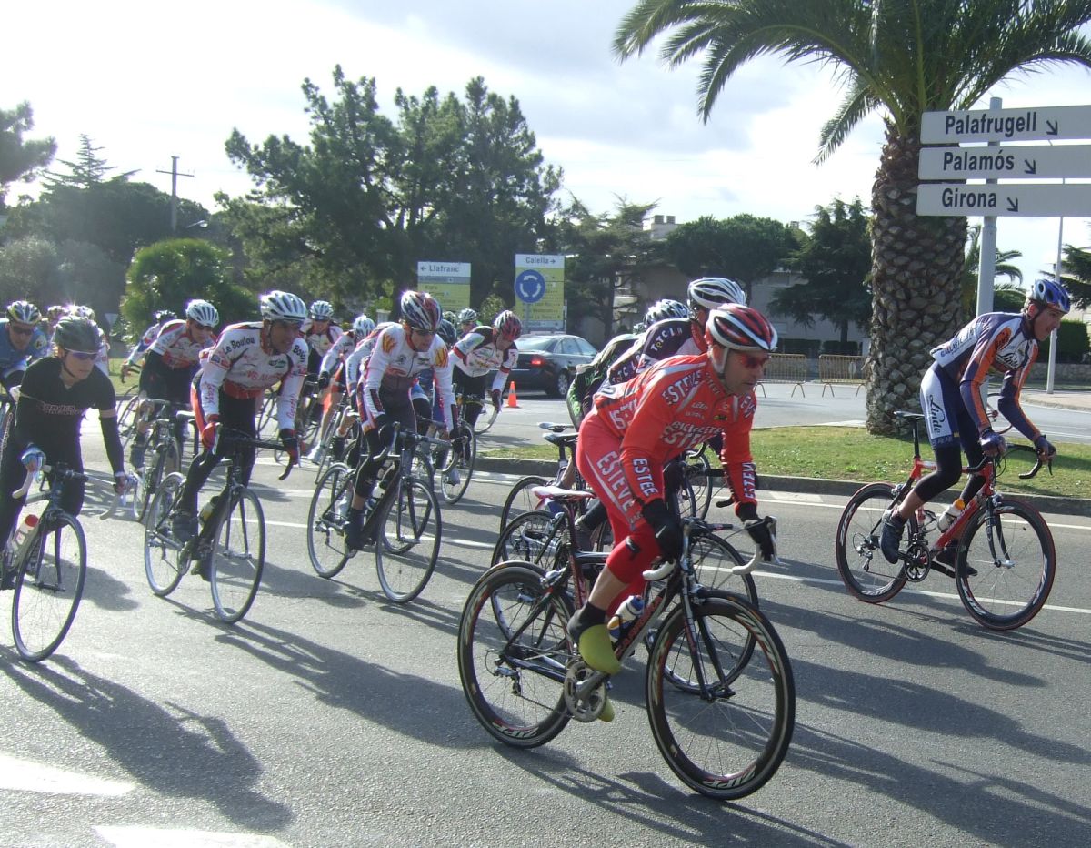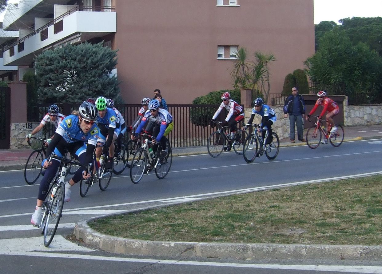 En la tercera vuelta intento de fuga con Quim Badia de mi equipo, Jordi Sargatal y yo mismo, pero la cosa no ha funcionado, solo a servido para meter el pelotón en fila al salir de la curba cerrada. Finalmente ha hecho acto de presència la lluvia y esto ha puesto la carrera un poco peligrosa, cosa que han aprovechado mis compañeros, Jaume Torrentó, Jordi Masferrer y Quim Badia para abrir hueco con otros corredores como el mítico Morales, el socialomano de Cataluña Joan Font y alguno que otro francés de esos. La escada esa ha sido la buena, pero por detrás las ostias no paraban y tanto Andreu, com Jordi y yo hemos ido manteniendo el pelotón unido y sin que nos marchará demasiado ningun “infiltrado”. La escapada ha llegado, victoria del mitíco Morales, que se ha escapado a falta de media vuelta en solitario, segundo Joan Font, 3ro un franchuti, 4º Jaume Torrentó, que de esta manera ha hecho 2n elite, 6º Quim Badia, dando el 3r puesto Elite para el equipo de Banyoles, Jordi Masferrer ha obtenido el octavo puesto.