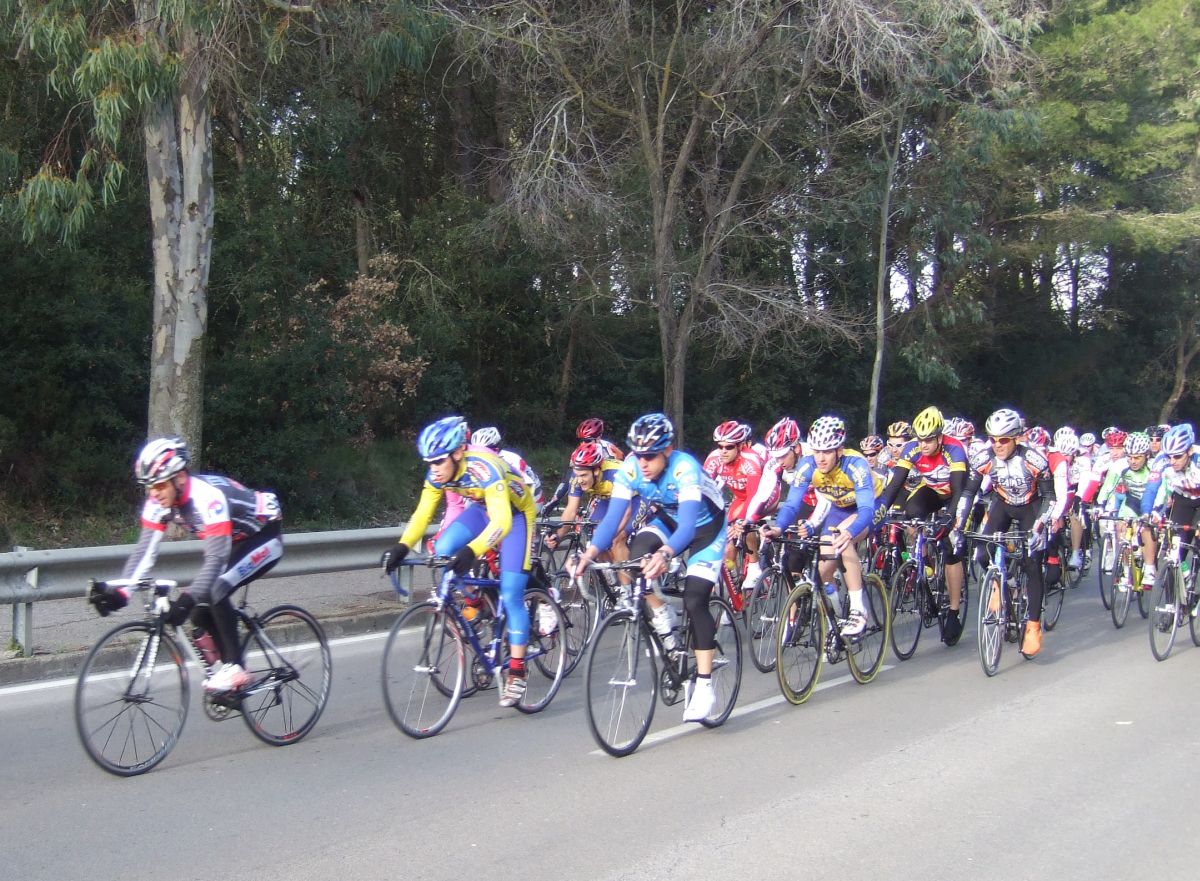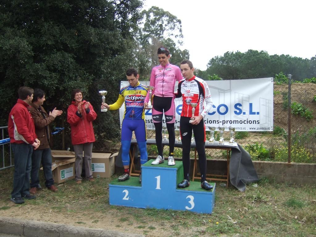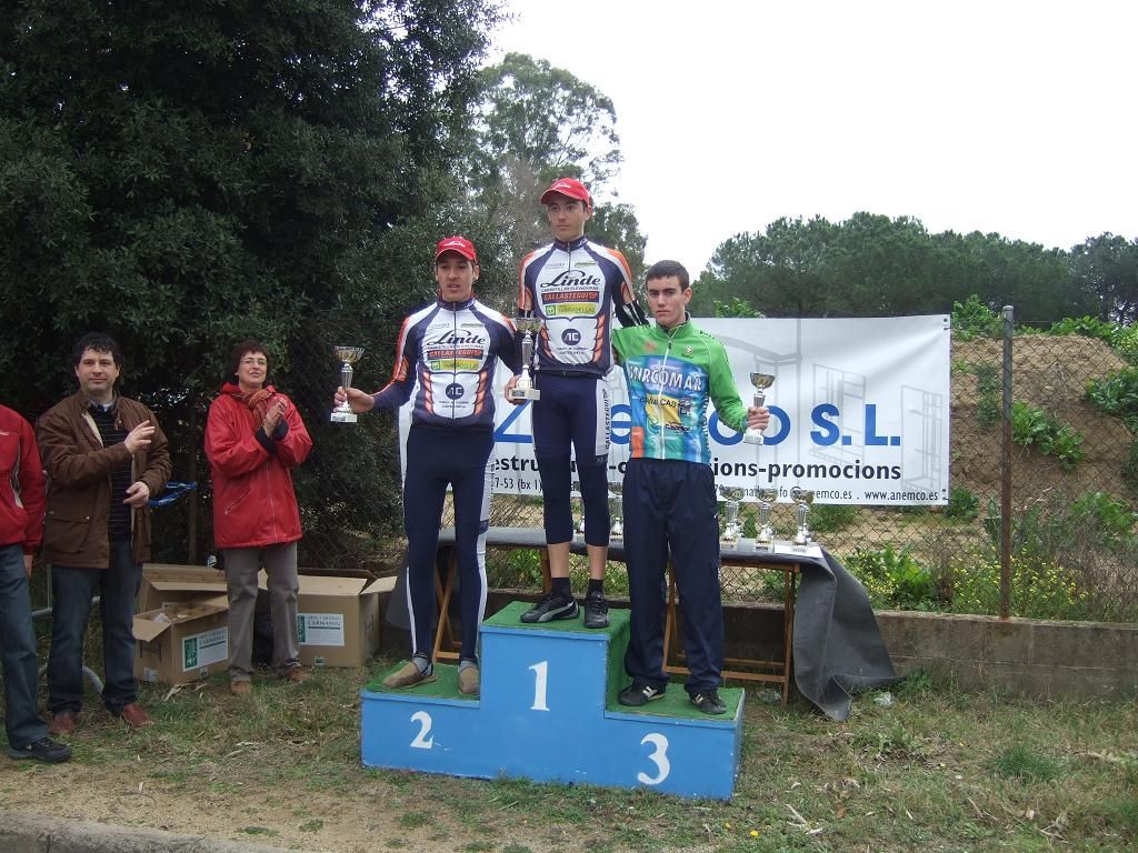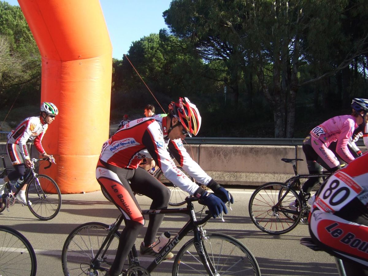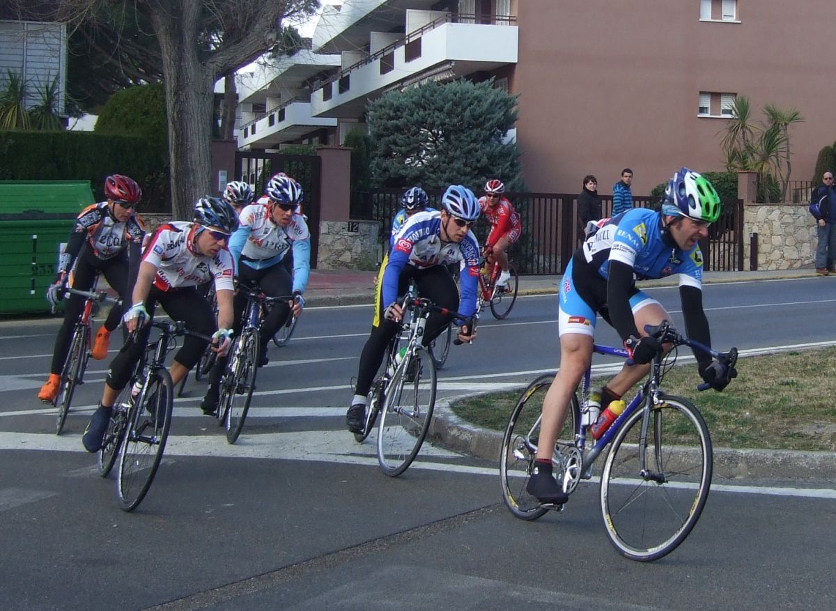 En la tercera vuelta intento de fuga con Quim Badia de mi equipo, Jordi Sargatal y yo mismo, pero la cosa no ha funcionado, solo a servido para meter el pelotón en fila al salir de la curba cerrada. Finalmente ha hecho acto de presència la lluvia y esto ha puesto la carrera un poco peligrosa, cosa que han aprovechado mis compañeros, Jaume Torrentó, Jordi Masferrer y Quim Badia para abrir hueco con otros corredores como el mítico Morales, el socialomano de Cataluña Joan Font y alguno que otro francés de esos. La escada esa ha sido la buena, pero por detrás las ostias no paraban y tanto Andreu, com Jordi y yo hemos ido manteniendo el pelotón unido y sin que nos marchará demasiado ningun “infiltrado”. La escapada ha llegado, victoria del mitíco Morales, que se ha escapado a falta de media vuelta en solitario, segundo Joan Font, 3ro un franchuti, 4º Jaume Torrentó, que de esta manera ha hecho 2n elite, 6º Quim Badia, dando el 3r puesto Elite para el equipo de Banyoles, Jordi Masferrer ha obtenido el octavo puesto.