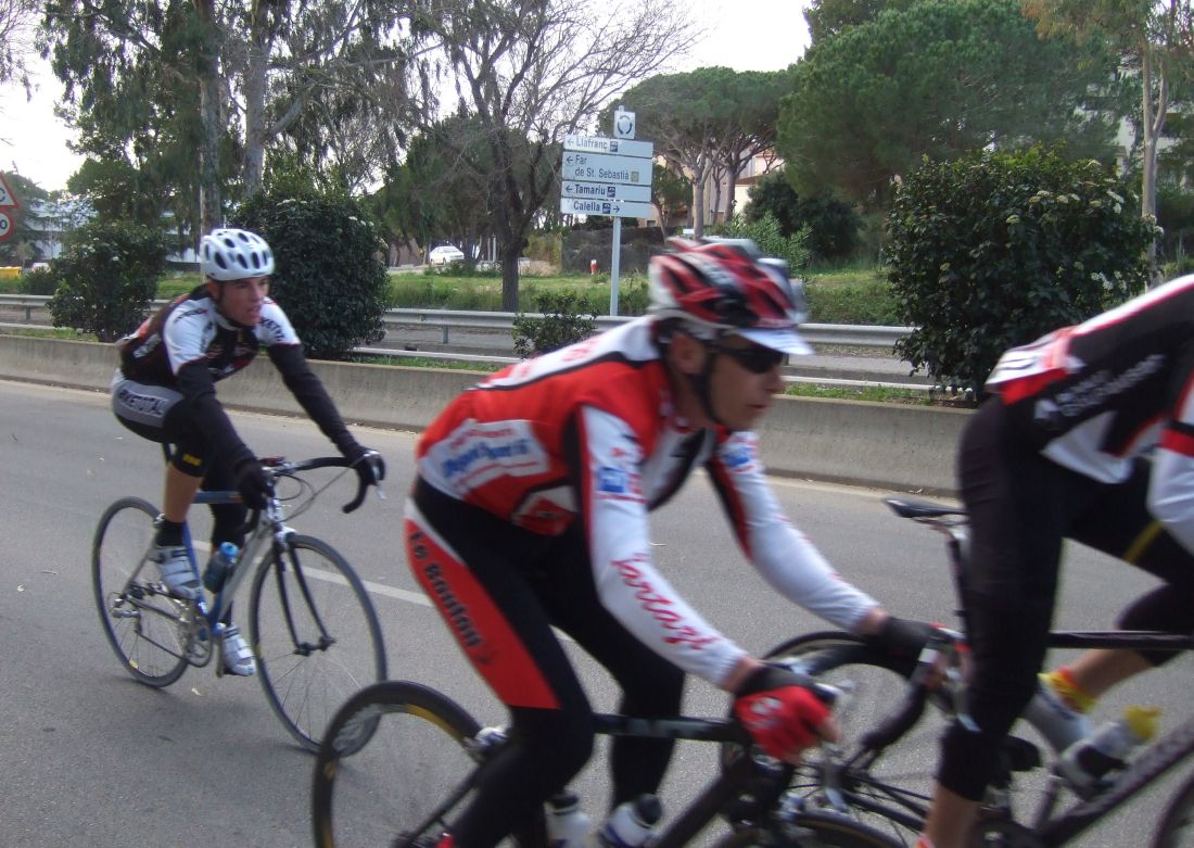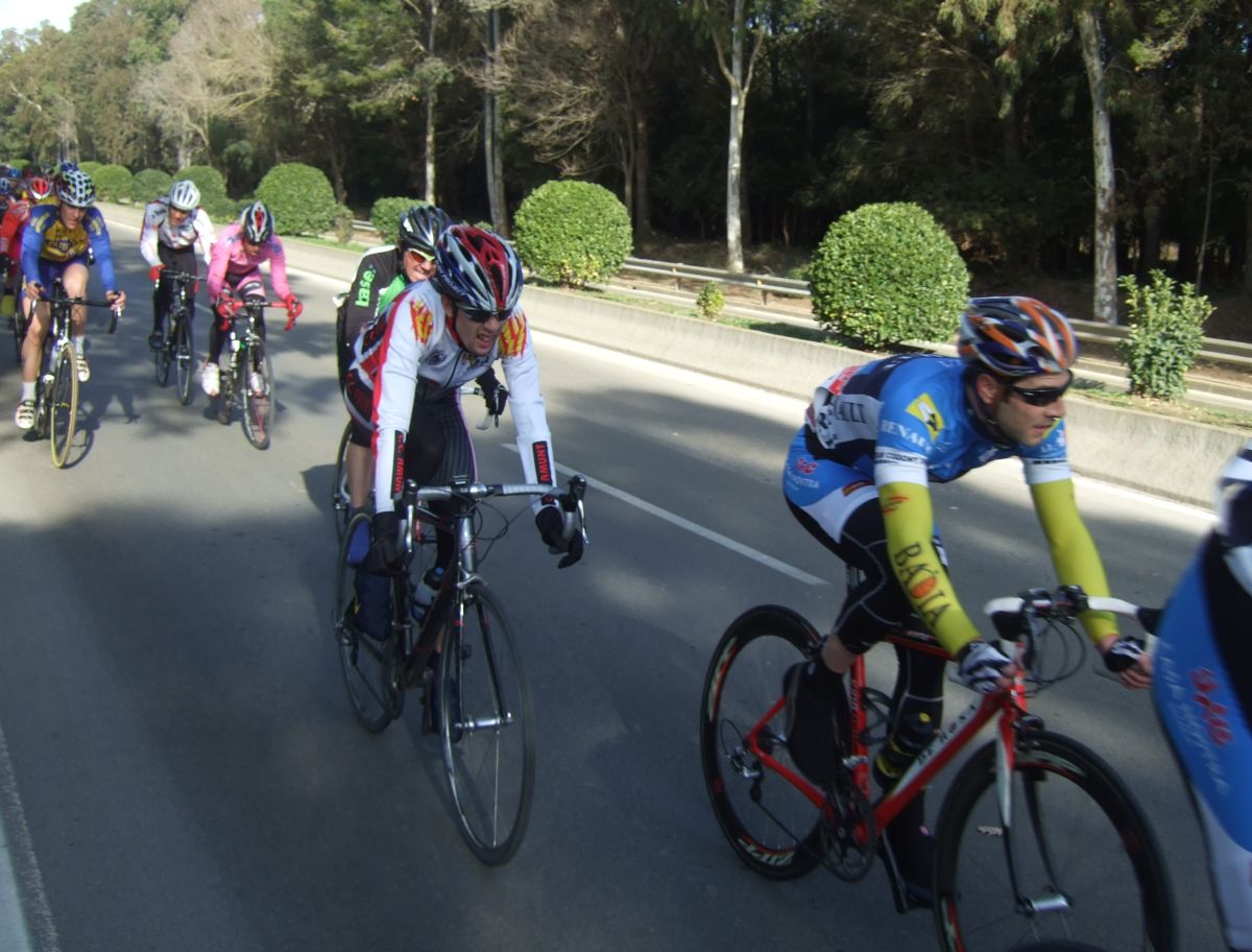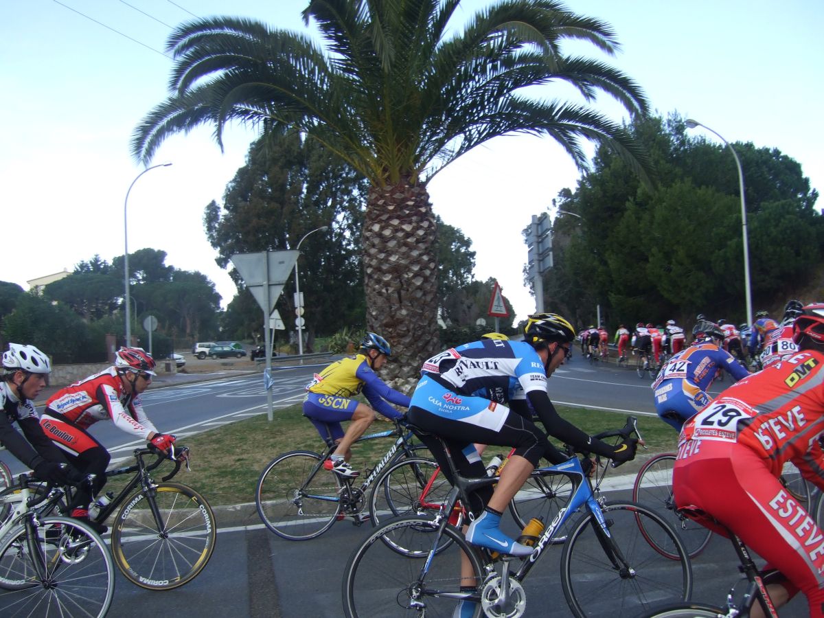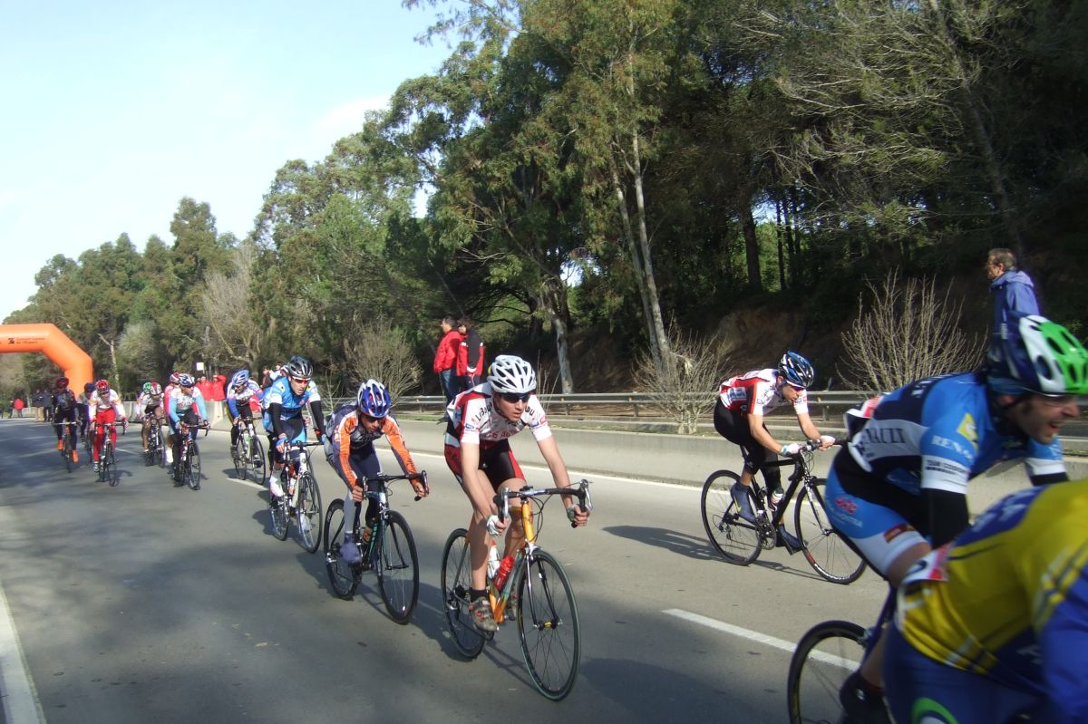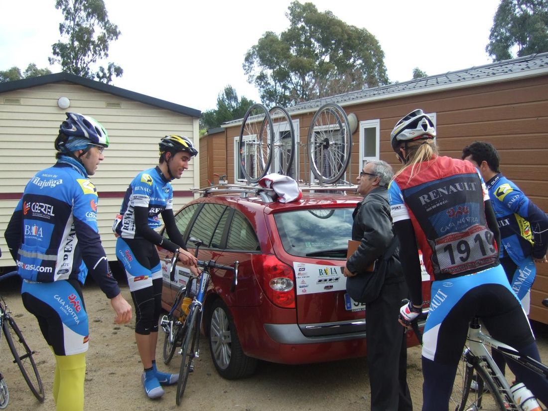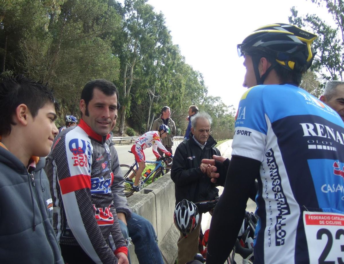 “Socialada-Buleria de alto nivel para el debut del nuevo Renault Olot – Casa Nostra en Palafurgell. Carrera cortita, de 63 km, dando 12 vueltas a un tramo de 5,5 km de autovia, con dos curvas muy cerradas y con latigo en cada una de ellas, o sea, 24 latigos. En esa carrera hemos debutado el nuevo equipo catalán Elit-sub23 con ganas de dar la cara y con gas. Y Asi ha sido, ya solo salir y con las ordenes del nuevo director, Jimmy, hemos puesto corredores en todos los cortes: Andreu Vidal, Marc Hospital, yo mismo, Jordi Sargatal… pero no se marchaba mucho.