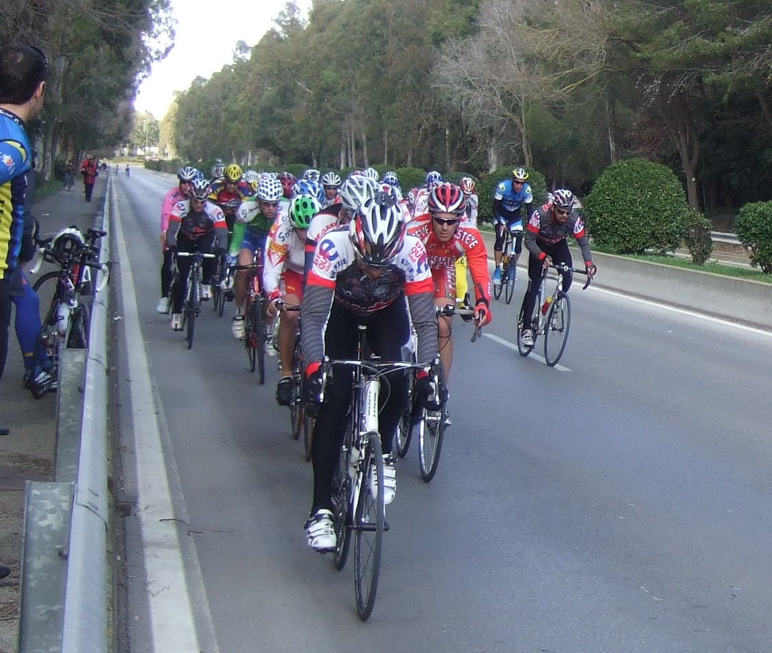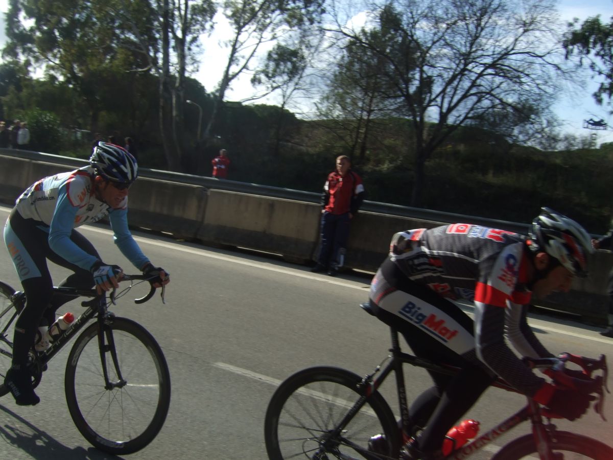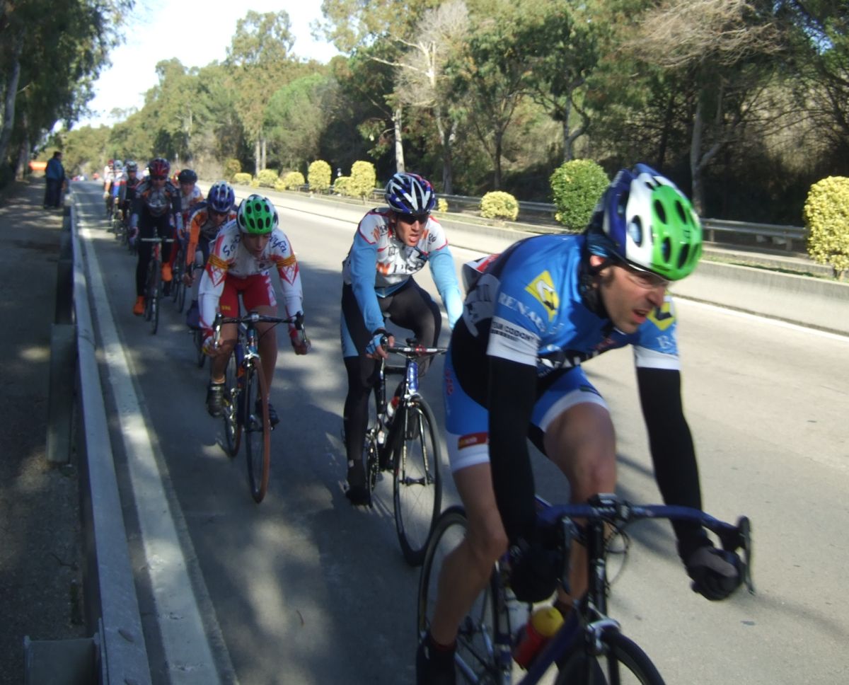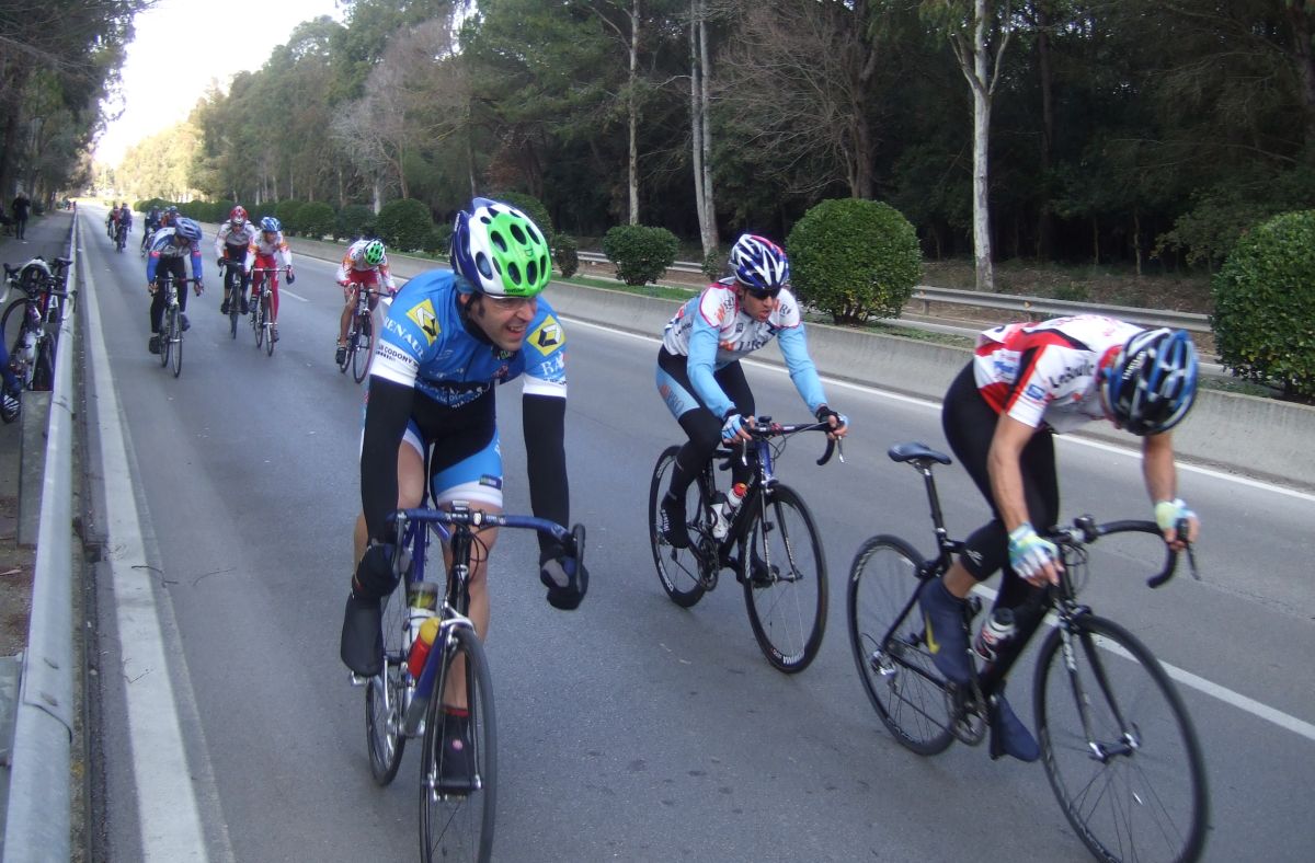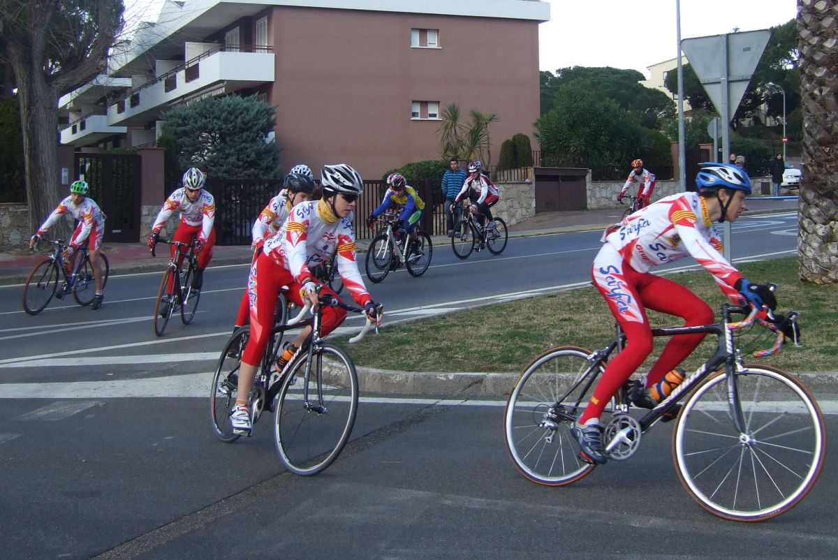 “Socialada-Buleria de alto nivel para el debut del nuevo Renault Olot – Casa Nostra en Palafurgell. Carrera cortita, de 63 km, dando 12 vueltas a un tramo de 5,5 km de autovia, con dos curvas muy cerradas y con latigo en cada una de ellas, o sea, 24 latigos. En esa carrera hemos debutado el nuevo equipo catalán Elit-sub23 con ganas de dar la cara y con gas. Y Asi ha sido, ya solo salir y con las ordenes del nuevo director, Jimmy, hemos puesto corredores en todos los cortes: Andreu Vidal, Marc Hospital, yo mismo, Jordi Sargatal… pero no se marchaba mucho.