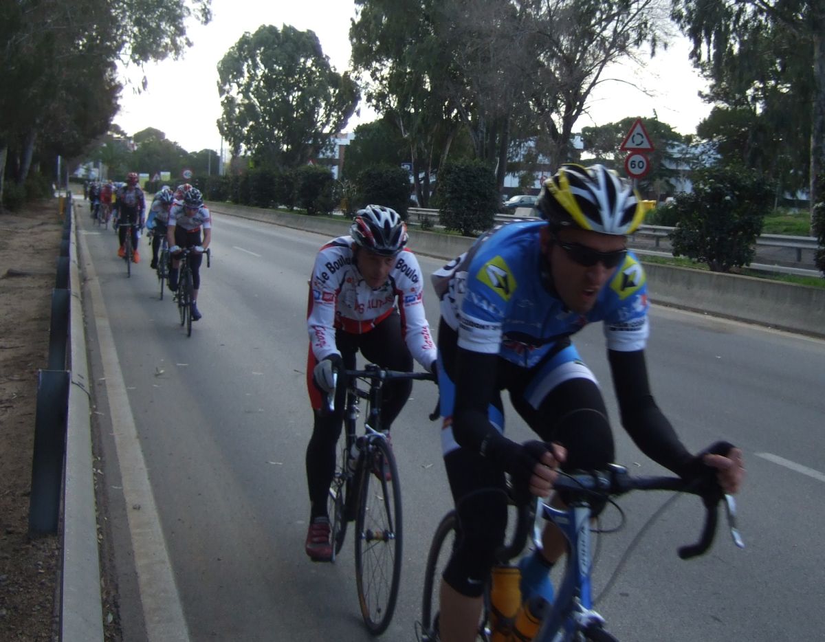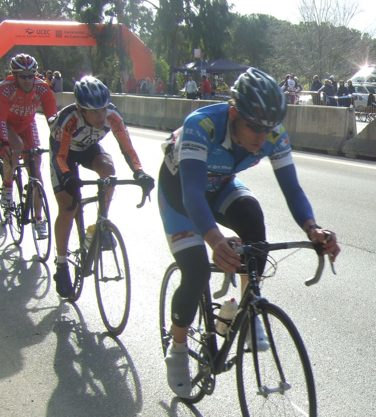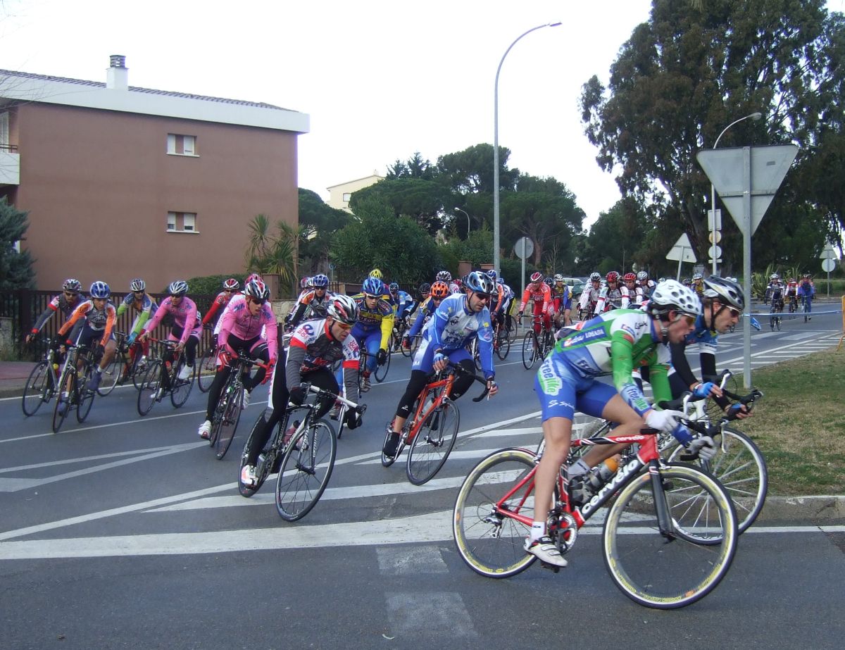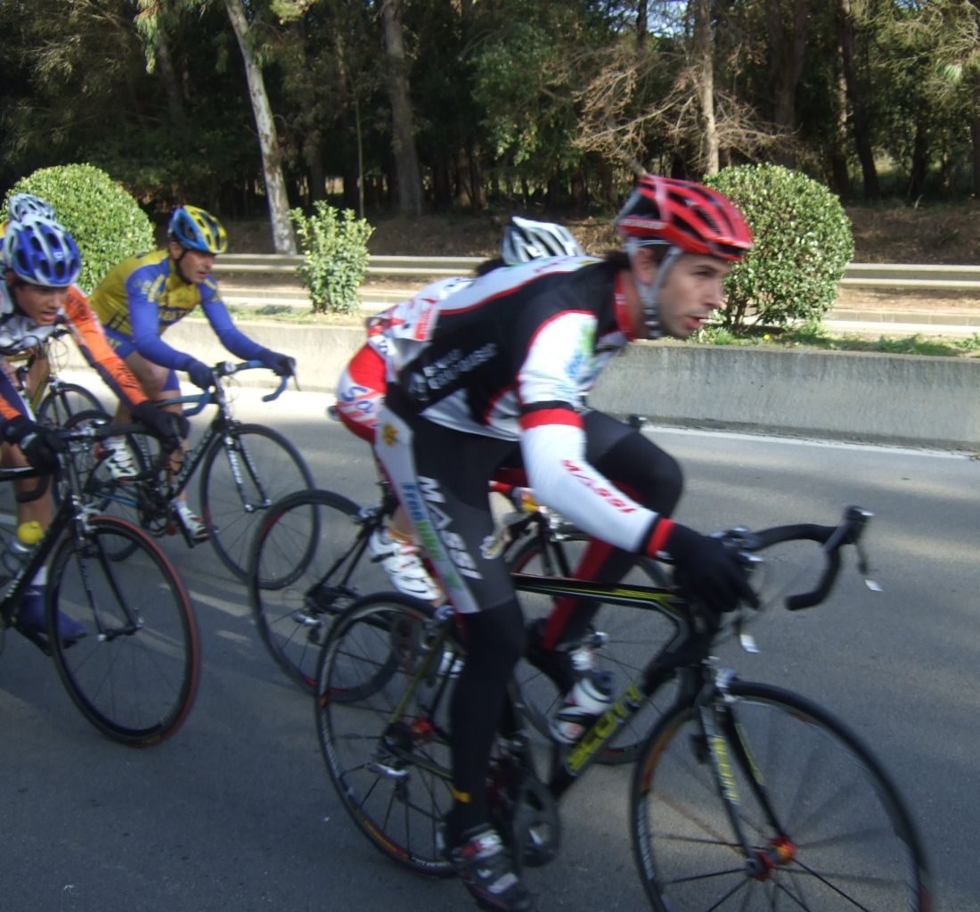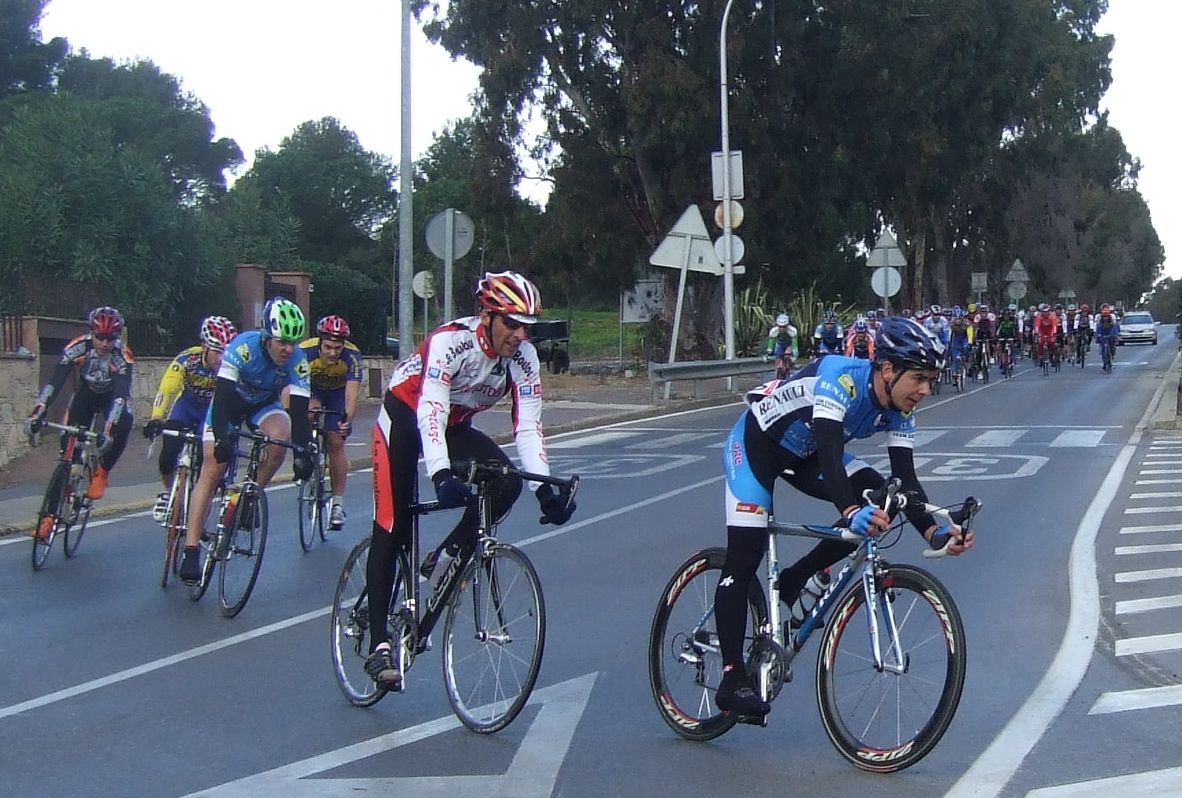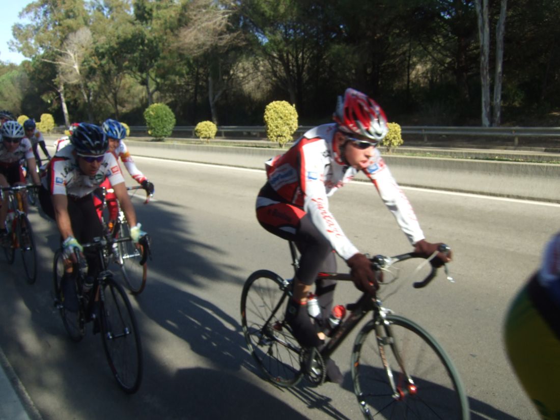 “Socialada-Buleria de alto nivel para el debut del nuevo Renault Olot – Casa Nostra en Palafurgell. Carrera cortita, de 63 km, dando 12 vueltas a un tramo de 5,5 km de autovia, con dos curvas muy cerradas y con latigo en cada una de ellas, o sea, 24 latigos. En esa carrera hemos debutado el nuevo equipo catalán Elit-sub23 con ganas de dar la cara y con gas. Y Asi ha sido, ya solo salir y con las ordenes del nuevo director, Jimmy, hemos puesto corredores en todos los cortes: Andreu Vidal, Marc Hospital, yo mismo, Jordi Sargatal… pero no se marchaba mucho.