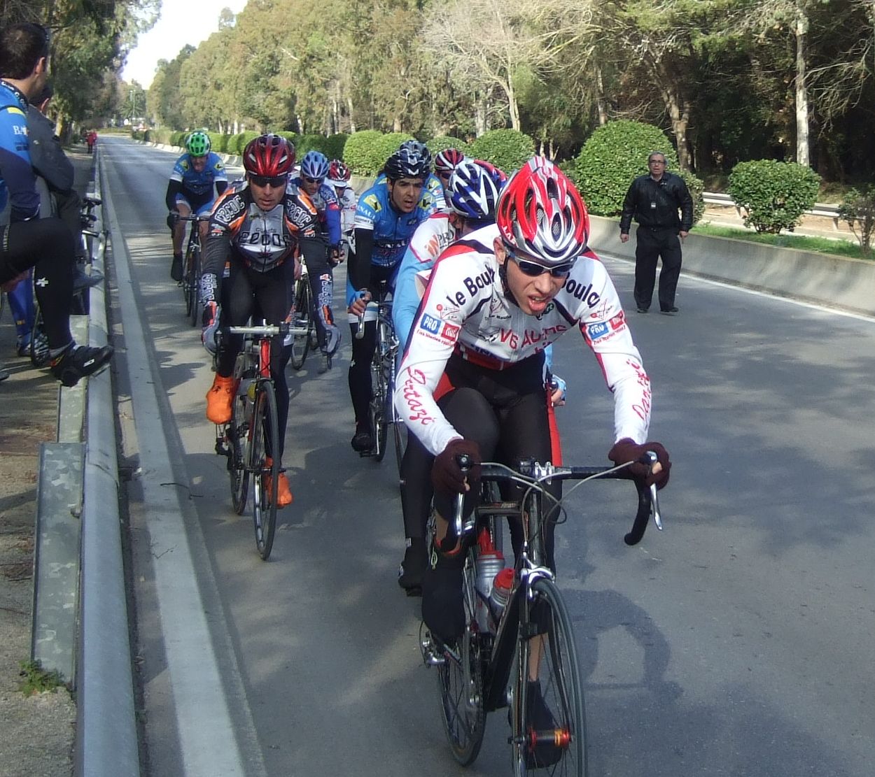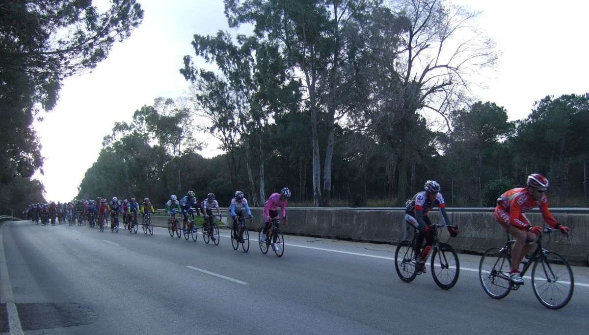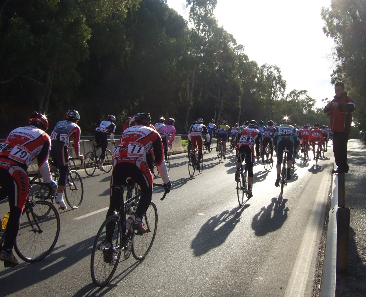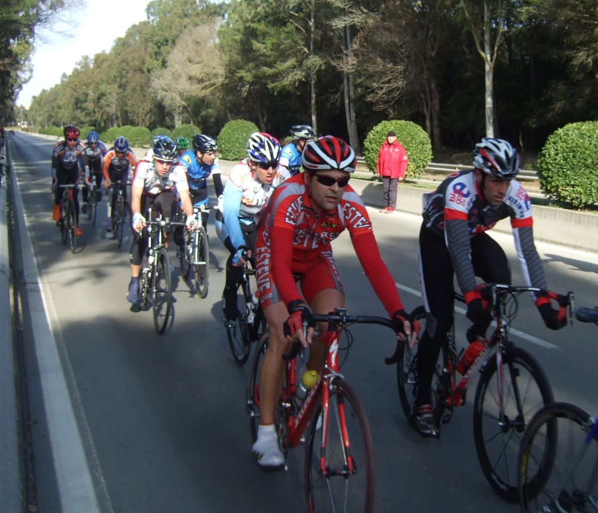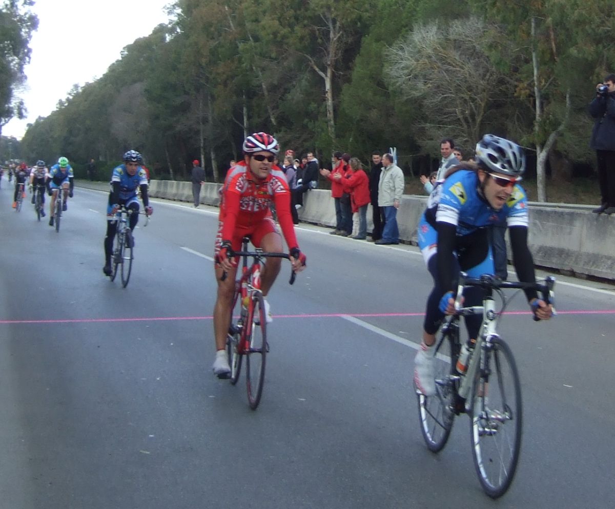 “Socialada-Buleria de alto nivel para el debut del nuevo Renault Olot – Casa Nostra en Palafurgell. Carrera cortita, de 63 km, dando 12 vueltas a un tramo de 5,5 km de autovia, con dos curvas muy cerradas y con latigo en cada una de ellas, o sea, 24 latigos. En esa carrera hemos debutado el nuevo equipo catalán Elit-sub23 con ganas de dar la cara y con gas. Y Asi ha sido, ya solo salir y con las ordenes del nuevo director, Jimmy, hemos puesto corredores en todos los cortes: Andreu Vidal, Marc Hospital, yo mismo, Jordi Sargatal… pero no se marchaba mucho.