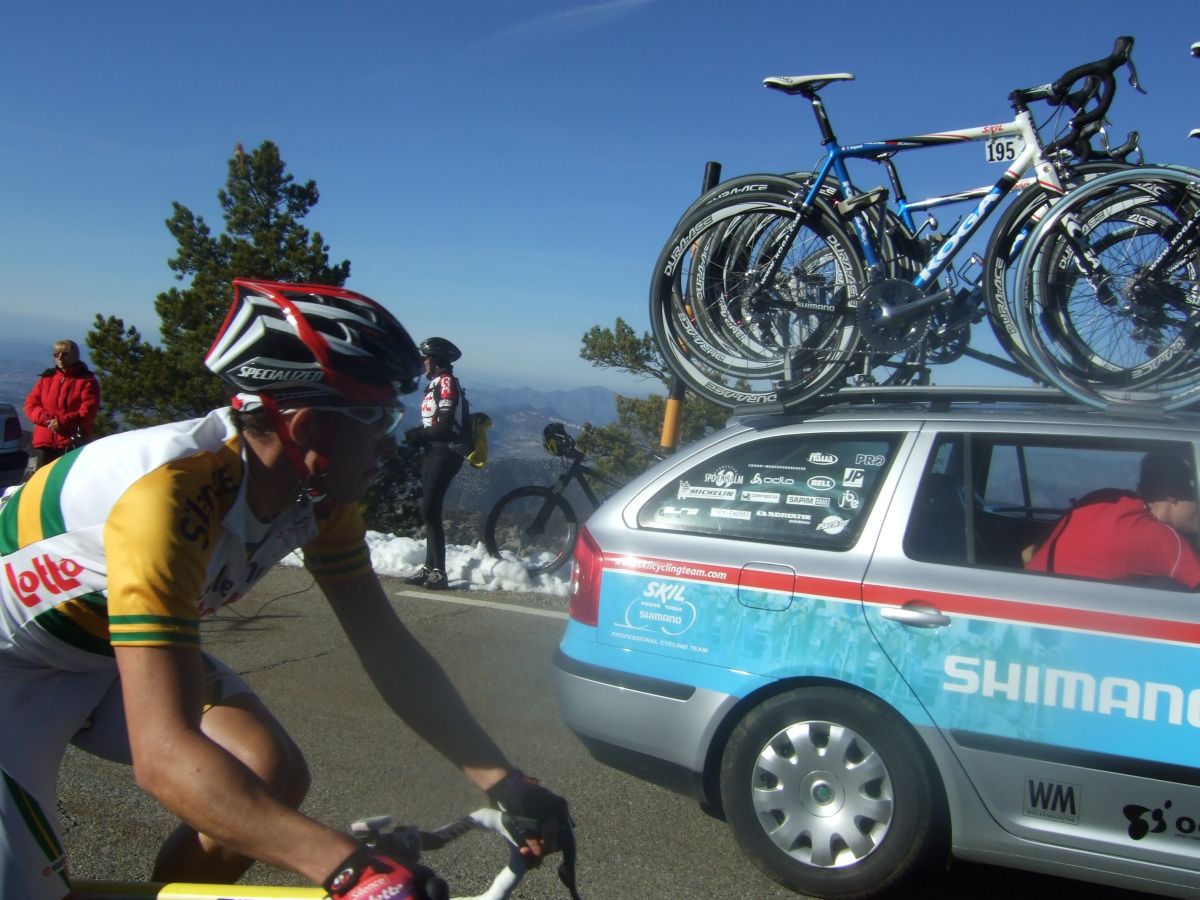 Etapa del Mont Ventoux de la Paris Niza, final por todo lo alto, aunque no era en la torreta de arriba, la carrera que venía encabezada por este Lotto.