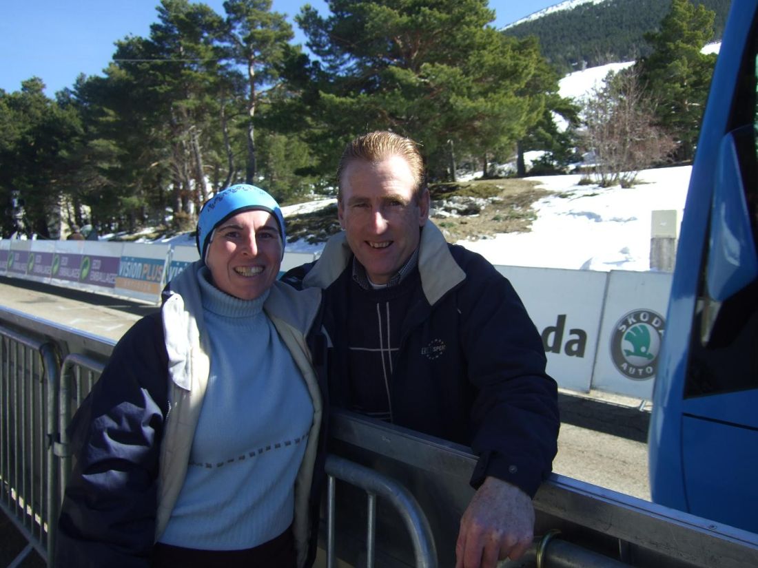 Julie con el gorroweb posando con su amigo Sean Kelly.