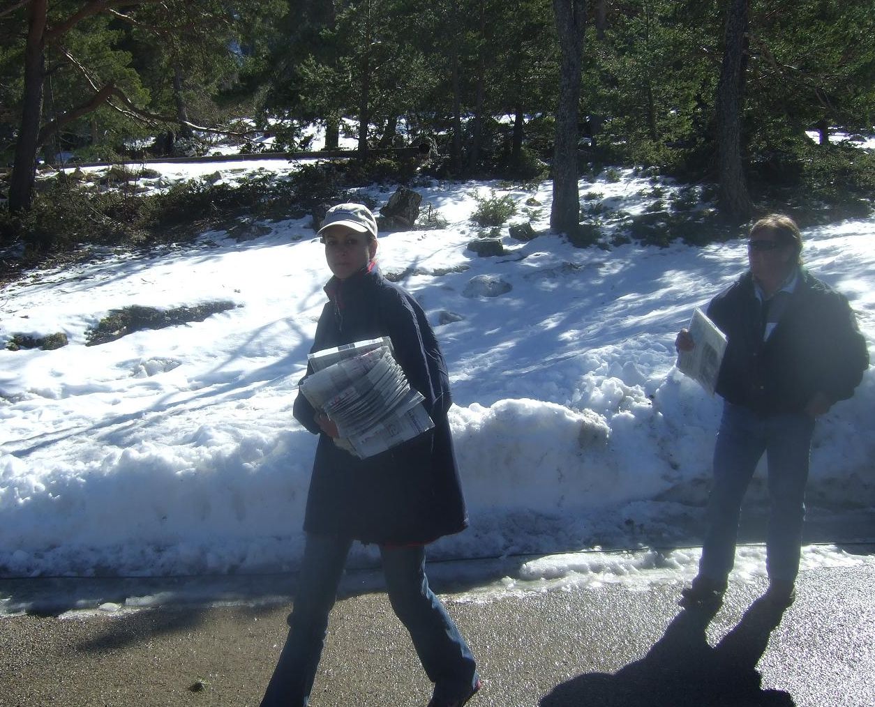Hacía buen día para sentarse a tomar el sol en las sillitas con la nieve.