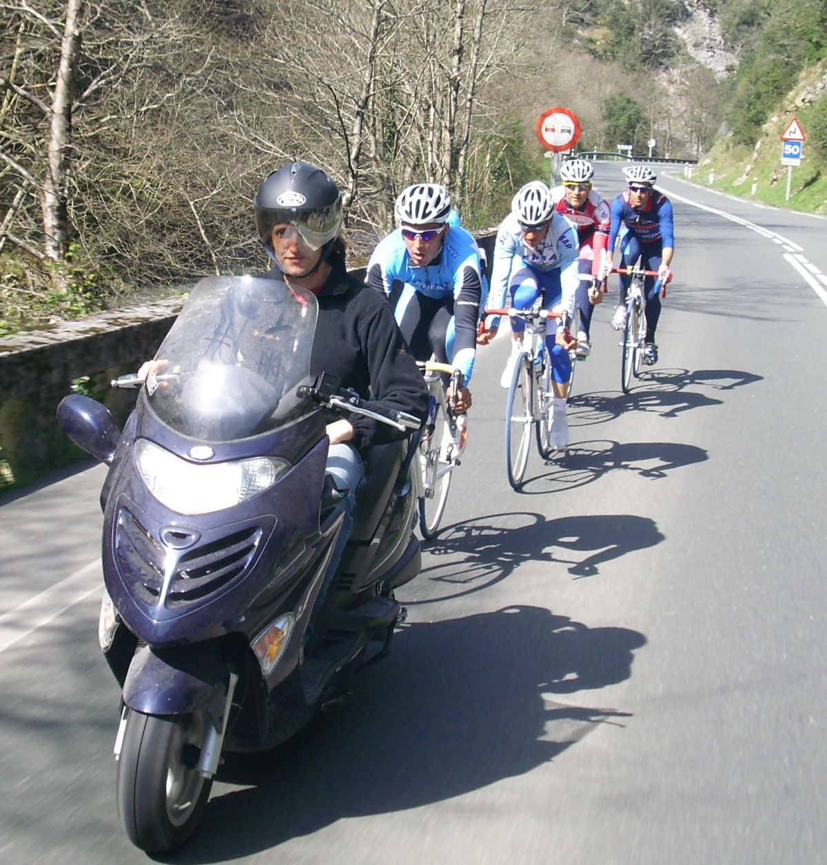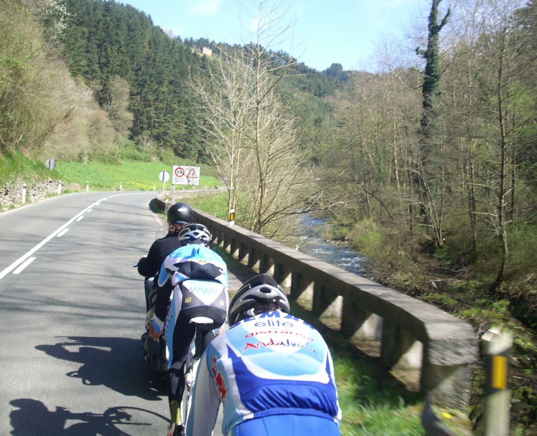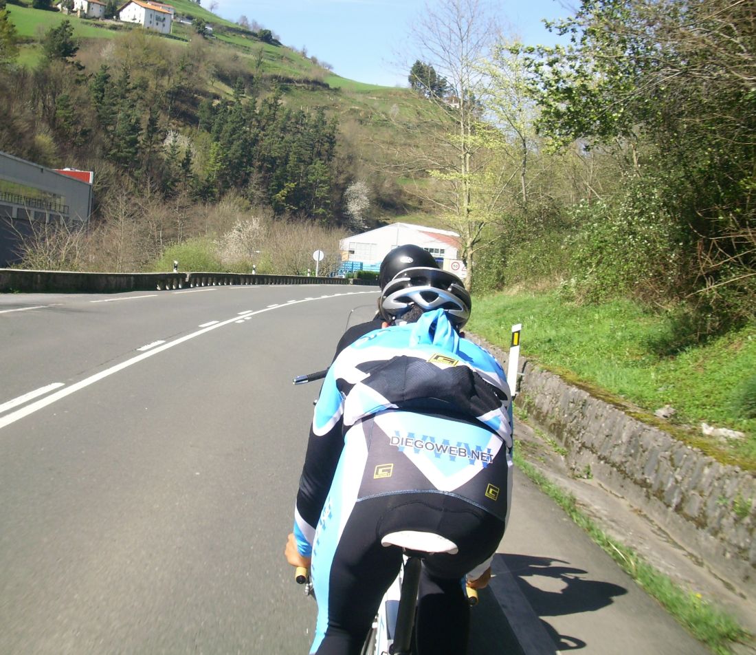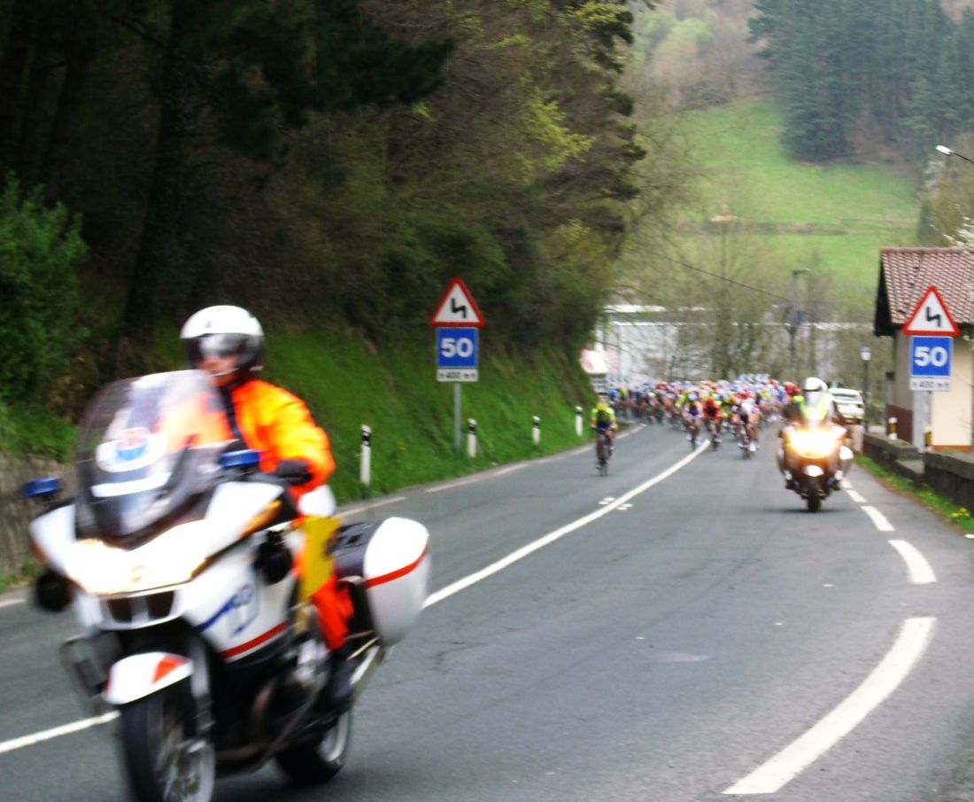 ![]() En estos primeros kms hay mucho nerviosismo, un Suminan arrancando, peligro de caidas en este tramo descendente de Lizarta a Tolosa. |