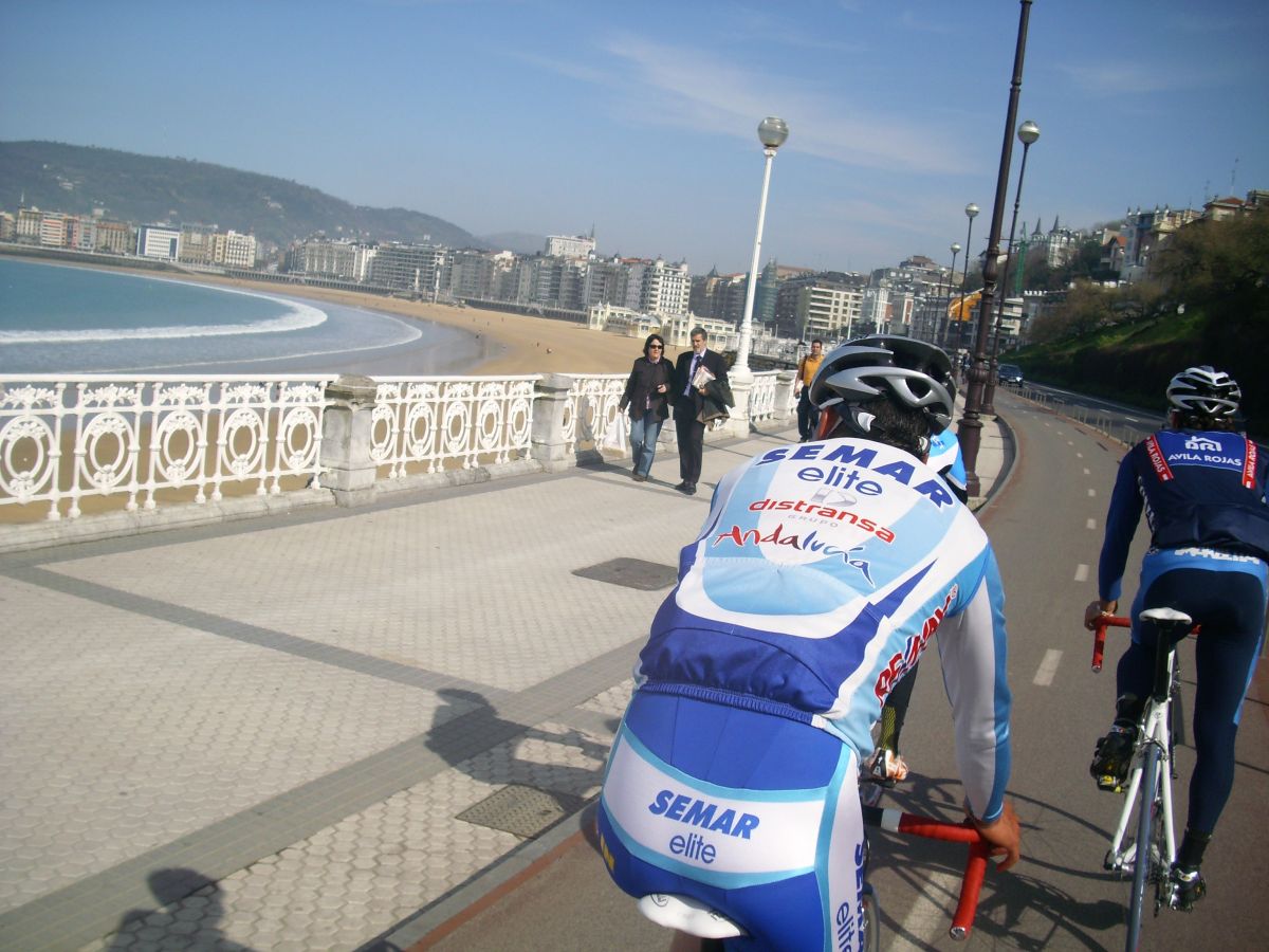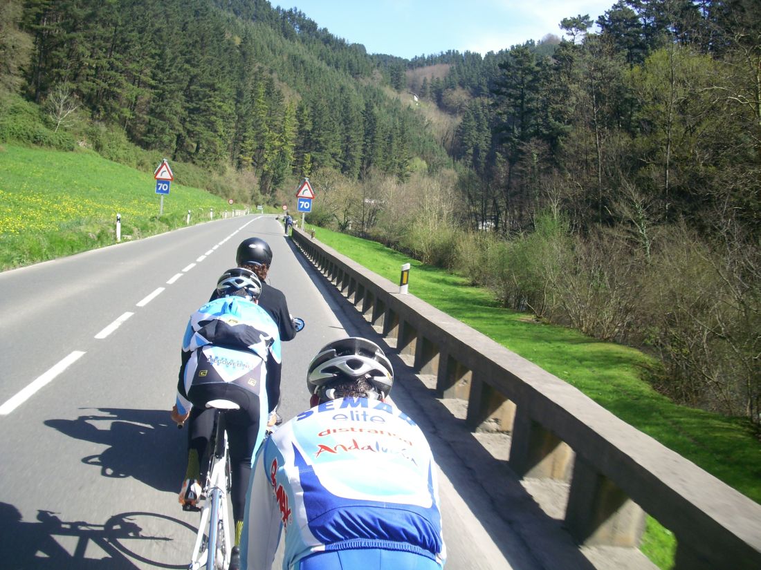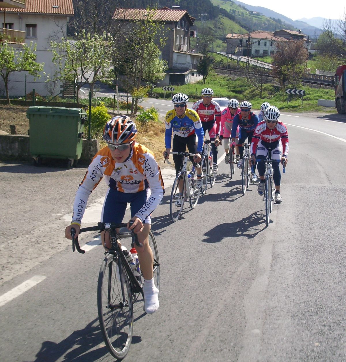 ![]() En estos primeros kms hay mucho nerviosismo, un Suminan arrancando, peligro de caidas en este tramo descendente de Lizarta a Tolosa. |