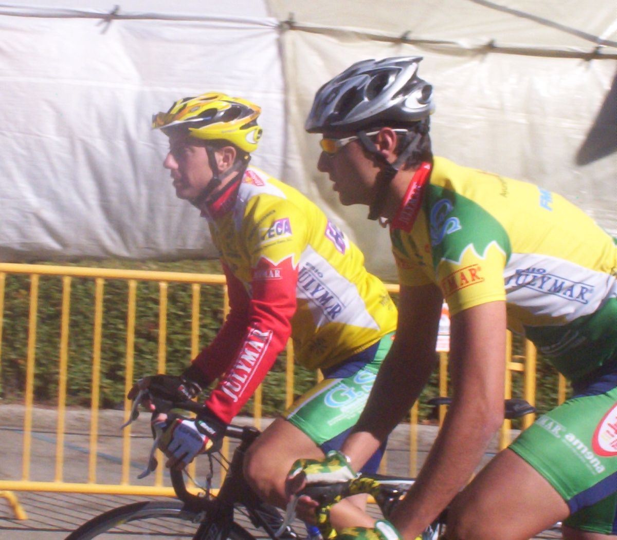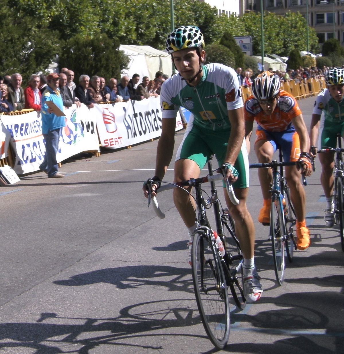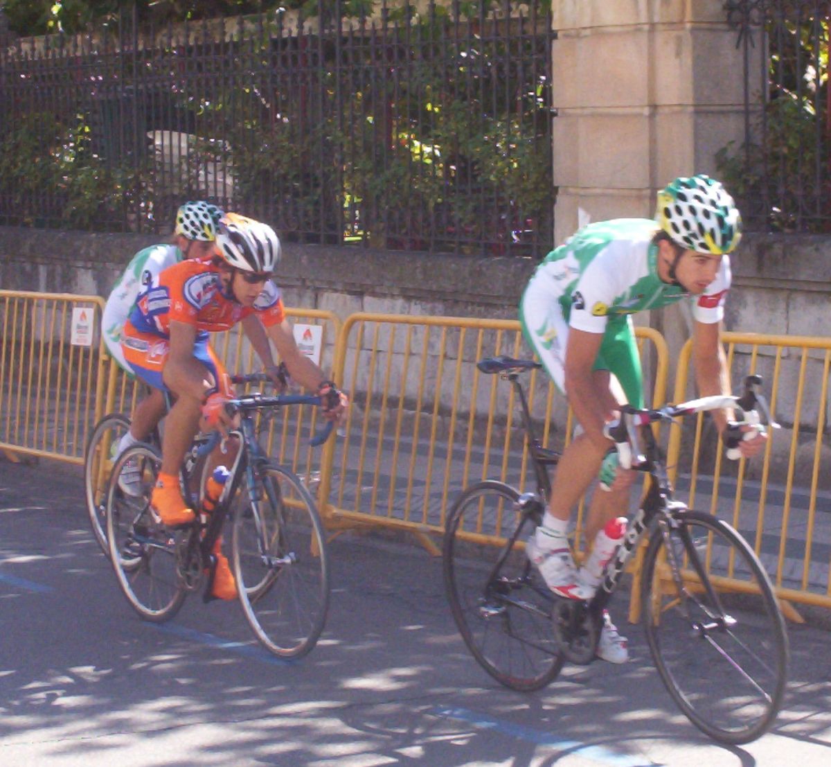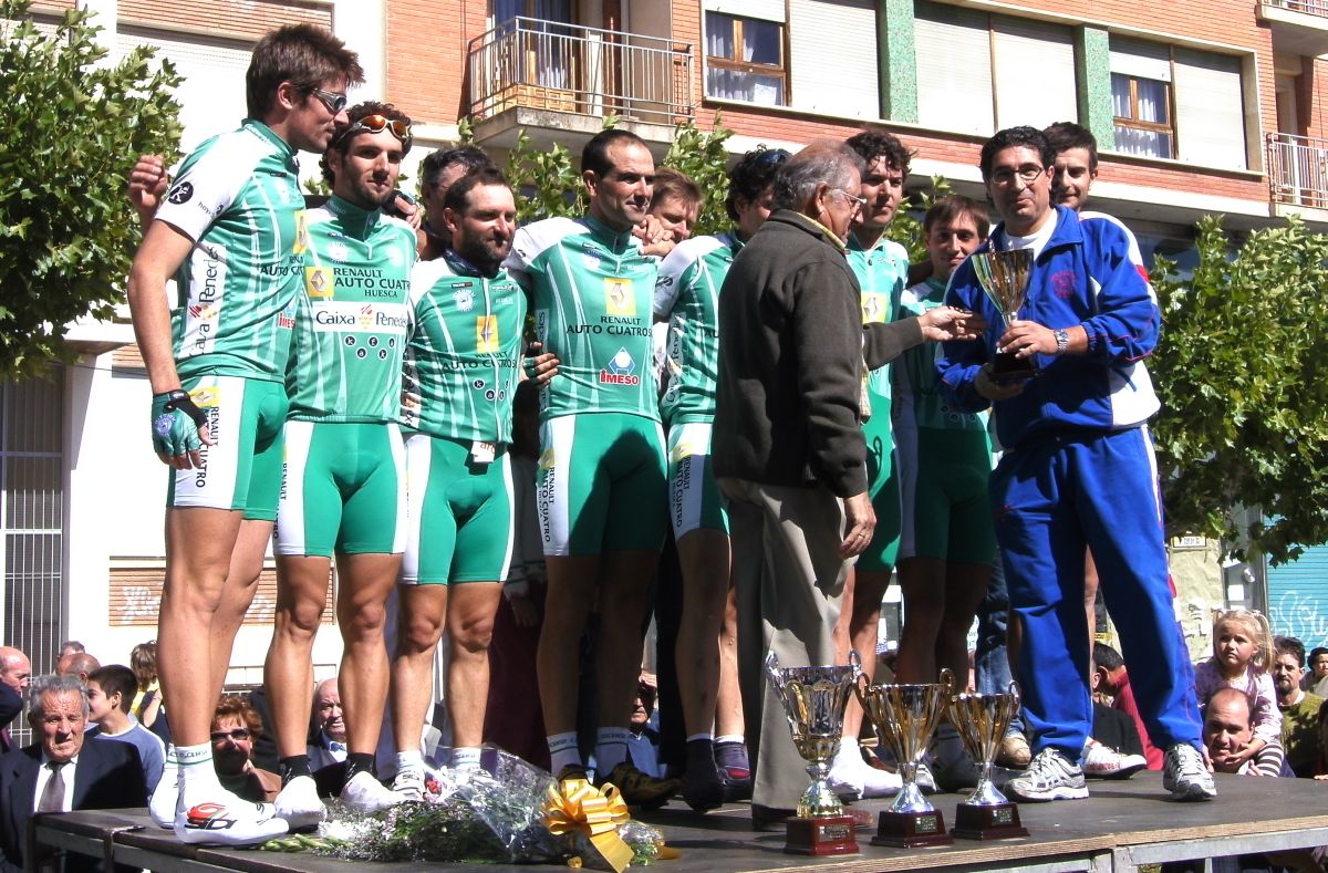 Entretanto la fuga, en la que estaban dos renault huesca (javier paules y adrian barceló) y un cai (vidorreta), seguia abriendo cada vez mas hueco, y eso que solo tiraba un renault, hasta que doblaron al parsimonioso y conformista peloton, mientras que vidorreta se llevaba los pasos puntuables. los huesca intentaron reventar a ataques a vidorreta, pero este aguantaba el tipo muy bien , a pesar de ser un juvenil.