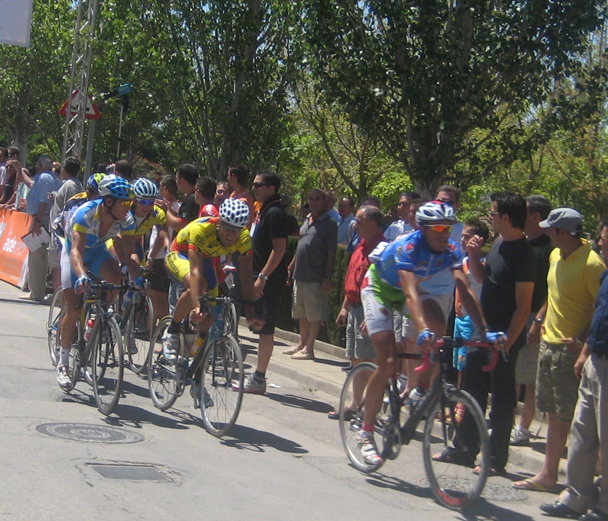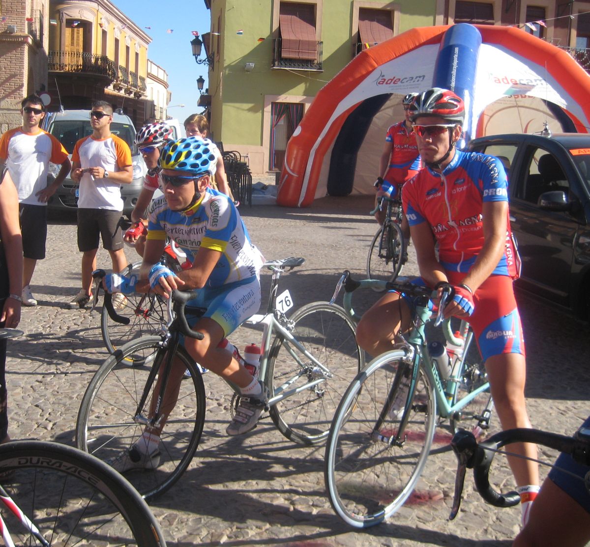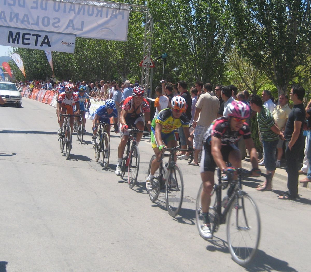 Ya cuando pude entrar un poco en calor pasé para alante y vi que se había hecho un corte grande, salí a por el Perillas y me metió dentro, 30 tios por delante o mas que ibamos, por experiencia esos cortes nunca prosperan, asi que me quedé a cola, dejando hacer, hasta que se paró y hubo que salir a cortes, para que no pasara lo que en Vuelta Avila en la primera etapa, que fue una situación similar cuando se hizo el corte bueno. Iba yo todo emocionado saliendo en los cortes cuando miré para atrás y no vi que ibamos los 30, sino todo el pelotón, todo el hueco que había desapareció de golpe, cosas de los campeonatos de España.