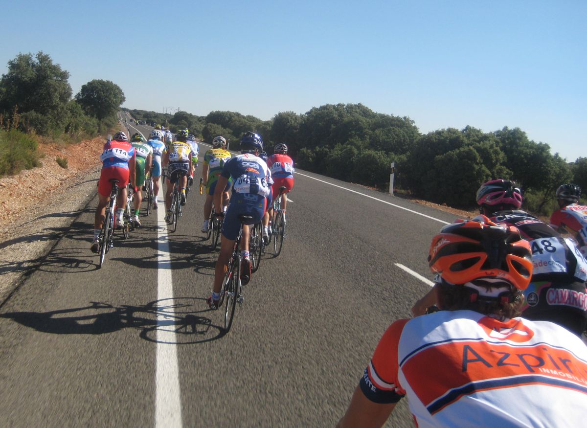 El pelotón ya a ostias, todo ataques, intentandose ir la gente en grupitos para tirar, se fue otro grupo con el Manu de 10 tios, y atrás seguíamos arrancando, ataques y ataques pero ya no se marchaba gente, simplemente se iban quedando por atrás, la gente que ya estaba harta de tanto ataque, al final nos quedamos en el pelotón unos 10 tios solo, de 130 que habíamos salido, y ya paramos de atacar, nos pusimos a tirar, para ver si llegabamos bien al circuito y enganchabamos a gente.