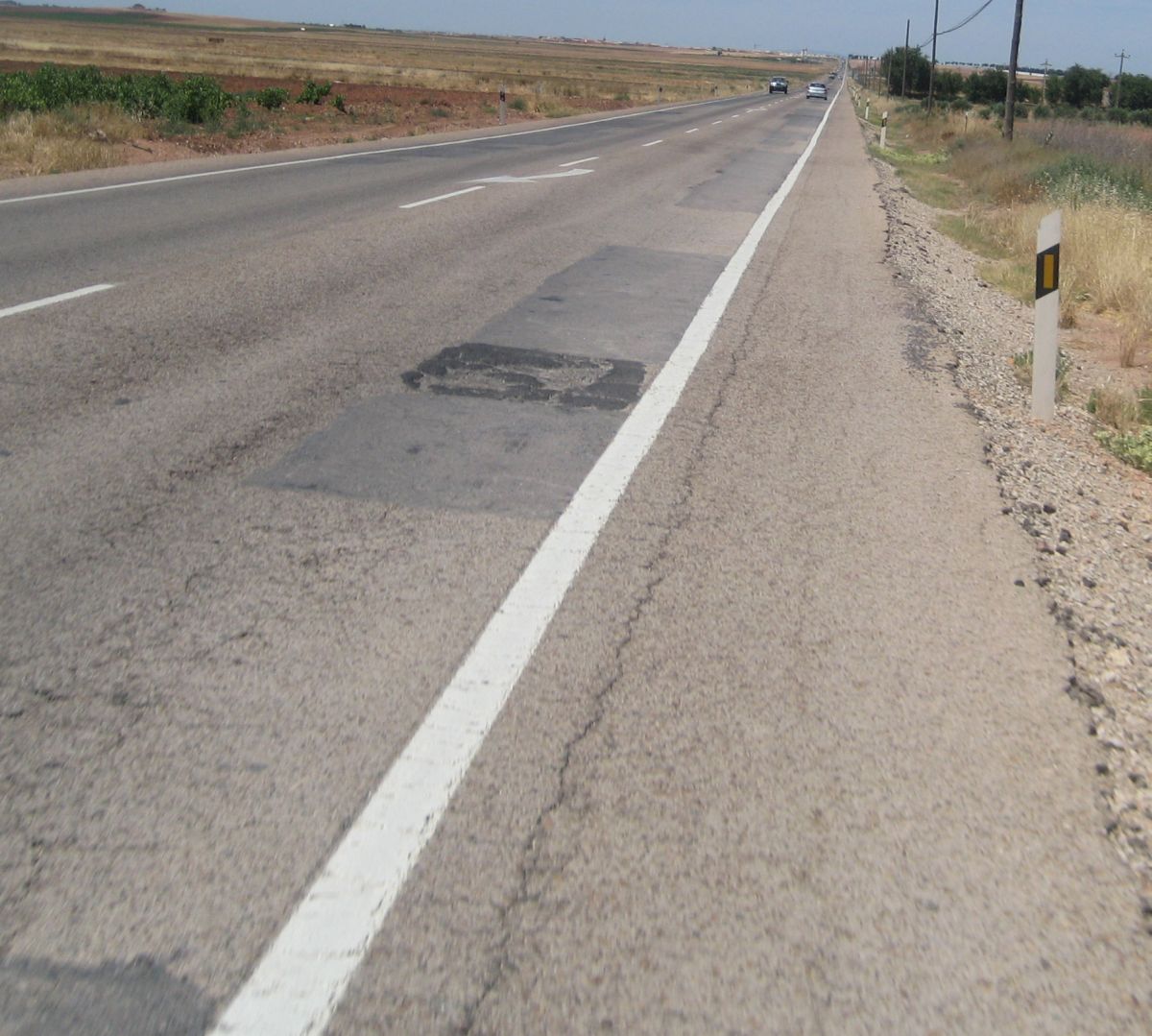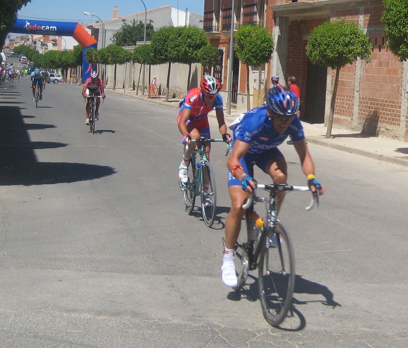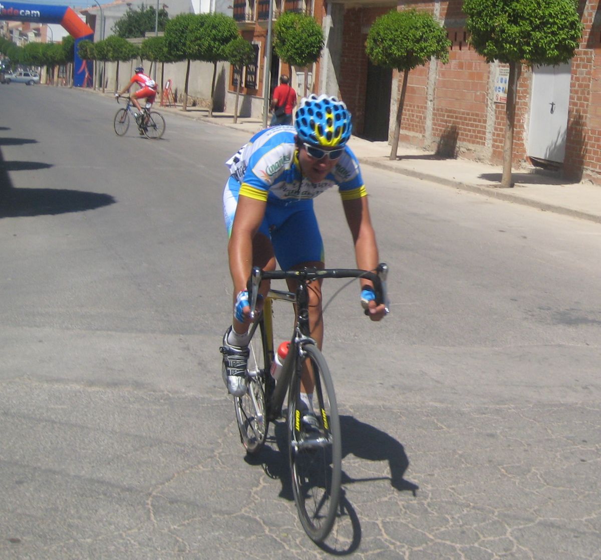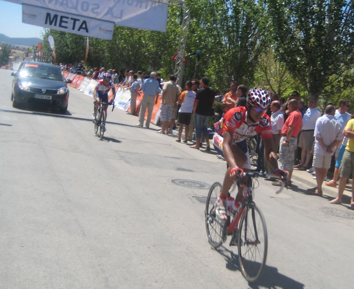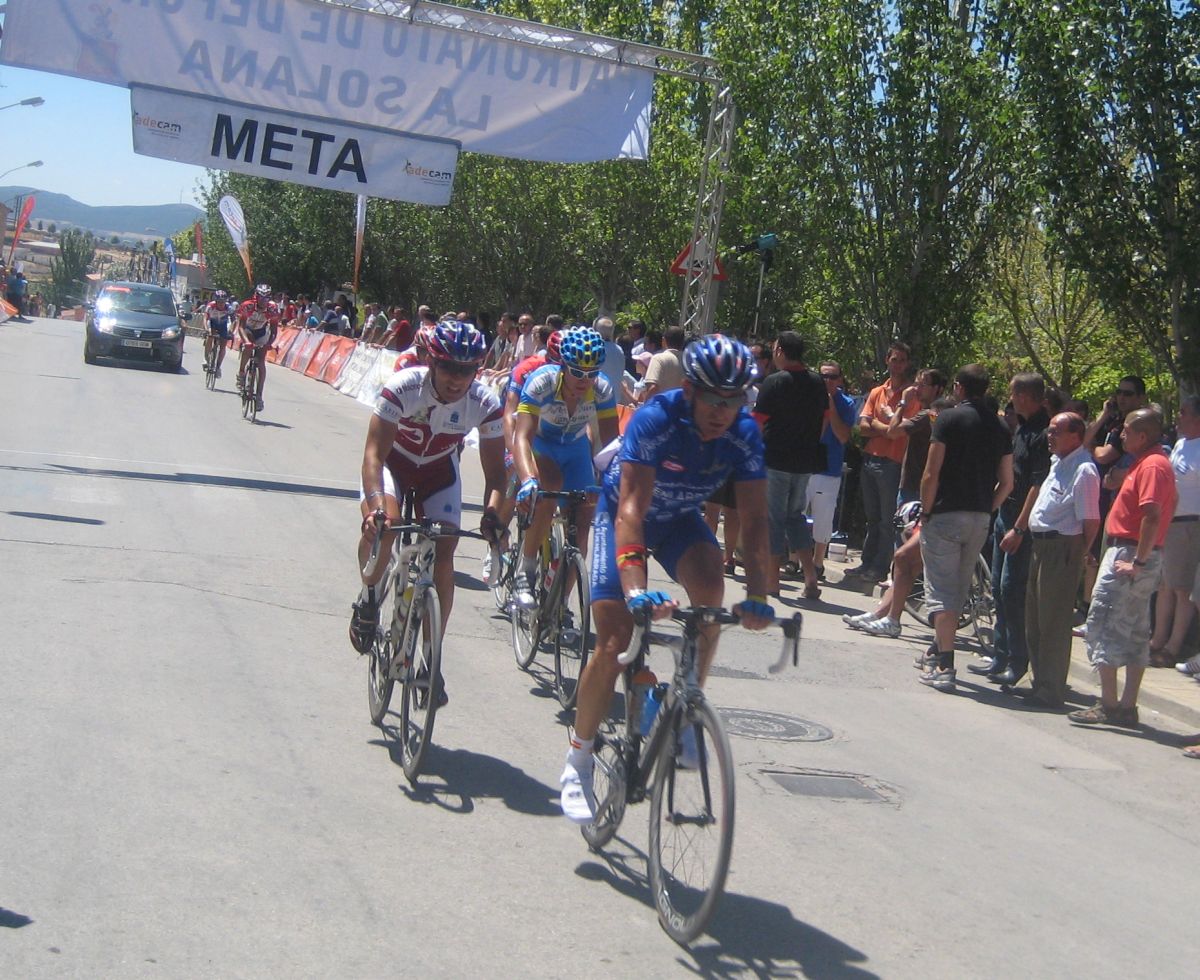 Tomamos ya el descenso hacía Ruidera, la carretera era tortuosa, un asfalto irregular que no te dejaba ir comodo sobre la bici, pasamos por el puente de la carretera de Manzanares-Albacete donde se ven las lagunas y en Ruidera giramos a la izquierda, un látigo enorme y comenzaba el puerto, o la subida mas dura del día. No es que fuera duro, pero el látigo a lo que se subió eso fue enorme, yo no se quien iría tirando, serían ataques, pero se enfiló eso a tope hasta que coronamos el puerto, como se anda en un campeonato de España Elite, se notaba mucha diferencia con la Vuelta Sevilla, y eso que aqui no había extranjeros.