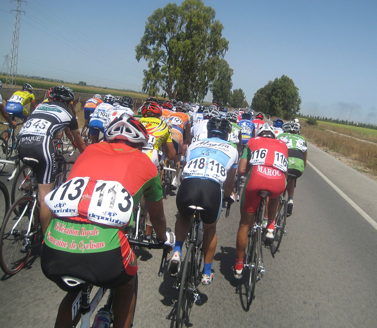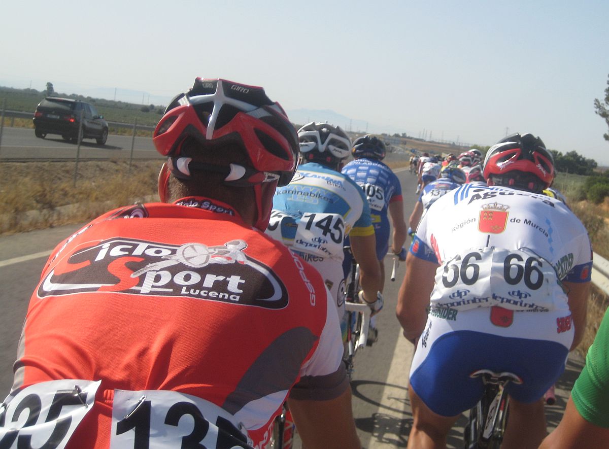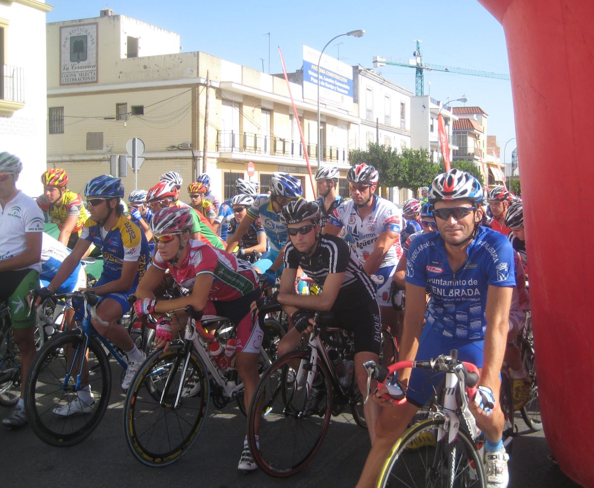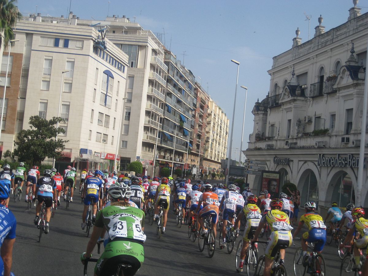 Ahí nos acomodamos a rueda, iban tirando los Cajasur para Montenegro, por delante iba una fuguilla con Alvaro García, Alexis, Tiago.. los mas escaladores, pero entre varios equipos tirando acabaron anulando la fuga poco antes de Lora del Río.
