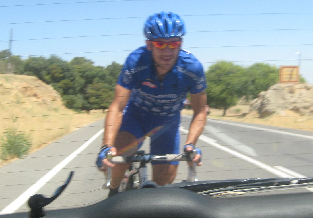 En la entrada a la autovía tuve dudas por donde era y el Oriol atacó al verme dudar, pero entre Navalón y yo lo cogimos, entrabamos en la Autovia y bajamos hacía el Parador de Carmona, en los tramos llanos si le pasaba pero subiendo ese tio lleva mas gas que yo como para que le pase.
