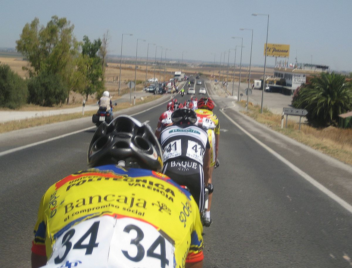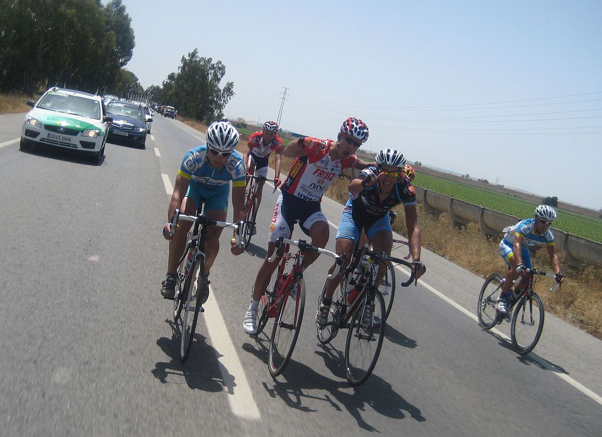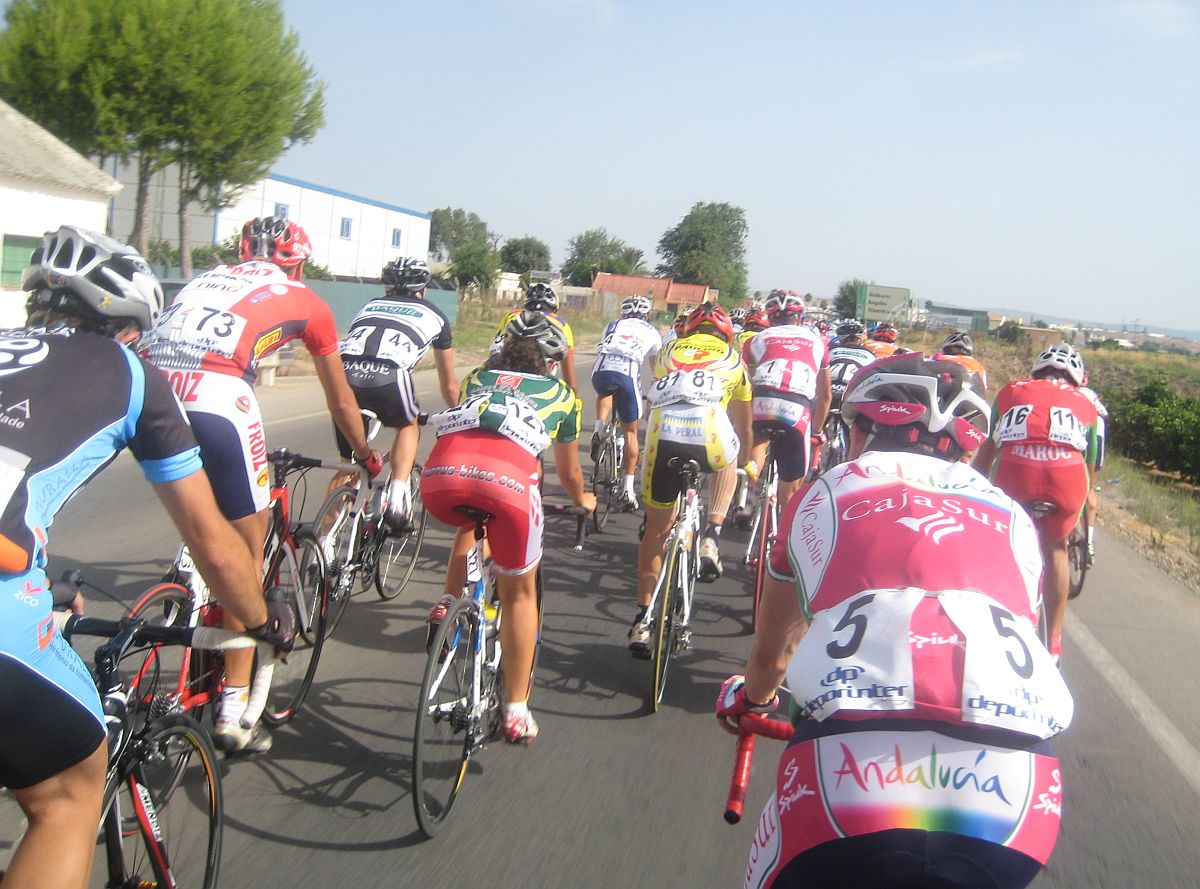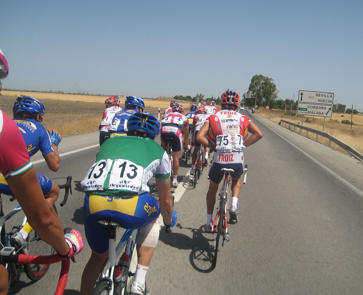 Pasando Lora del Río camino de Carmona era donde empezaba la carrera de verdad, donde se decidía la vuelta, se hizo un corte de 25 tios donde me metí entrando a última hora con el marranete, de allí soltaba la gente unas ostias tremendas, gente de muchos kilates en Sevilla, tocaba sufrir mucho.