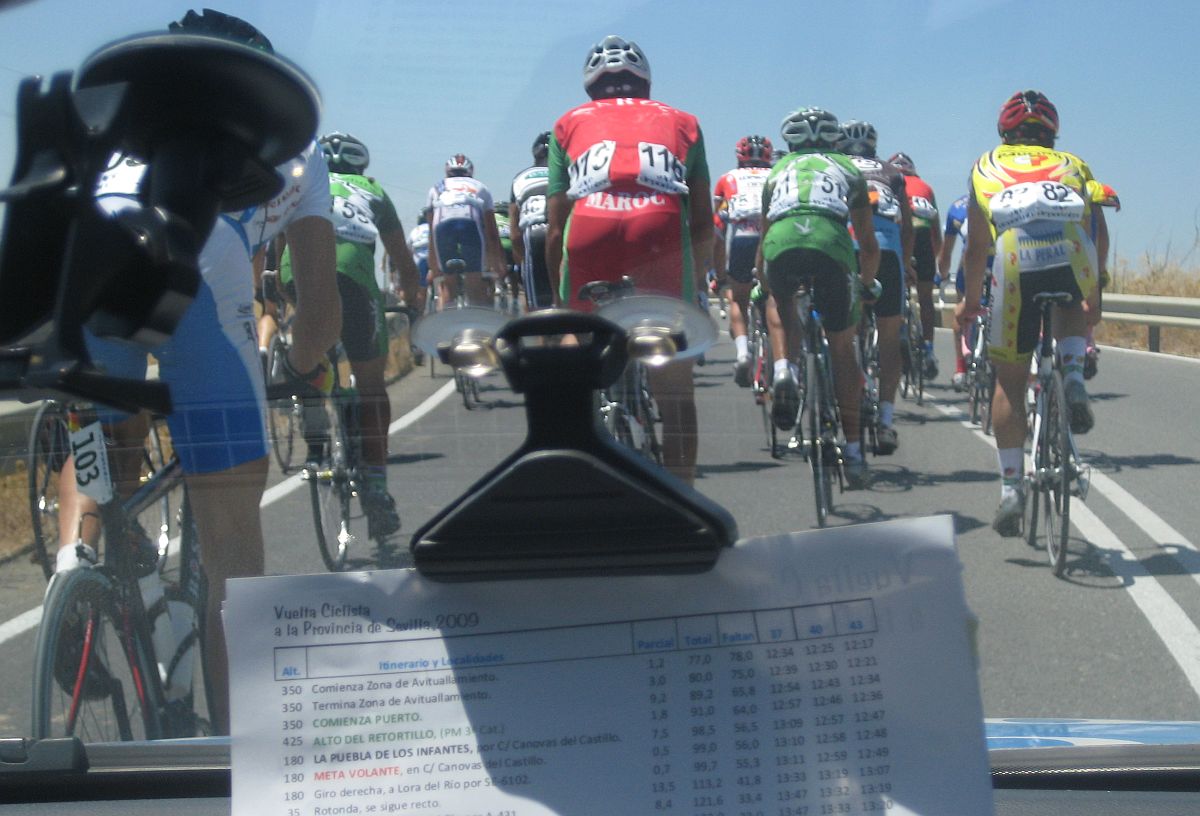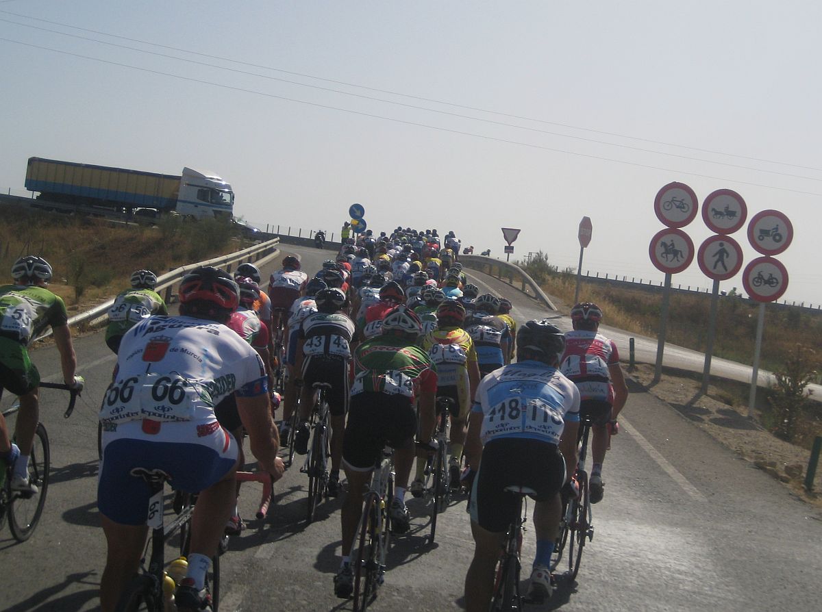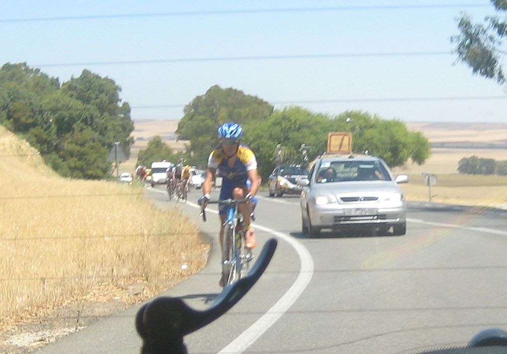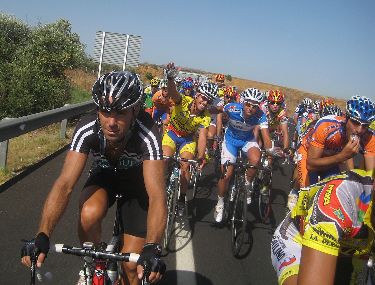 Pasando Lora del Río camino de Carmona era donde empezaba la carrera de verdad, donde se decidía la vuelta, se hizo un corte de 25 tios donde me metí entrando a última hora con el marranete, de allí soltaba la gente unas ostias tremendas, gente de muchos kilates en Sevilla, tocaba sufrir mucho.