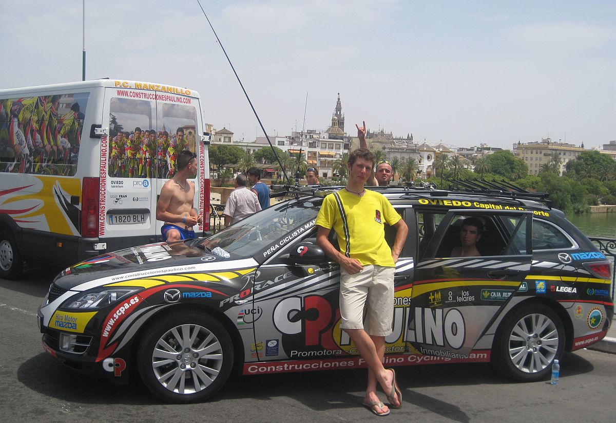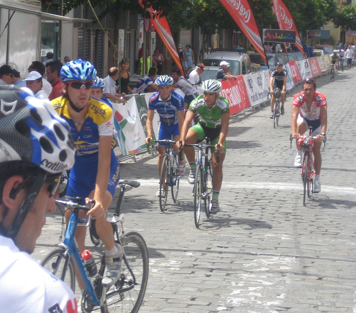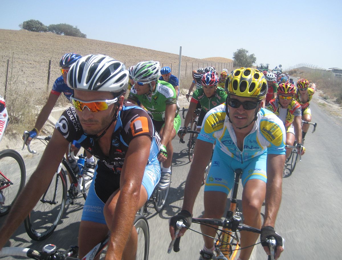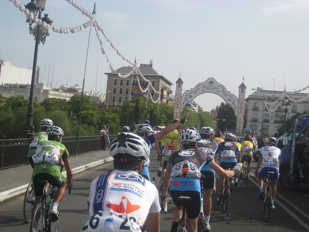 Pasando Lora del Río camino de Carmona era donde empezaba la carrera de verdad, donde se decidía la vuelta, se hizo un corte de 25 tios donde me metí entrando a última hora con el marranete, de allí soltaba la gente unas ostias tremendas, gente de muchos kilates en Sevilla, tocaba sufrir mucho.
