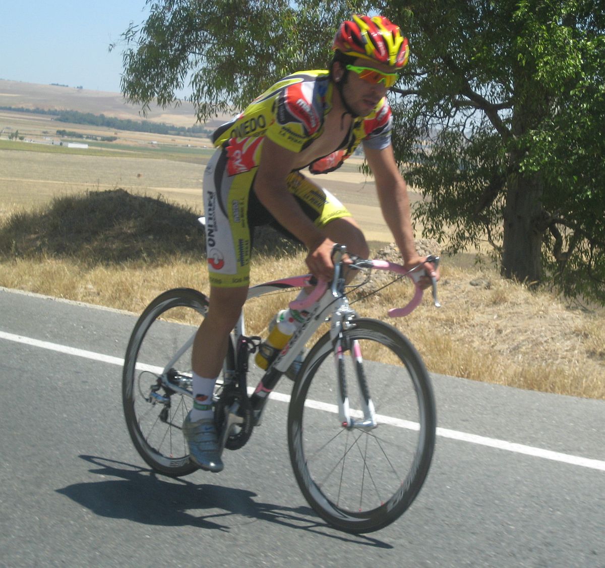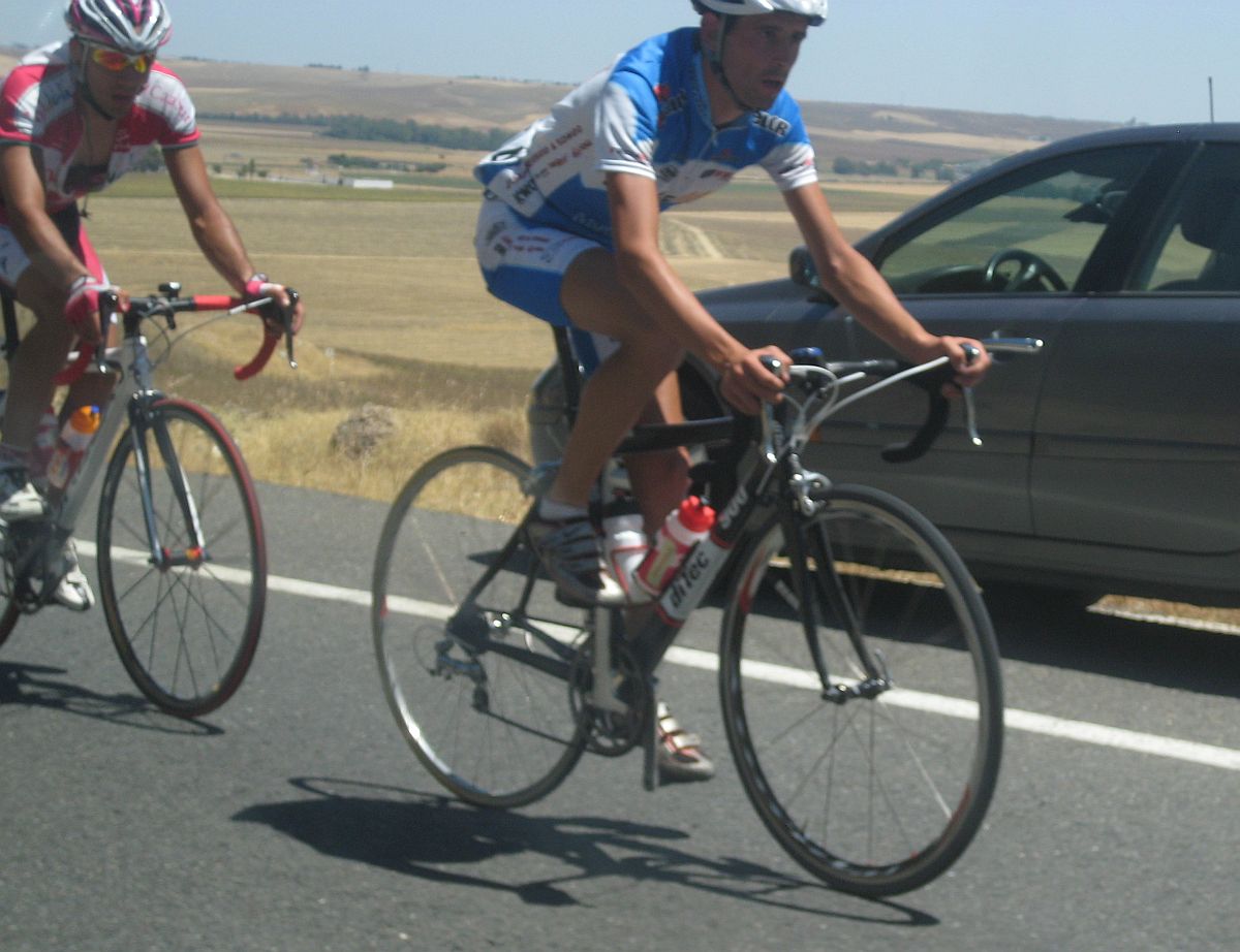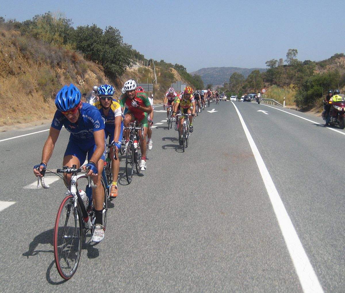 Llegamos al primer puerto duro, ahi aguante en el grupo subiendo como podía pero en el siguiente puerto el grupo paró, vi que gente como Salgueiro o Antonio García se quedaban ahí y tuve que arrancar a plato para irme y coger alante, que era donde estaba la carrera, pillé a David que iba en medio y los dos nos pegamos una remada haciendo todo el durisimo tramo de puertos de la sierra sevillana hasta que entrando en un pueblo pillamos al grupo de alante, que eran unos 30, menos mal!!