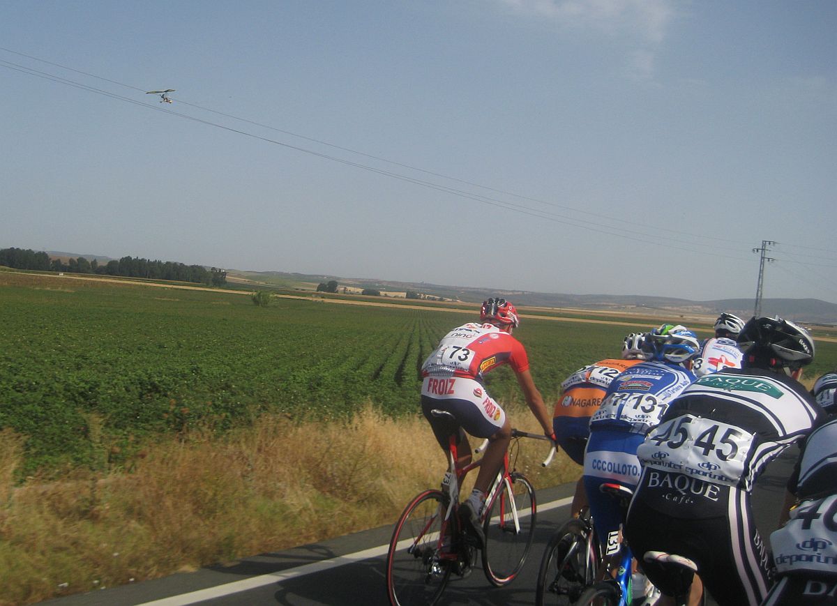 Pillé un corte con Montenegro y unos pocos mas, pero por delante iban 6 hombres, Zugasti arranco muy fuerte en un páramo desde atrás, su posición y tuvo exito formando ese corte. En el grupito de Montenegro no había demasiado orden y arranqué yo solo marchandome por delante, pillando a Navalón que hacía de puente.