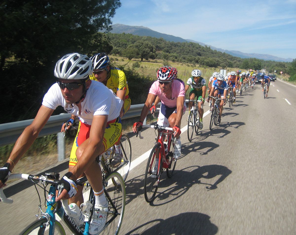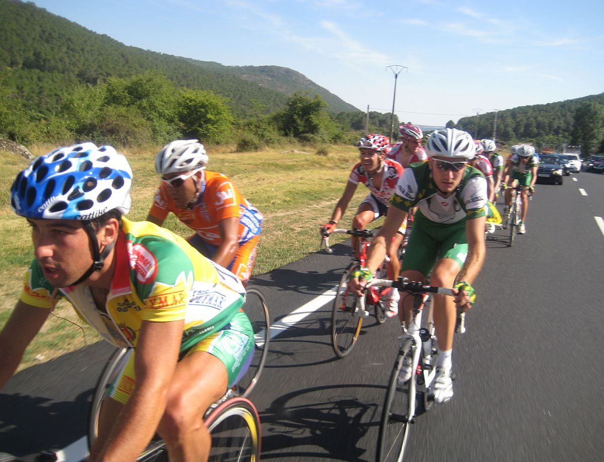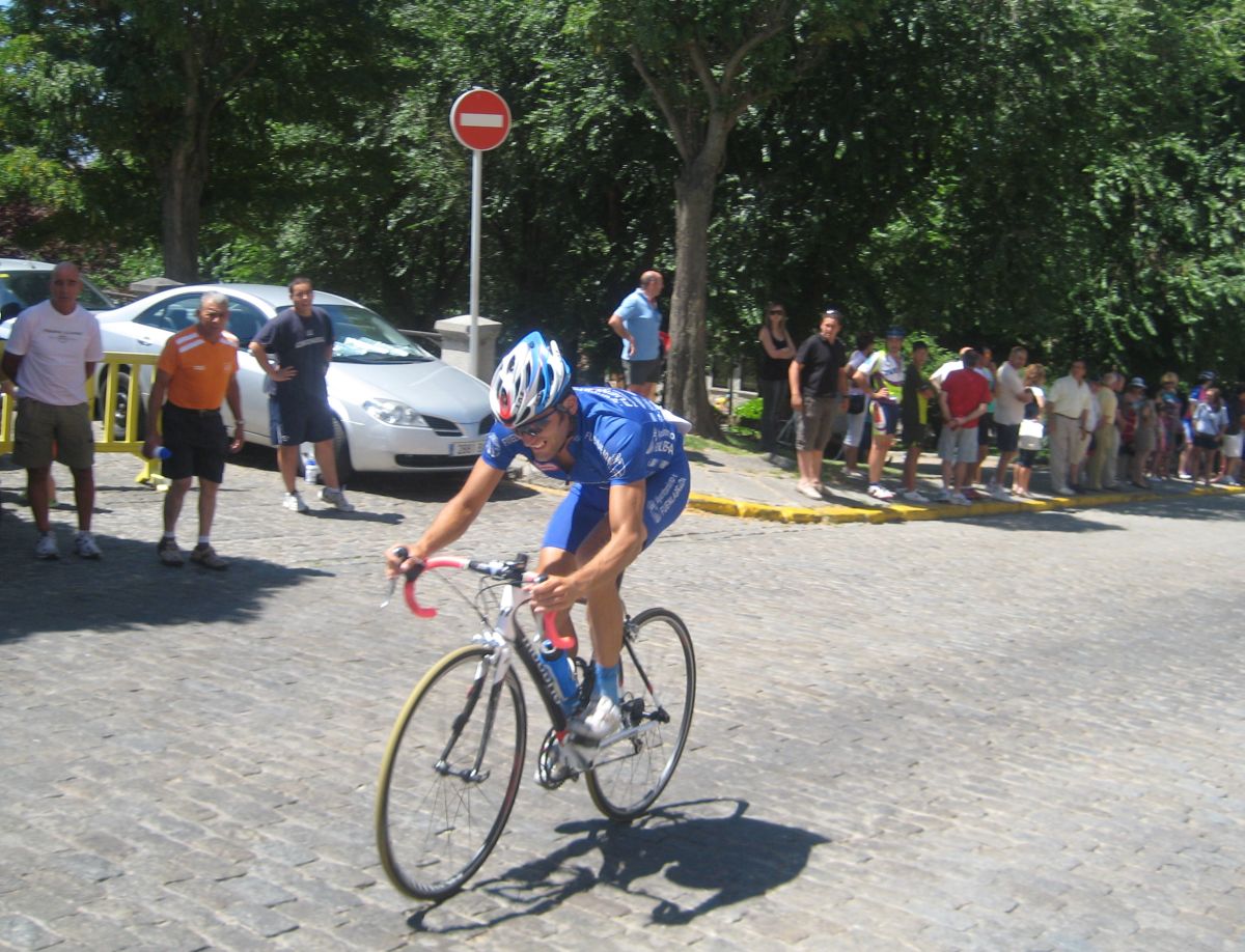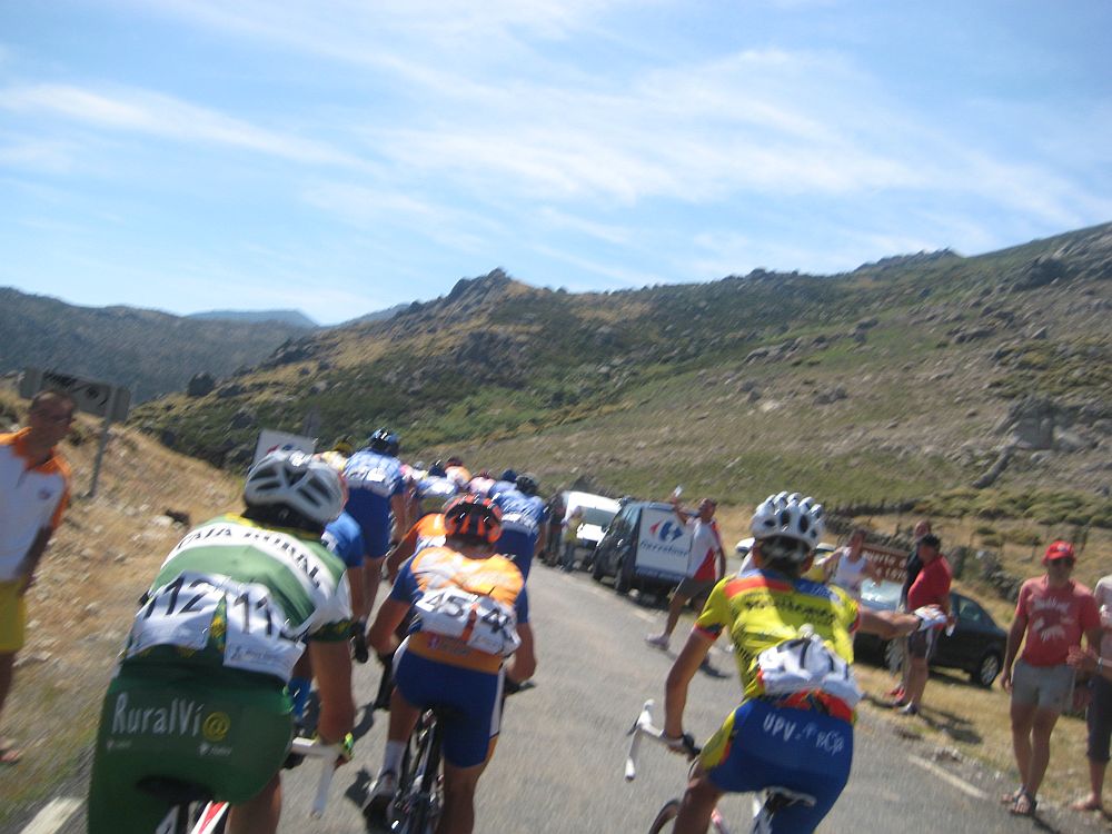 Una paliza de esas ya te deja tocado, y mas cuando empieza el puerto que va de Barco de Avila a Gredos, asi que cuando se hizo la fuga buena era imposible que yo estuviera, me quedé en el pelotón aguantando ahí a ver hasta donde llegaba, a 500 metros de coronar el puerto final a 5 km de meta se me cortó la inyección turbo y me abrí con el Pizarro, llegamos a meta con un Cai a 30 segundos del pelotón, que llegaba a 1.20 del ganador de la etapa, el jienense Jose Aguilar.