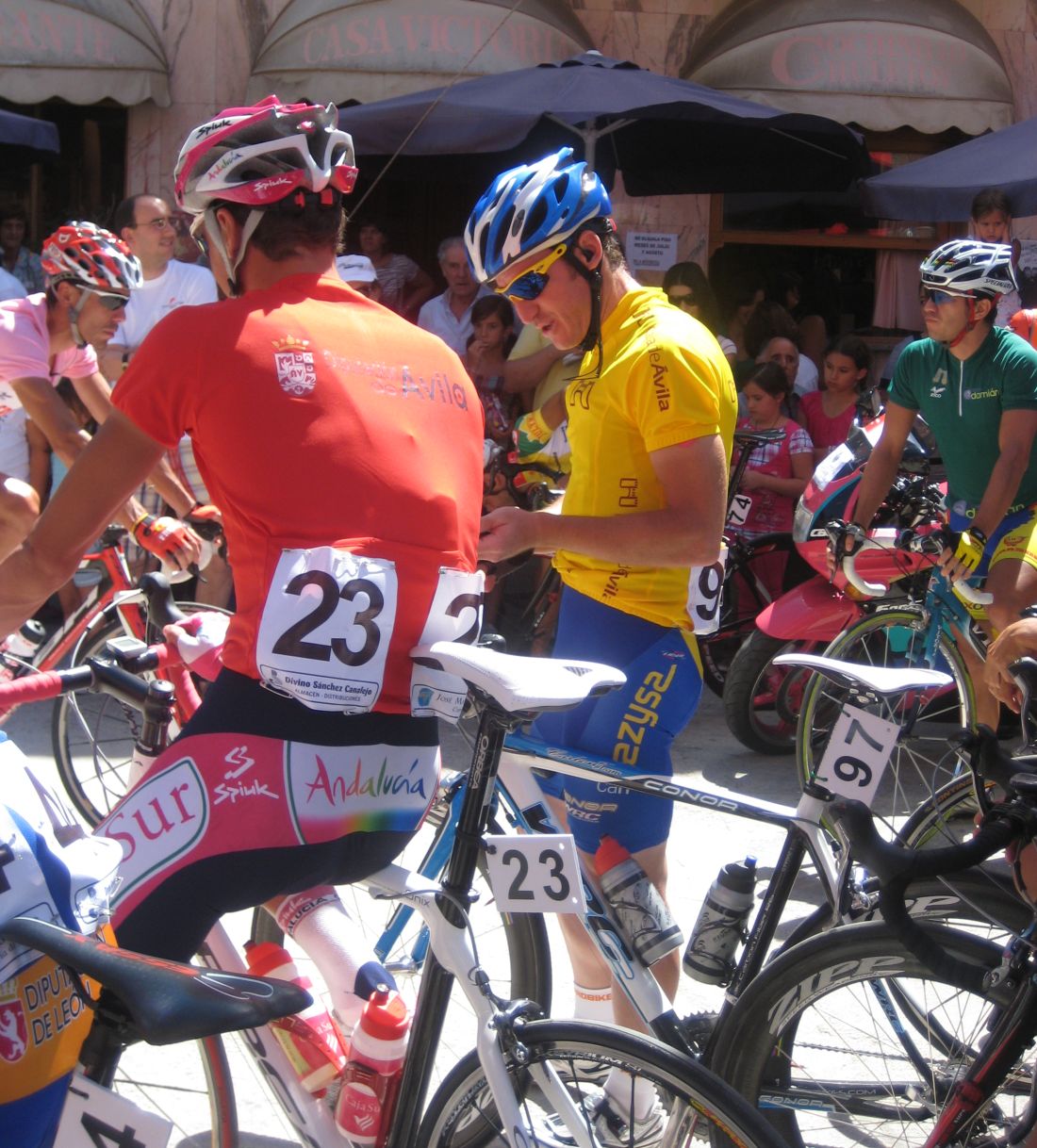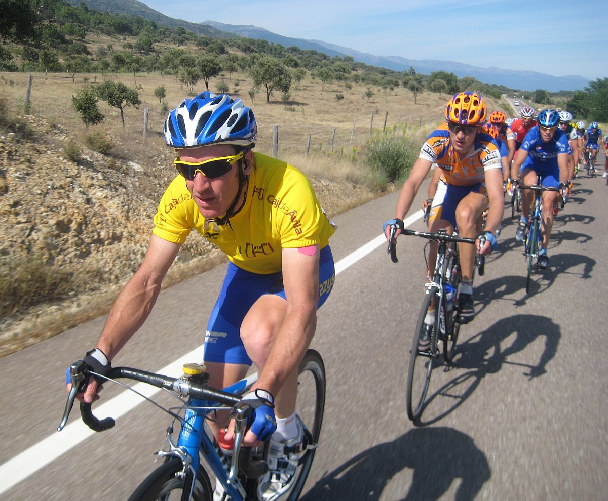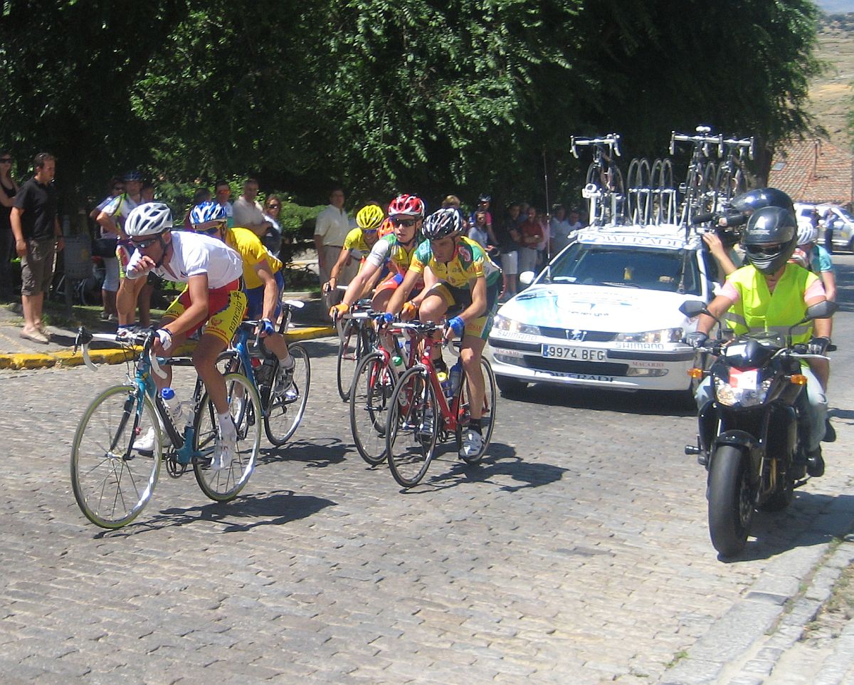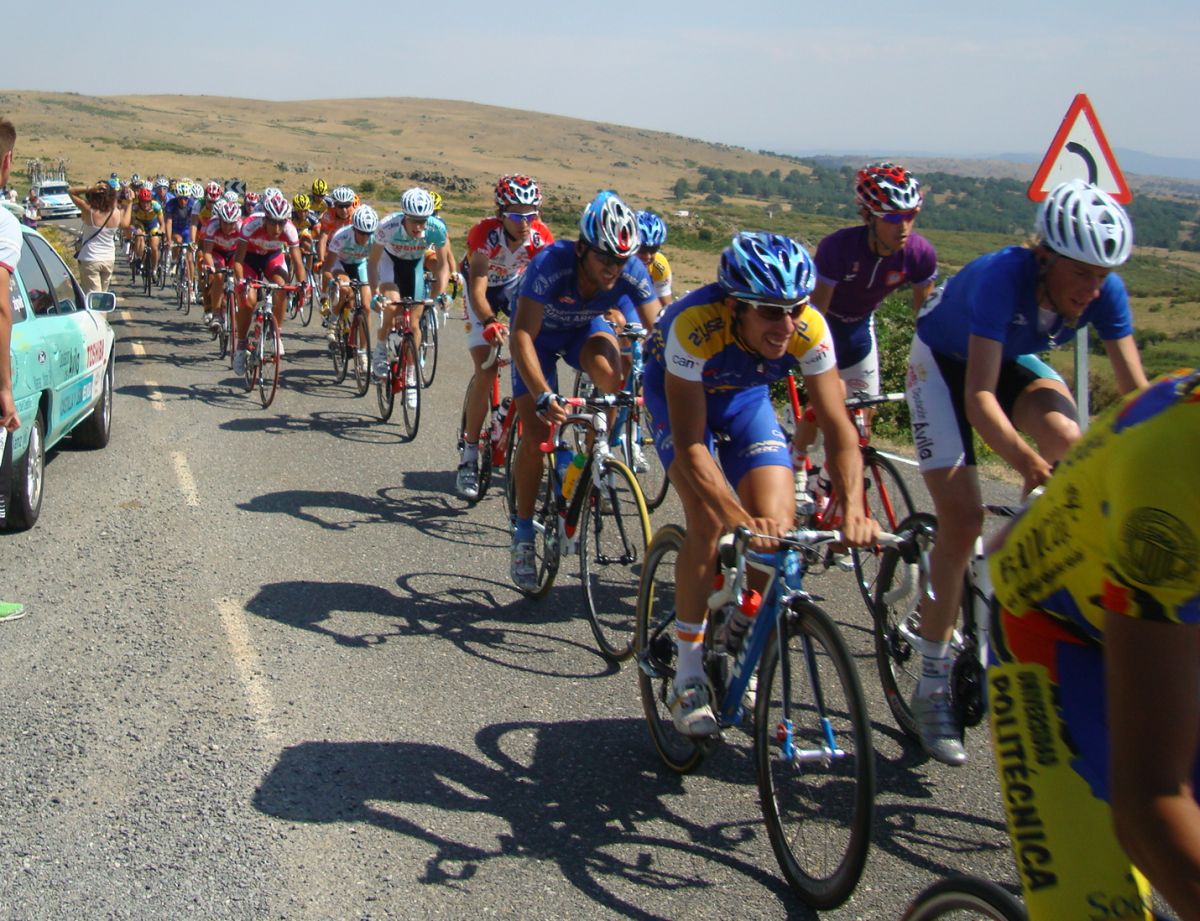 Una paliza de esas ya te deja tocado, y mas cuando empieza el puerto que va de Barco de Avila a Gredos, asi que cuando se hizo la fuga buena era imposible que yo estuviera, me quedé en el pelotón aguantando ahí a ver hasta donde llegaba, a 500 metros de coronar el puerto final a 5 km de meta se me cortó la inyección turbo y me abrí con el Pizarro, llegamos a meta con un Cai a 30 segundos del pelotón, que llegaba a 1.20 del ganador de la etapa, el jienense Jose Aguilar.