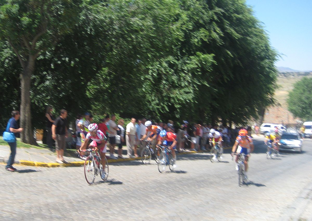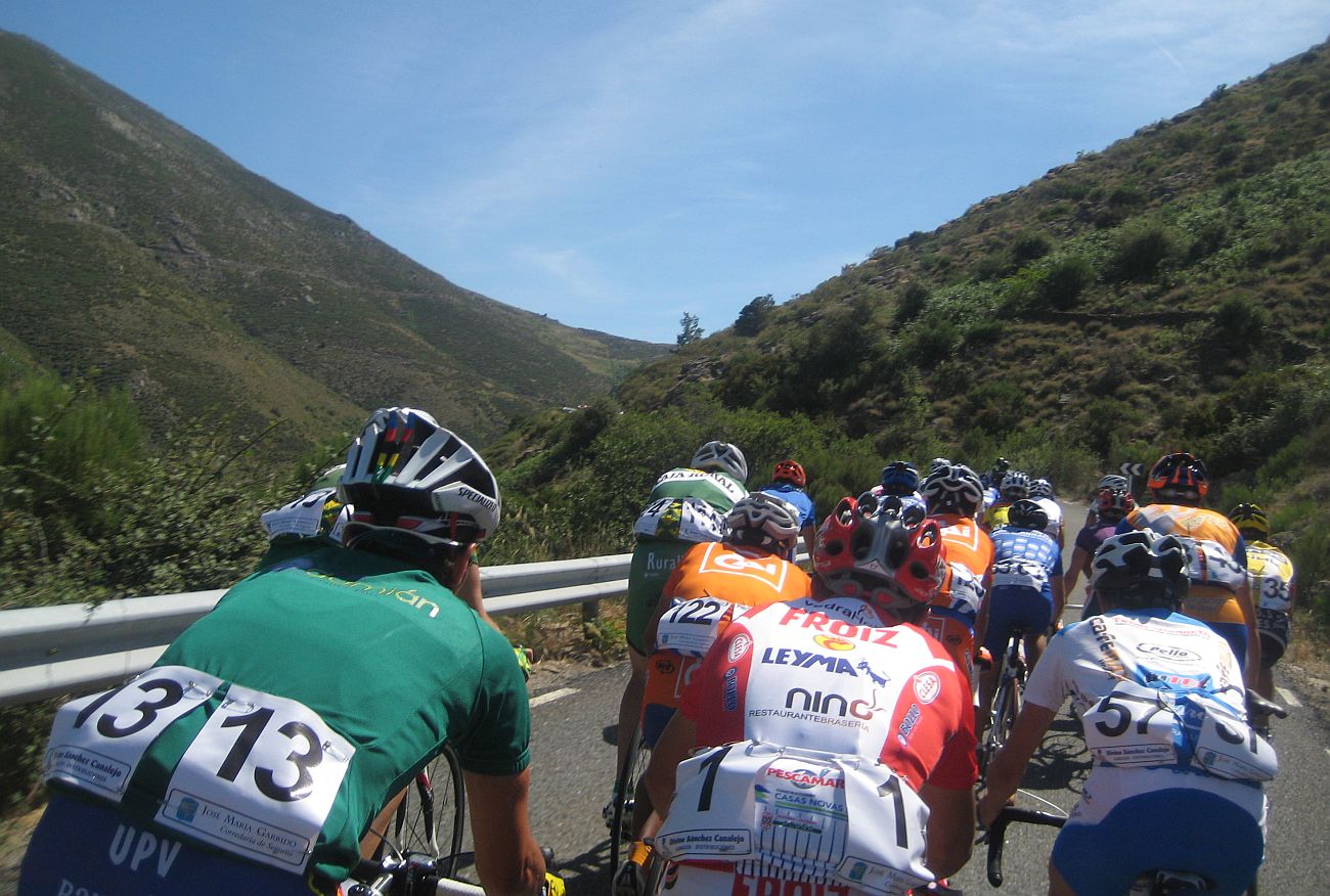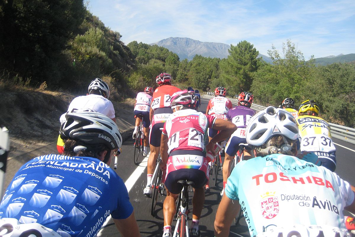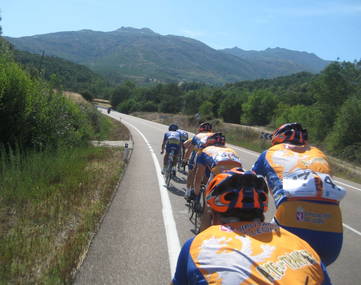 Ya quedabamos unas 30 unidades en el pelotón, yo iba bastante bien aguantando el ritmo bueno que llevaban los Azysa, mientras no haya ataques aguantamos asi hasta arriba, estos son los puertos que se me dan bien, progresivos de muchos kms, pero se jodió el invento, Mariano de fino fue el primero en atacar en una rampa dura pasando San Esteban del Valle, allí lió la traca para lanzar al joven mexicano del León, que había hecho segundo en el tiemblo.