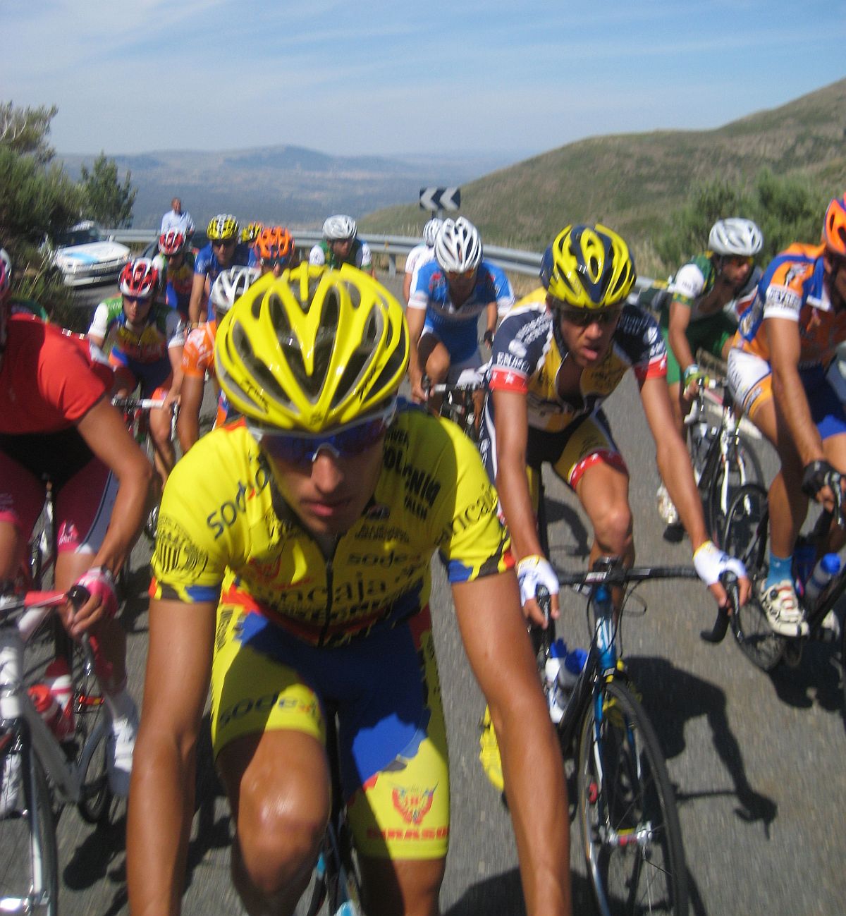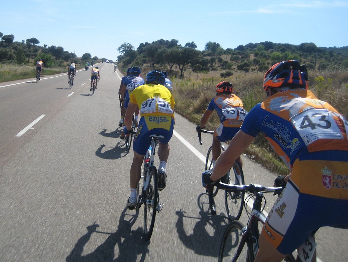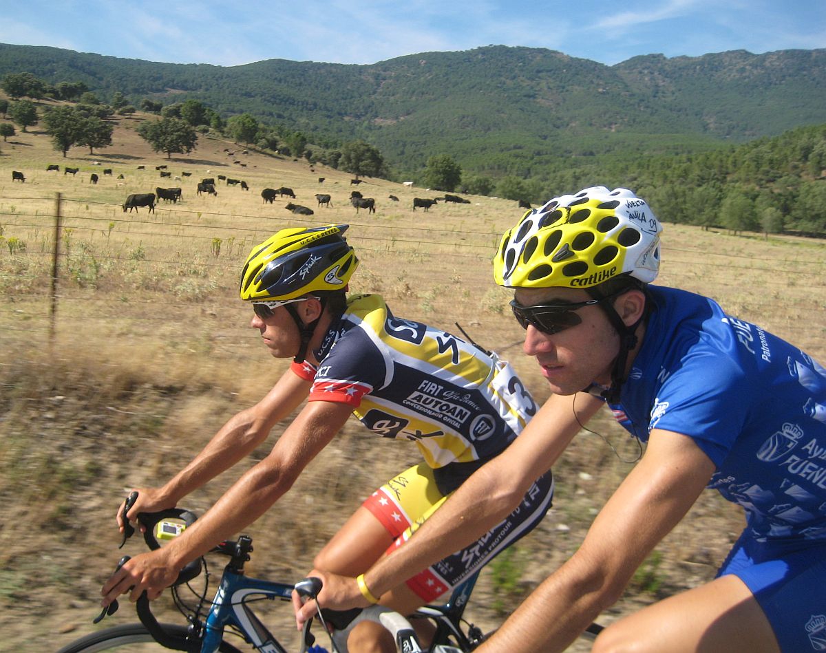 Ya quedabamos unas 30 unidades en el pelotón, yo iba bastante bien aguantando el ritmo bueno que llevaban los Azysa, mientras no haya ataques aguantamos asi hasta arriba, estos son los puertos que se me dan bien, progresivos de muchos kms, pero se jodió el invento, Mariano de fino fue el primero en atacar en una rampa dura pasando San Esteban del Valle, allí lió la traca para lanzar al joven mexicano del León, que había hecho segundo en el tiemblo.