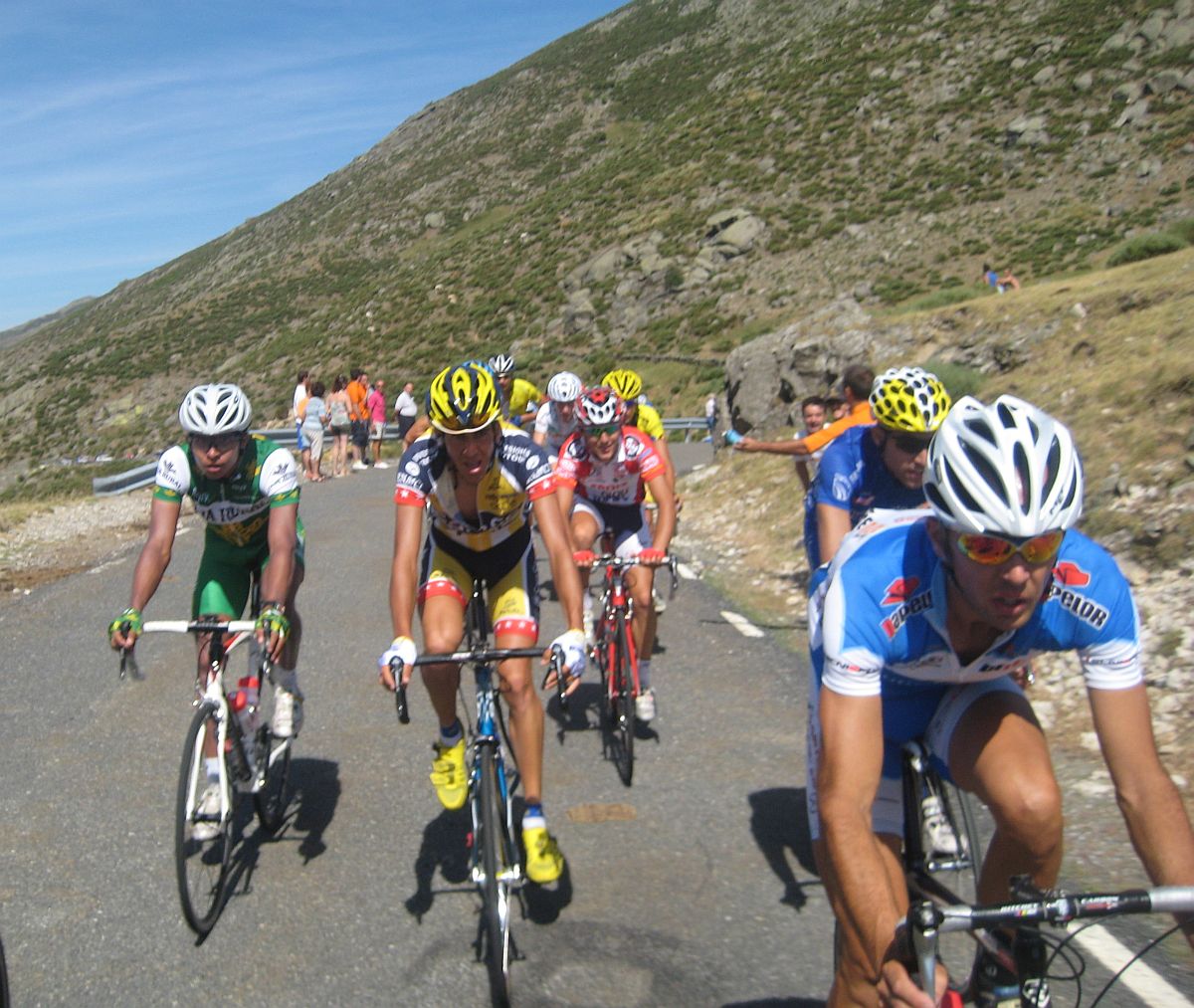 Descenso del boquerón y esta vez parece que por lo menos llego bien colocado al odioso Mediano, pero nada. al quitar plato se me sale la cadena, y gracias que pizarro me empujó que sino pongo pie a tierra, pero ya perdí 20 puestos y entre lo que odio el mediano ya me vine abajo y cuando vi arrancar al Antonio García puff. se me quitaron las ganas de sufrir, subi sin forzar, desmoralizado.. ya en lo mas duro empezé a pasar gente pero es que es un puerto para bikers que no me motiva nada.