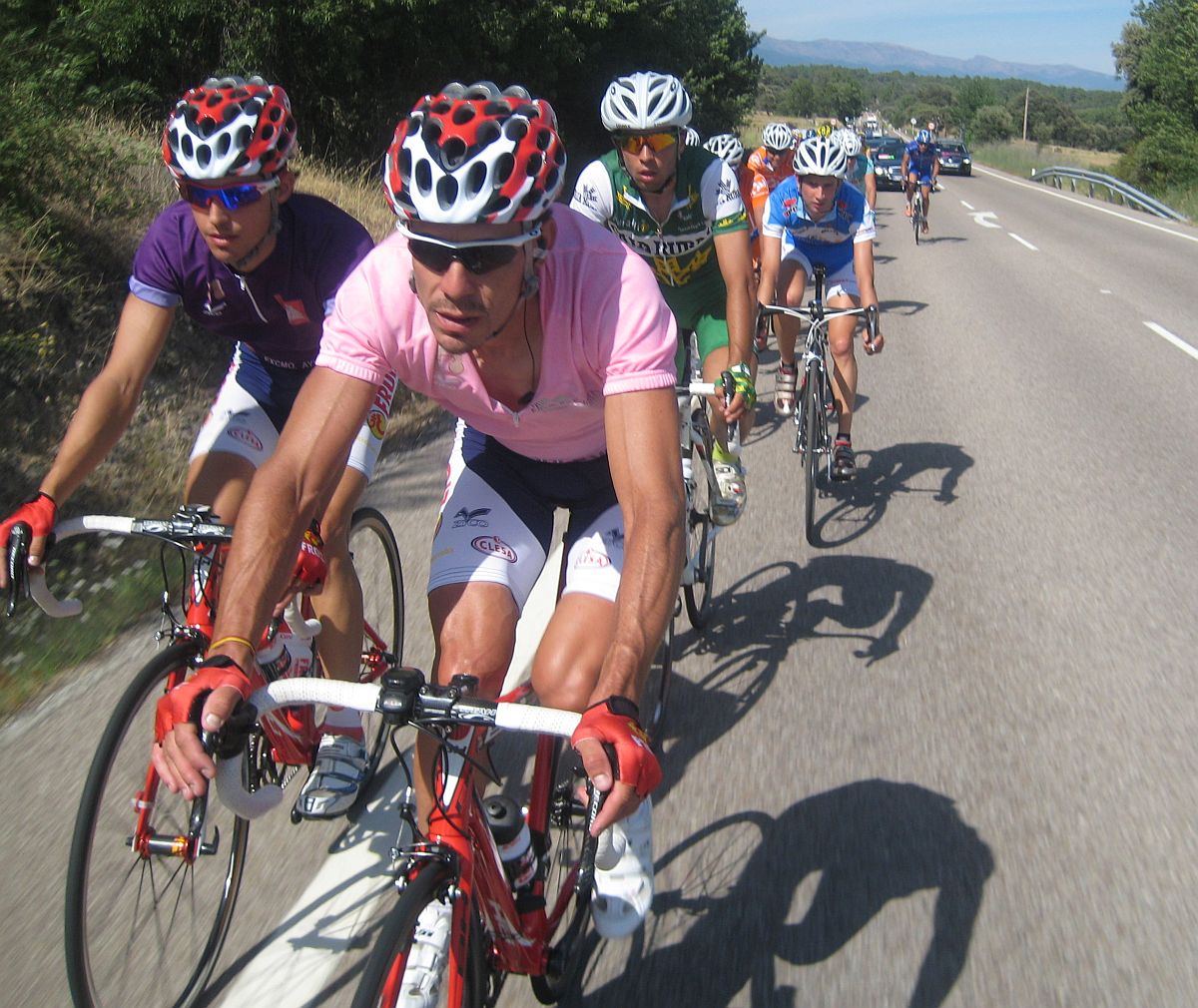 Que cambio de ritmo, intenté aguantar pero no, un dolor de piernas.. buff, mejor coger ritmo y hacer la goma, ahí sufriendo pasando la gente que se iba quedando, vi que habían parado alante, apreté , parecía que habían parado.. tras mucho sufrir conseguí volver a entrar al pelotón, donde ya solo aguantaban unos 20 tios, pero iba muy muy tocado, cualquier movimiento me volvería a quedar, como dice perico, cuando te has quedado, te has quedado.