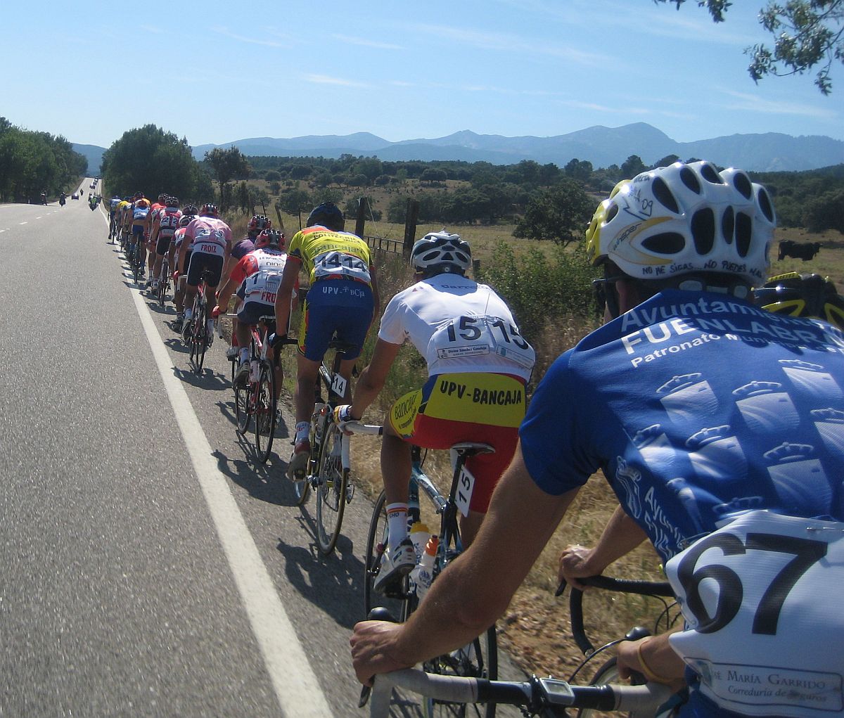No estuve hábil para pillar la fuga buena, es demasiado llana la carretera, no hay repechos y me desenvuelvo peor arrancando en rectas llanas, de todas maneras se metió Abel Fragua, luego me metí en otra sin exito y se hizo otra que pilló la de Abel.