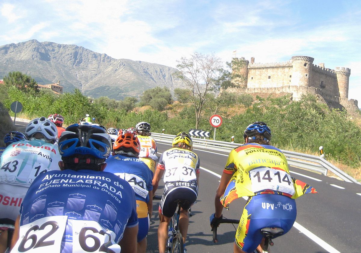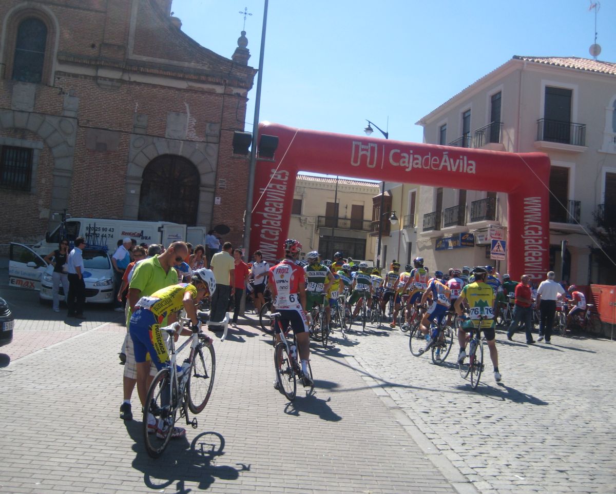 Ramacastañas, giro a la derecha y comienza puerto, primer repecho doloroso al cambiar de carretera y aire de culo, empiezan los ataques camino de Mombeltran, con aire de culo horrible, como se iba por allí daba miedo, pero bueno ahí metidito aguantabas, aunque mucha gente petó ya en esos ataques, pasamos Mombeltran, y entramos ya en la carretera de Serranillos, comienza el puerto oficialmente.