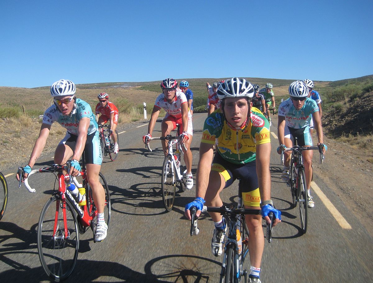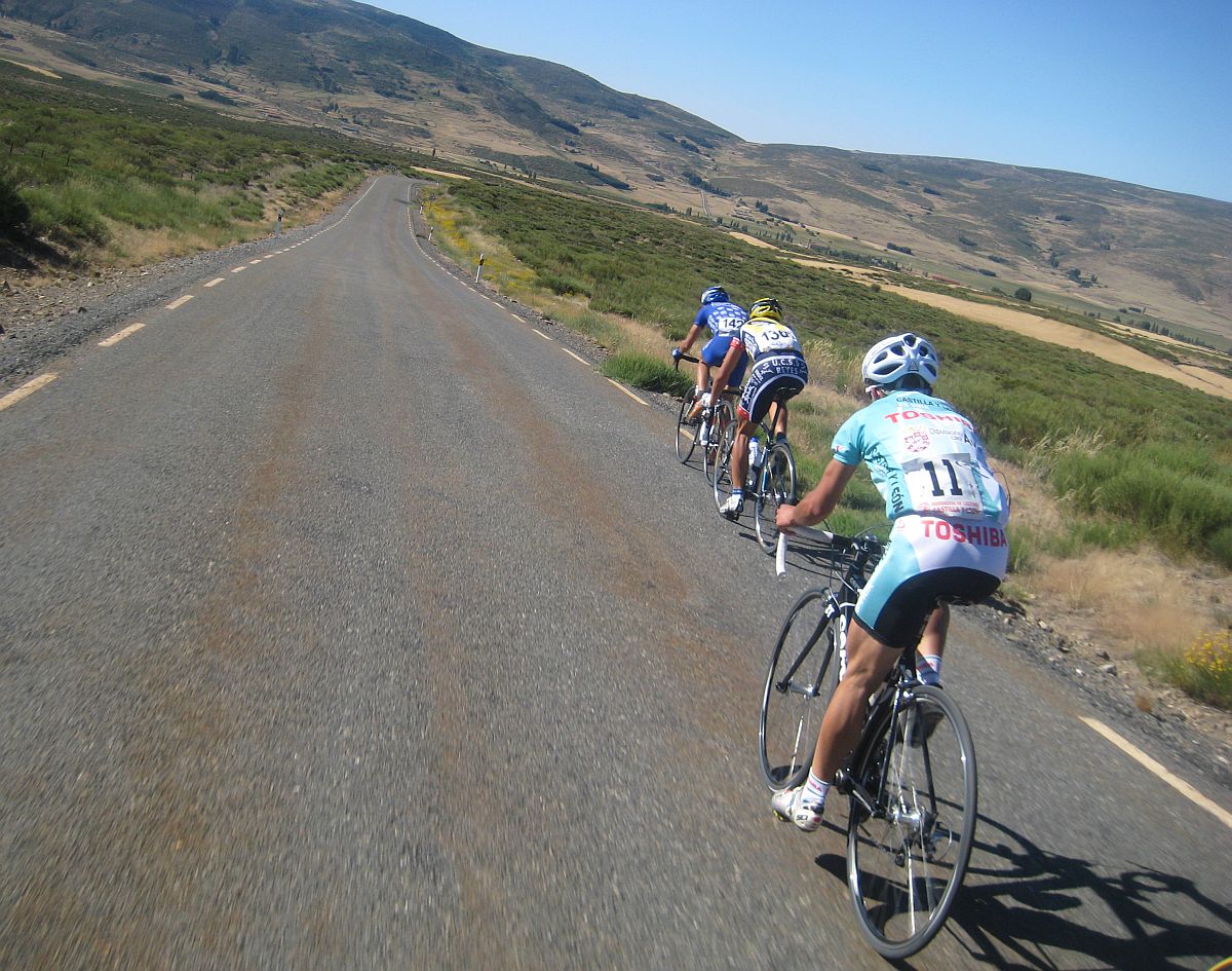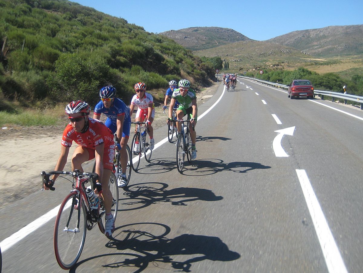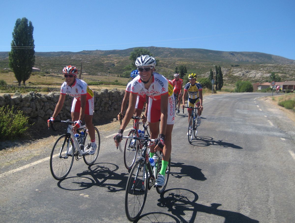 Pues después de Barajas, el puerto duro del día, quedabamos ya unos 20 tios en el grupo, de el Fuenlabrada aguantabamos 4 hombres, Almeida, Abel Fragua, Jose David y yo, bajamos a unas vaguadas y como nadie quería tirar el Cebolla empezó a meter cuneta, asi es Avila, puertos combinados con la Cuneta, lo mejor de lo mejor, jeje.