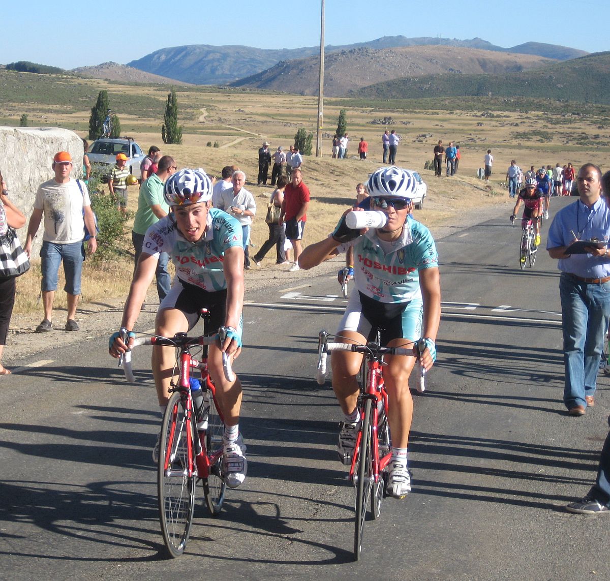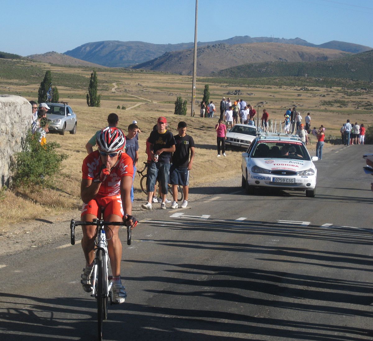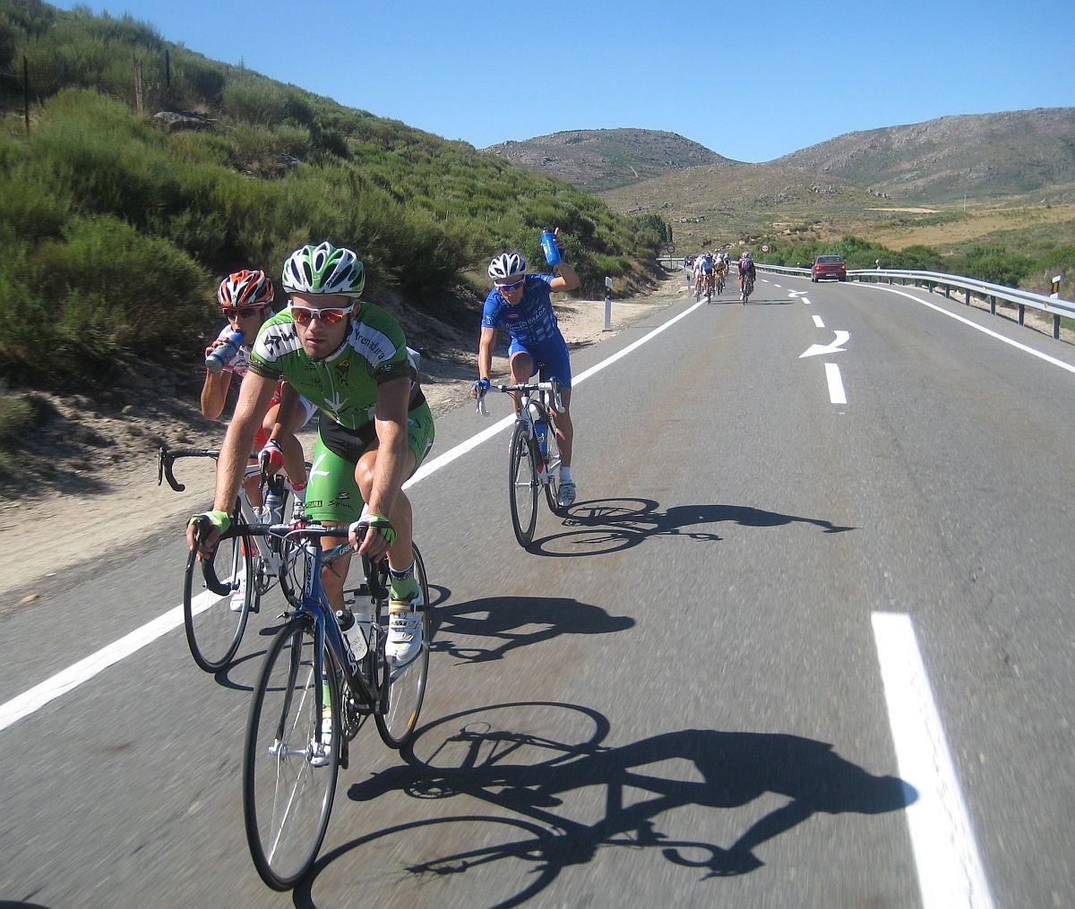 Pues después de Barajas, el puerto duro del día, quedabamos ya unos 20 tios en el grupo, de el Fuenlabrada aguantabamos 4 hombres, Almeida, Abel Fragua, Jose David y yo, bajamos a unas vaguadas y como nadie quería tirar el Cebolla empezó a meter cuneta, asi es Avila, puertos combinados con la Cuneta, lo mejor de lo mejor, jeje.