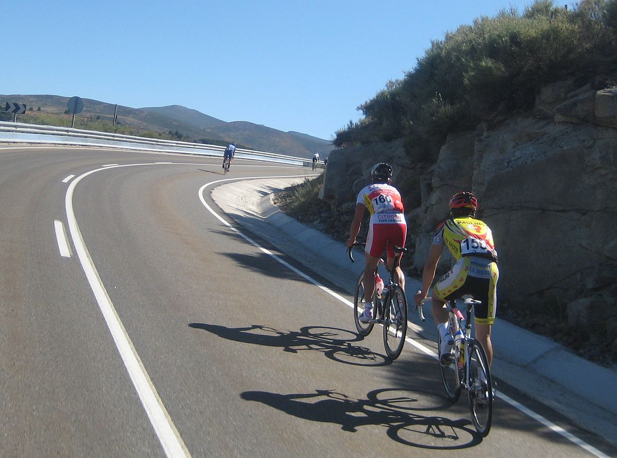 Subiamos el puertecillo del principio, había que subirlo 3 veces, esta vez subiendo me encontré mil veces mejor que la primera, coronando me puse a tirar y sin querer corté al grupo, nos fuimos el Trican y yo, cuando vas bien haces daño sin darte cuenta.