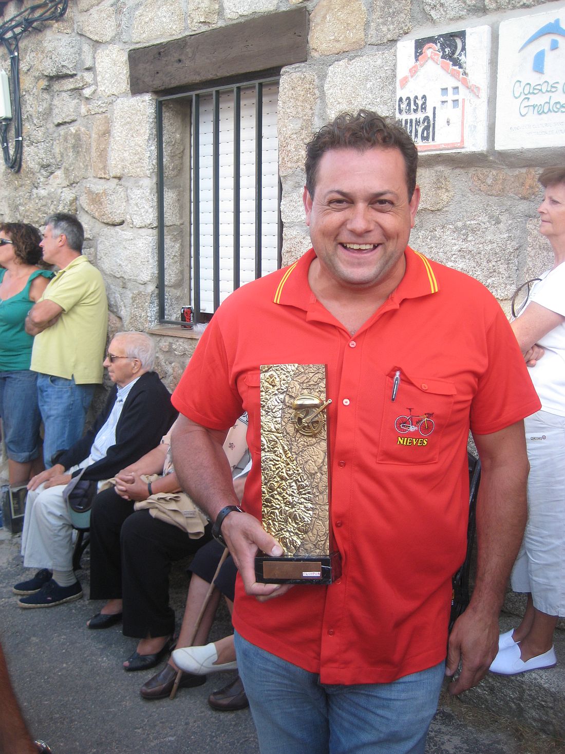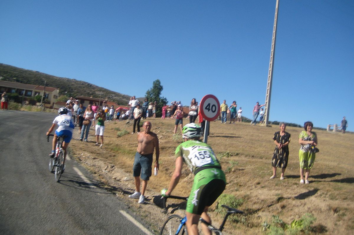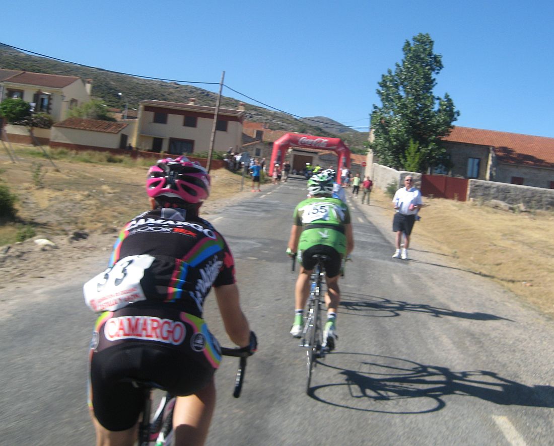 El puerto se subía muy rápido con aire de culo y continuos descansos hasta que se juntaron los tres grupitos que se habían formado, en el último tramo mas duro, donde ya fui progresando hasta colocarme alante, hubo ataques y se estiró la cosa, alli se rompió camino del parador, fueron unas tensadas duras pero donde peor lo pasé yo en toda la carrera fue en el repecho del pueblo cuando pillé el corte del principio.