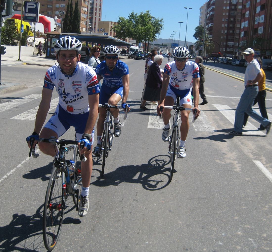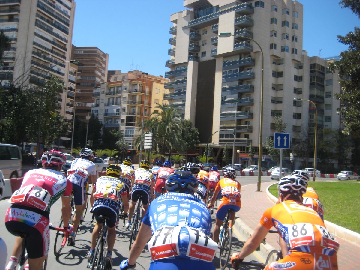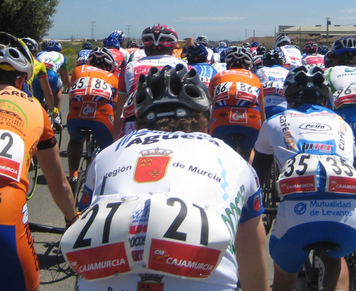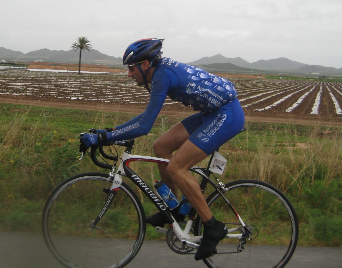 En esas grandes rectas por la zona de Fuente Alamo de Murcía iba yo solo, con la lluvia, el aire de cara.. ya paré, vi que no iba a ningun sitio, estuve unos 10 kms quemando las calorías que luego me iban a hacer falta, aflojé de los 40 por hora con el aire de cara a los 34 que me costaba mantener, y se iban acercando poco a poco, venían por la cuneta, cuando me cogieron solo venían 20 tios, se había cortado con el aire, mi ataque había tenido su significado, pero, pronto engancharon 30 tios mas, se jodió la cosa.