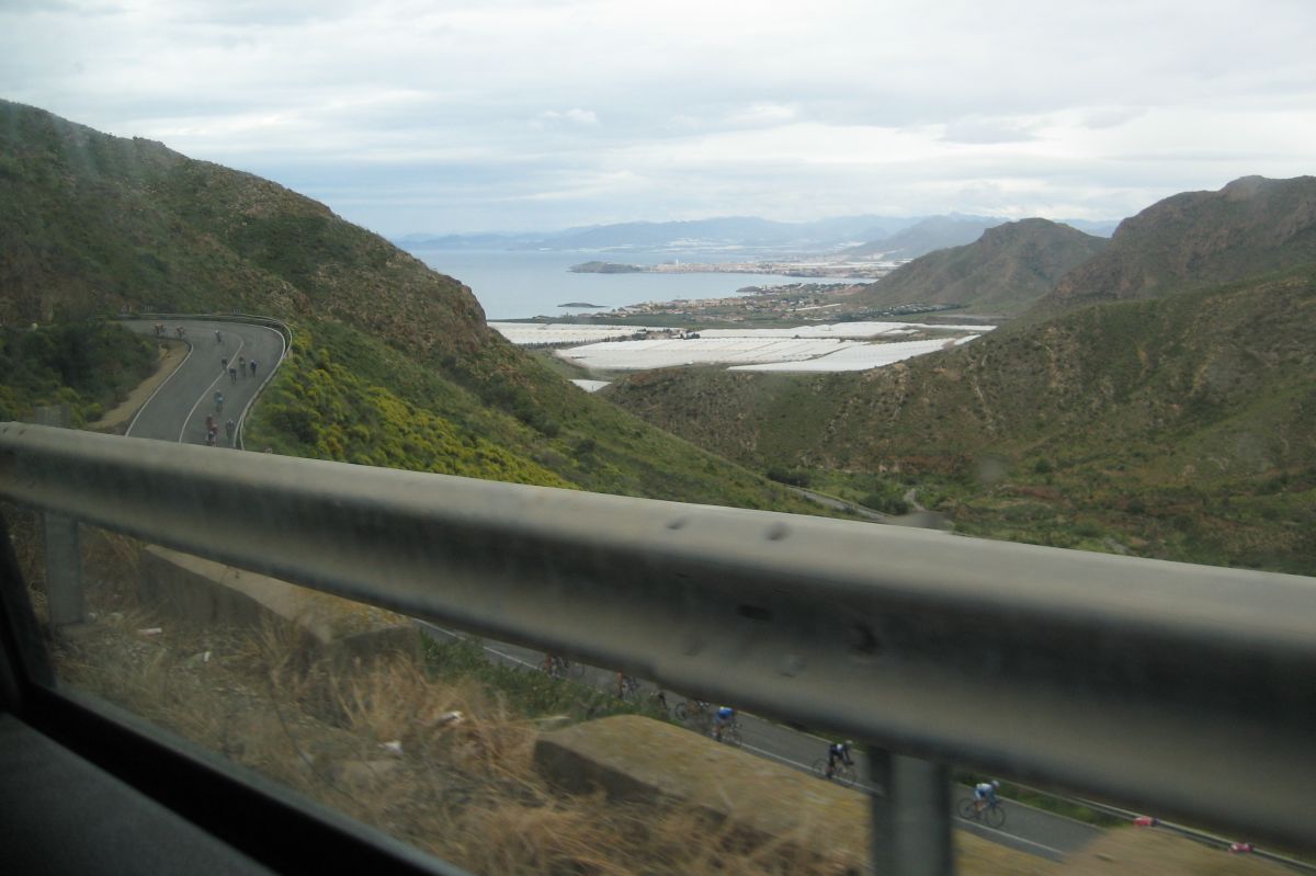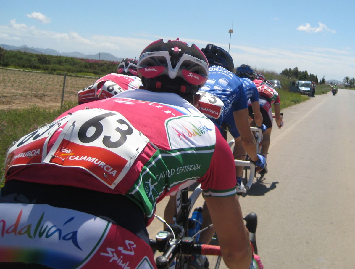 La típica etapa llana con aire de Cartagena, no se como se las apañan pero siempre hace aire, tras momentos de impass Manu del hierros dió el saque de honor, y a partir de ahí no se paró hasta meta, en el km 1 ya estabamos por la cuneta comiendo chinos, esa iba a ser la tónica general de la etapa, poco mas alante intenté meterme en un corte, vi que no se iba y me deje caer, acto seguido se empezó a encunetar mas de la cuenta hasta que se cortó. Demasiado pronto para cortarse, km 15, nos organizamos un poco y volvimos a entrar.