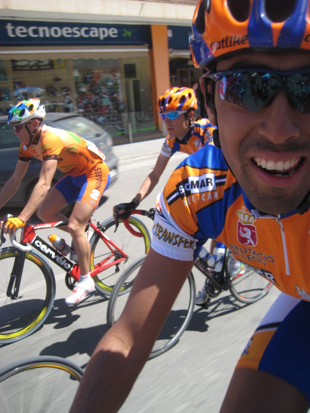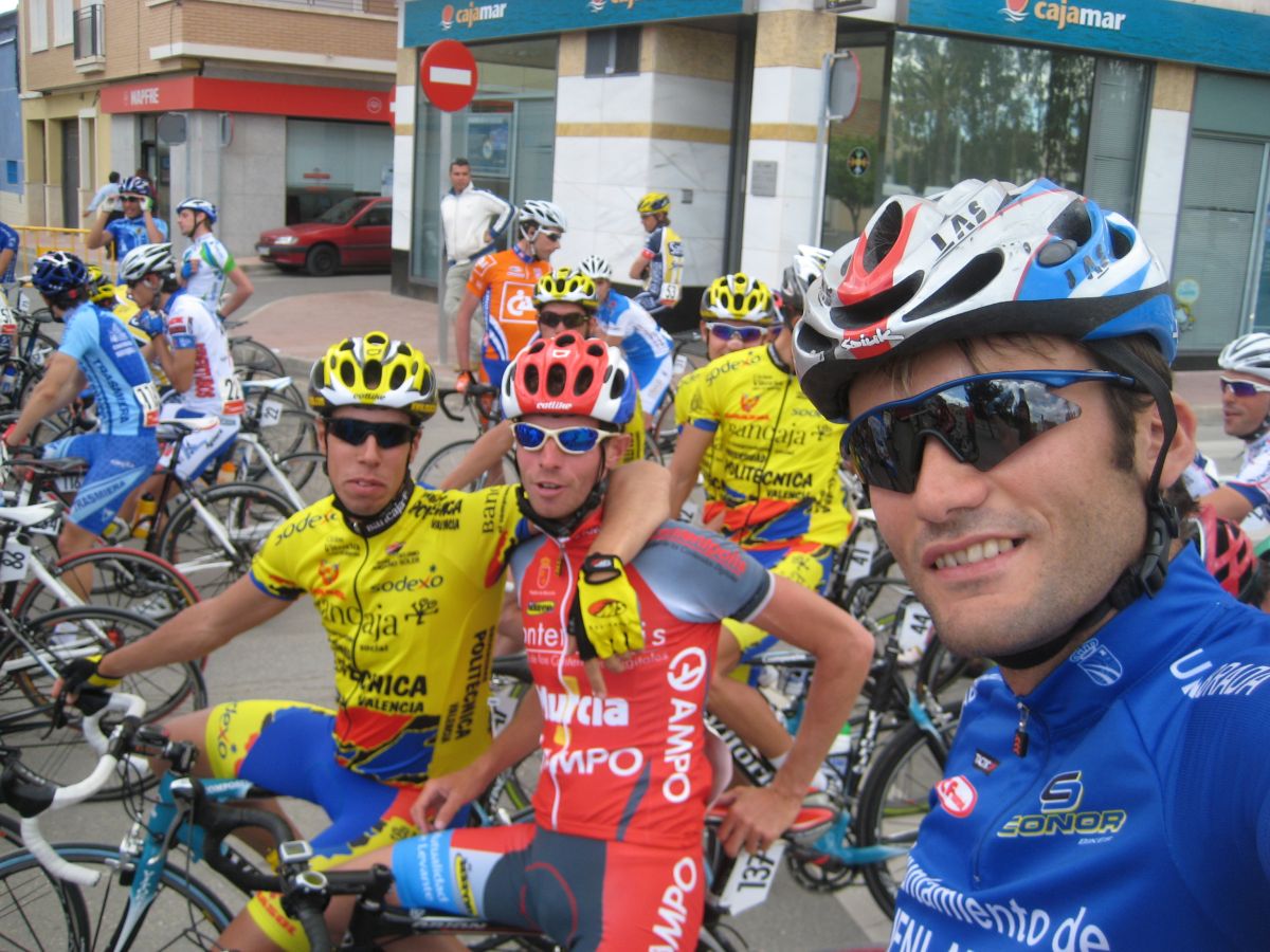 Arranqué después de que cogieran un corte que se había hecho subiendo el puerto con Artola y otros mas, pero no vino nadie conmigo, yo solo, había sacado hueco, al ir solo lo inteligente era parar, pero no me gusta parar, asi que a bloqueee, me puse a remar ahi a buen ritmo, recorte a la escapada, intentando hacer lo que hizo Lechuga en Olías, coger el solo la escapada, pero me quedé entre medias, miraba para atrás y el pelotón lo tenía muy lejos, y la escapada mas cerca, los coches de la escapada estaban ahí. pero empezé a imaginarme al Pol tirando, y me vine abajo.. yo solo contra 4 tios puedo, pero contra 8 o 9 que van. complicado..