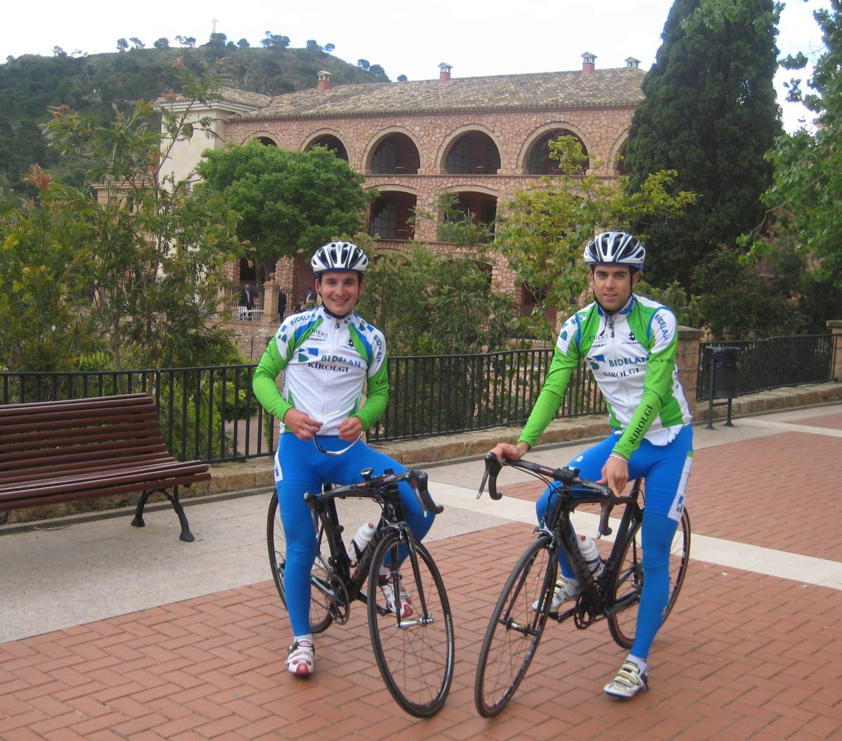 Un descenso inedito, curvas muy cerradas, pronto me cogió Dani, le di mi bote de agua y ya se recuperó el hombre, abajo empezó a medio llover y ya me jodió el final de la bajada, el resto llano, apareció el Peque, que no sabía de donde venía, si de atrás o de alante, pero los 4 remando hasta meta en el plano. El ganador de la etapa, impresionante, un chabal de primer año, si sigue así.. Pablo Lechuga, del Andalucía Cajasur, el hombre de Jaén, segundo Mantecón.