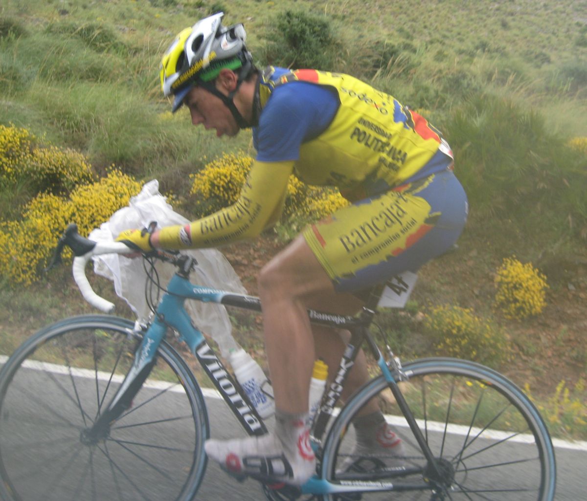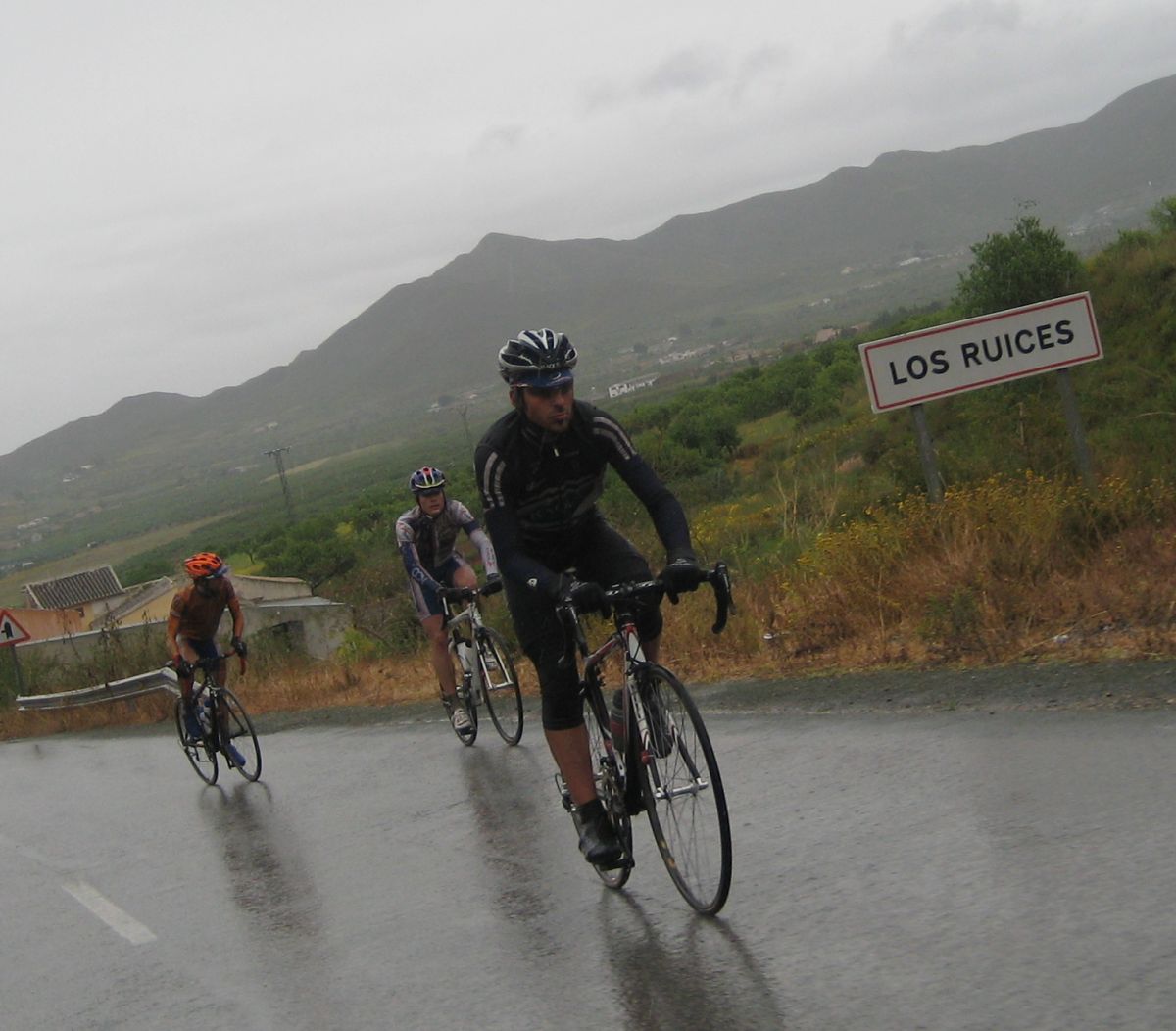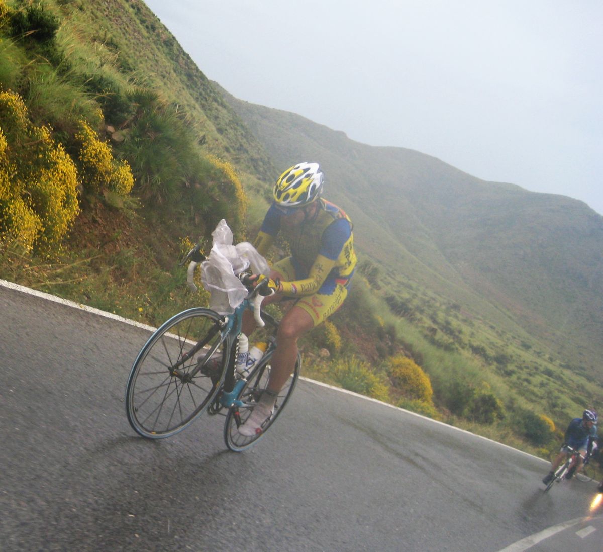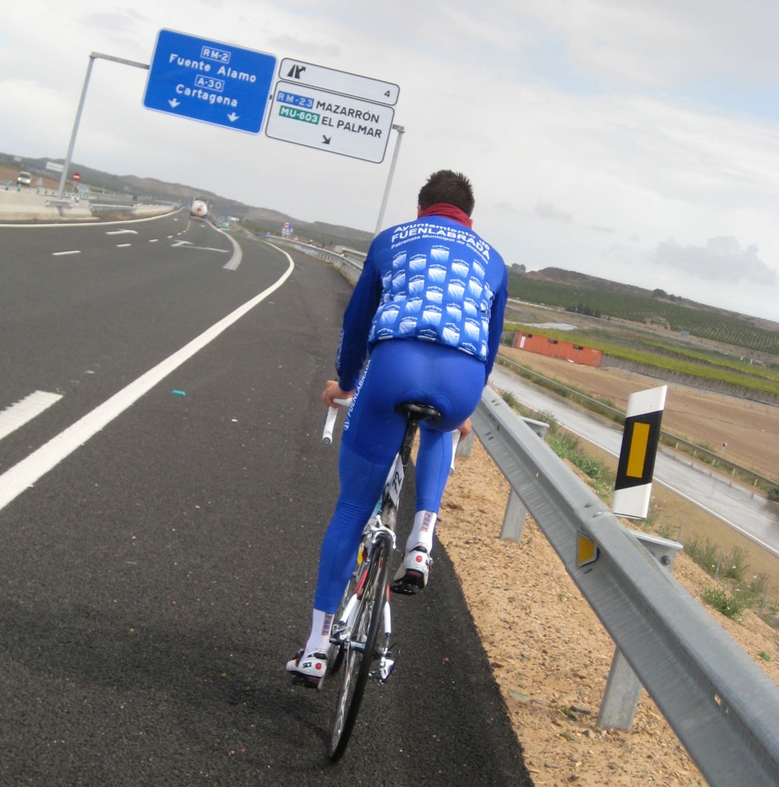 Pasaron todos los coches, de repente me veia ahí solo bordeando la playa de Mazarrón, con un frio humedo del mar y la lluvía que no paraba, pueblos sin nada de gente vacios, nadie, no había naiden!! y yo temblando de frio, tiritando, malisimo, con un maillot cortito cayendo agua helada a 9 grados, me había quedado hasta sin comida, no se commo podía hacer tanto frío por allí.