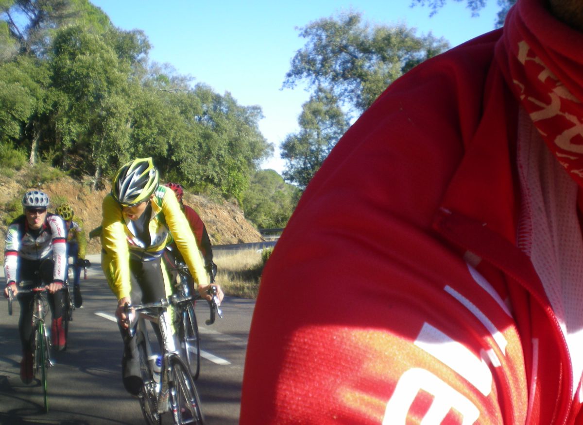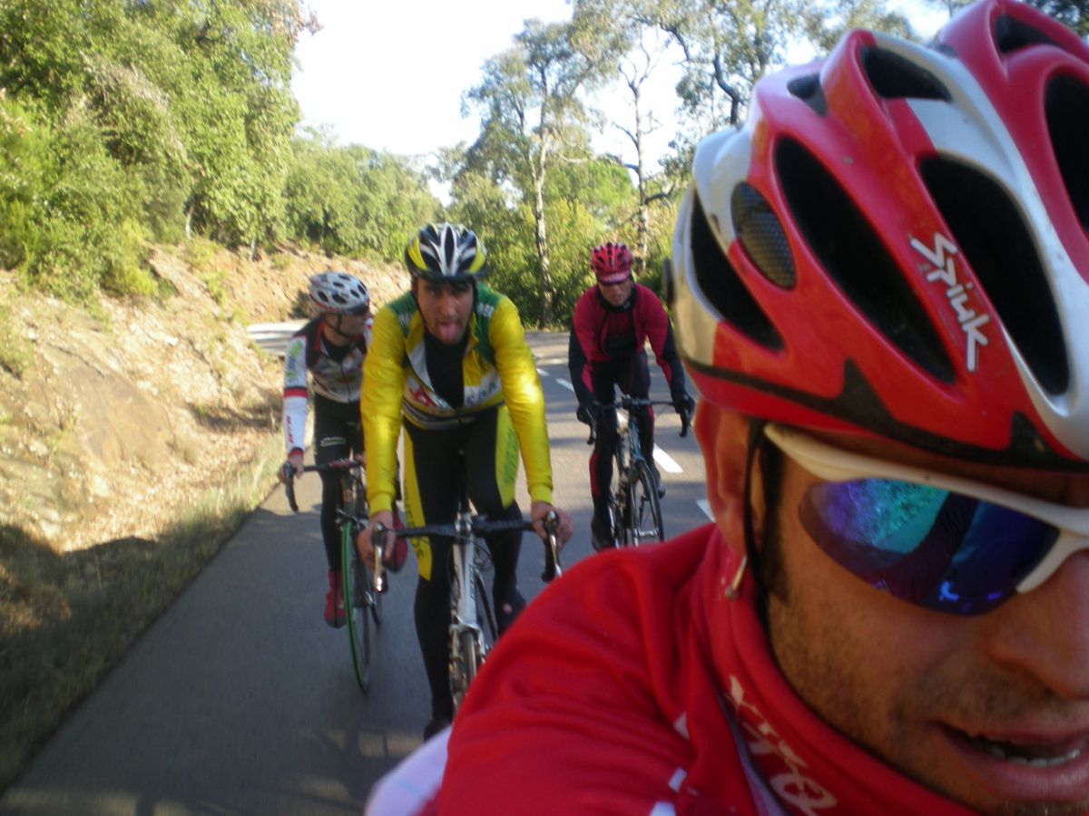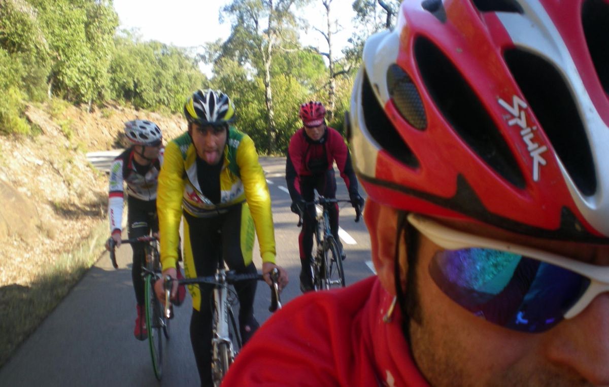 La foto oficial, el pose oficial de la grupeta, con su kapo Xavi del biketeam Salicru.
