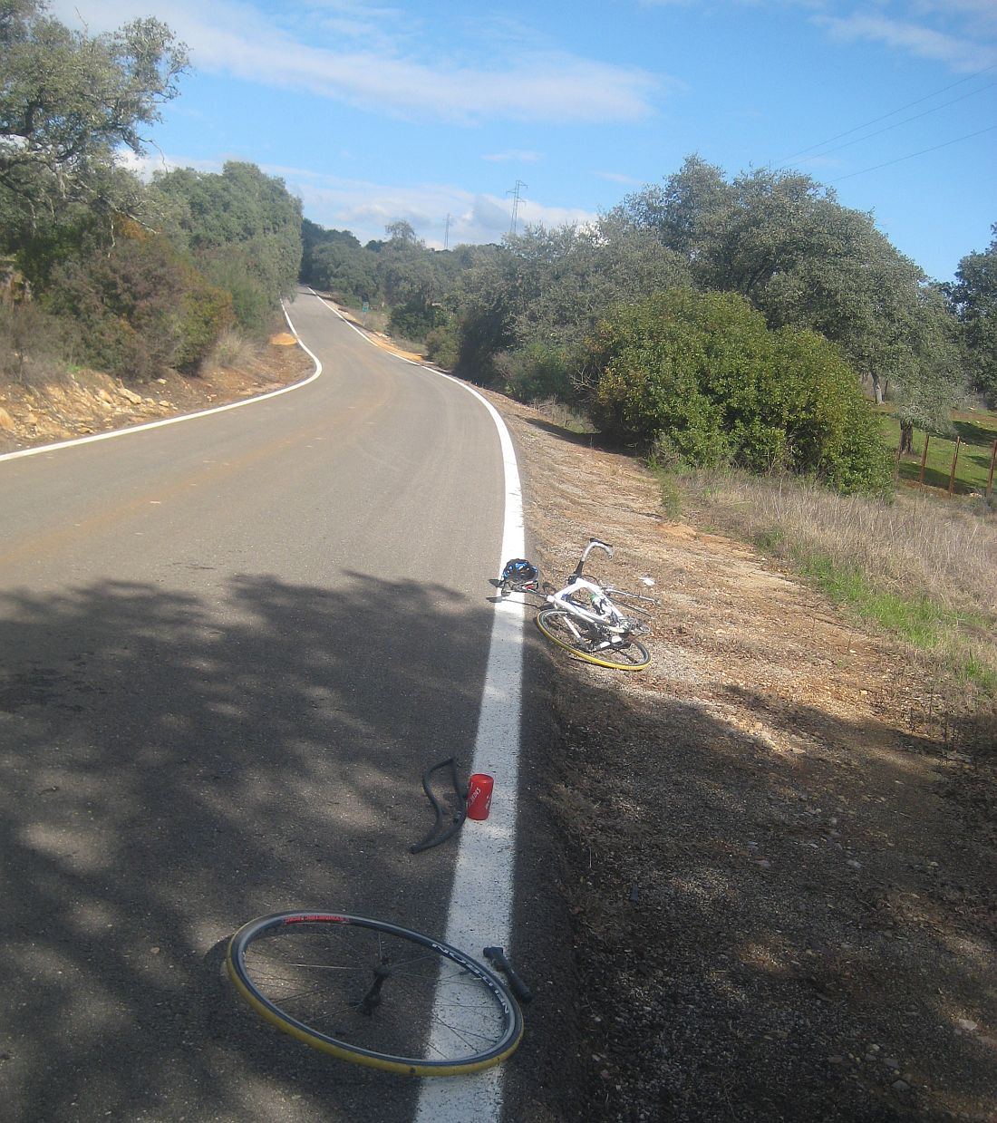 Y plagados de pinchazos, yo reparo a la sombra.. no apareció ningun coche en lo que tarde.