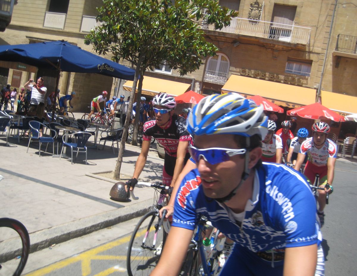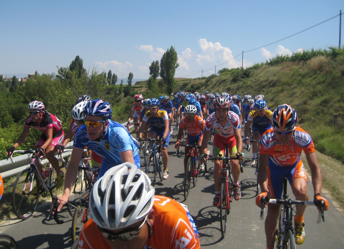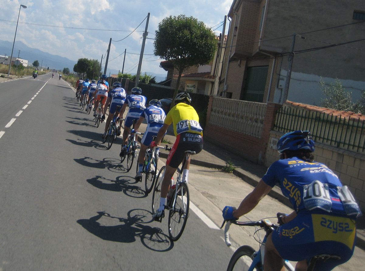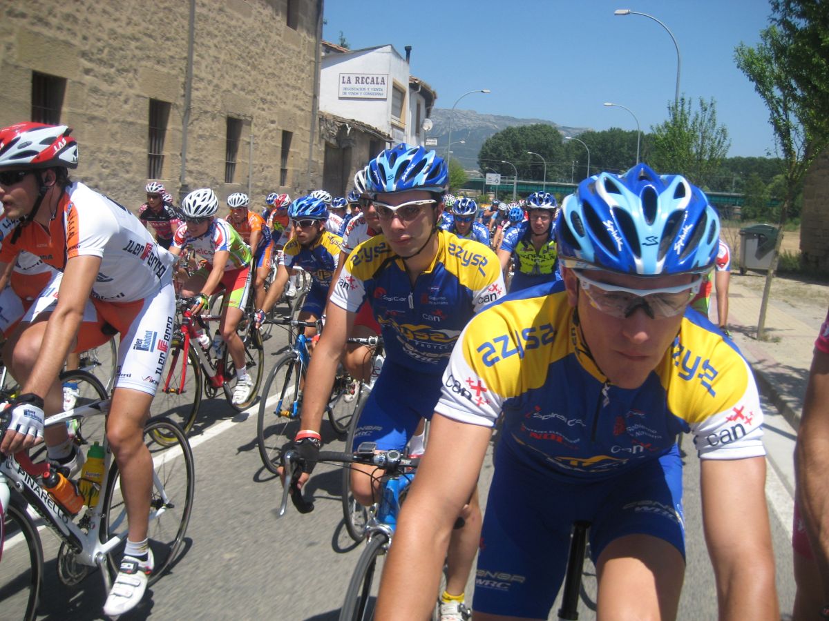 Empezamos el Muro y estaban los coches del grupo!! Joder!! Si todavía pillamos alante! Empezé a bailar la bici de Mayordomo y eso subía rápido, ahí subí con Abel y con el líder, y cogimos algunos pero el grupo lo teníamos al lado, se pusó a tirar un Seguros Bilbao para el lider a muerte con otro Telco para pillar el grupo ese pero nos quedamos a metros de cogerles, en Haro esprintamos y todo, pero para hacer el 40º o así. El Bicho Zugasti que venía de atras todavía pudo hacer noveno, como iba, como me espatarró en el puente!, eso si, gano su compañero Oriol Colomé.