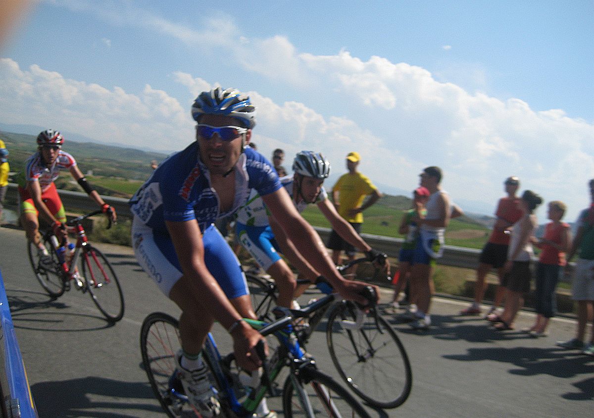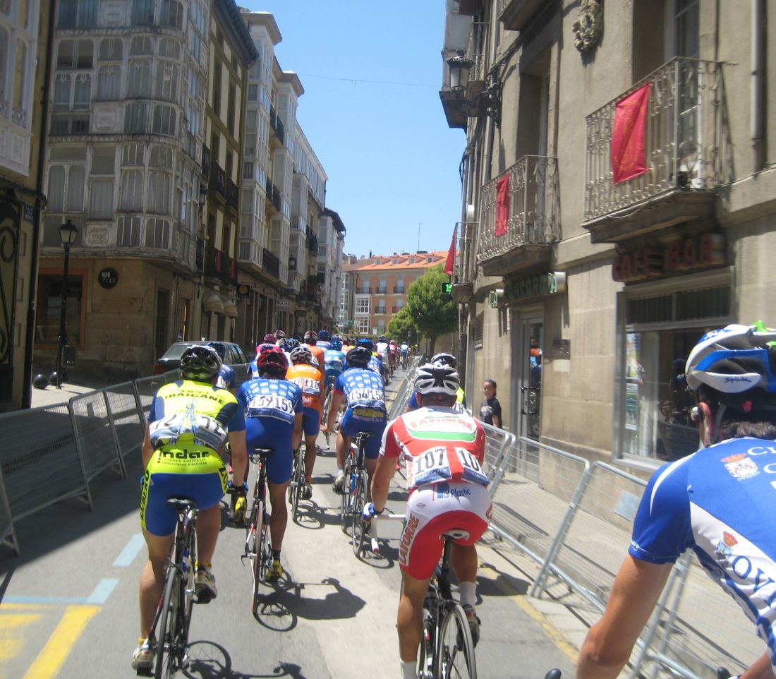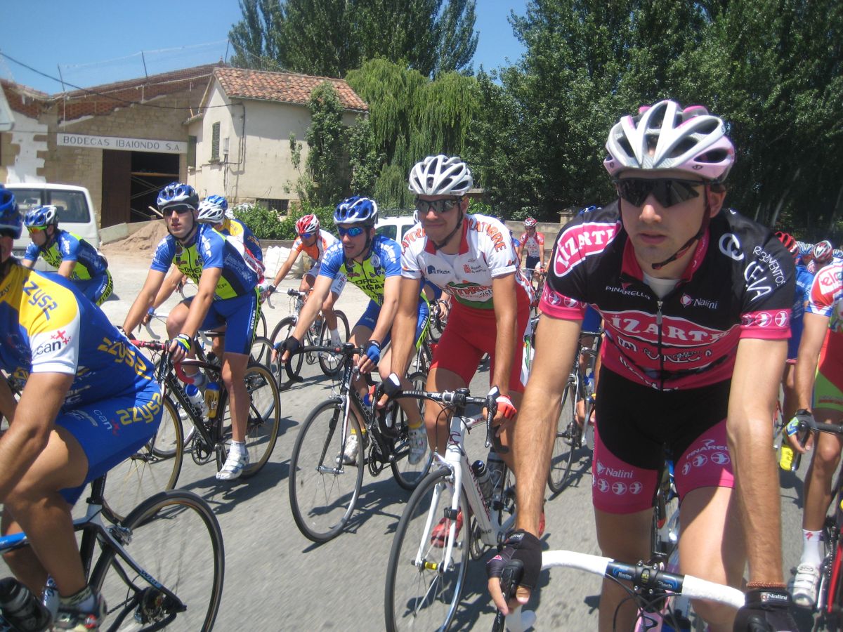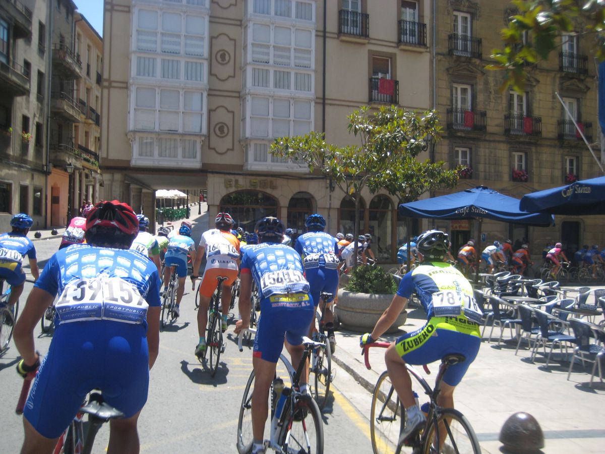 Empezamos el Muro y estaban los coches del grupo!! Joder!! Si todavía pillamos alante! Empezé a bailar la bici de Mayordomo y eso subía rápido, ahí subí con Abel y con el líder, y cogimos algunos pero el grupo lo teníamos al lado, se pusó a tirar un Seguros Bilbao para el lider a muerte con otro Telco para pillar el grupo ese pero nos quedamos a metros de cogerles, en Haro esprintamos y todo, pero para hacer el 40º o así. El Bicho Zugasti que venía de atras todavía pudo hacer noveno, como iba, como me espatarró en el puente!, eso si, gano su compañero Oriol Colomé.