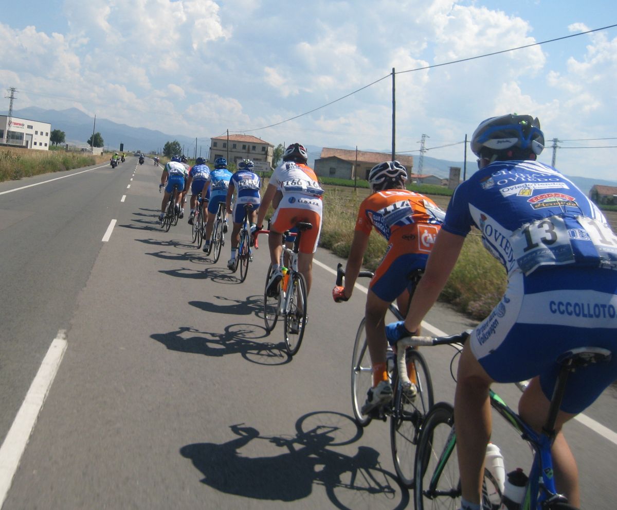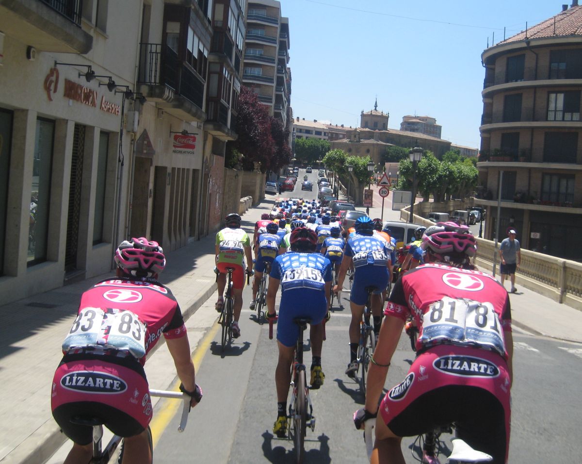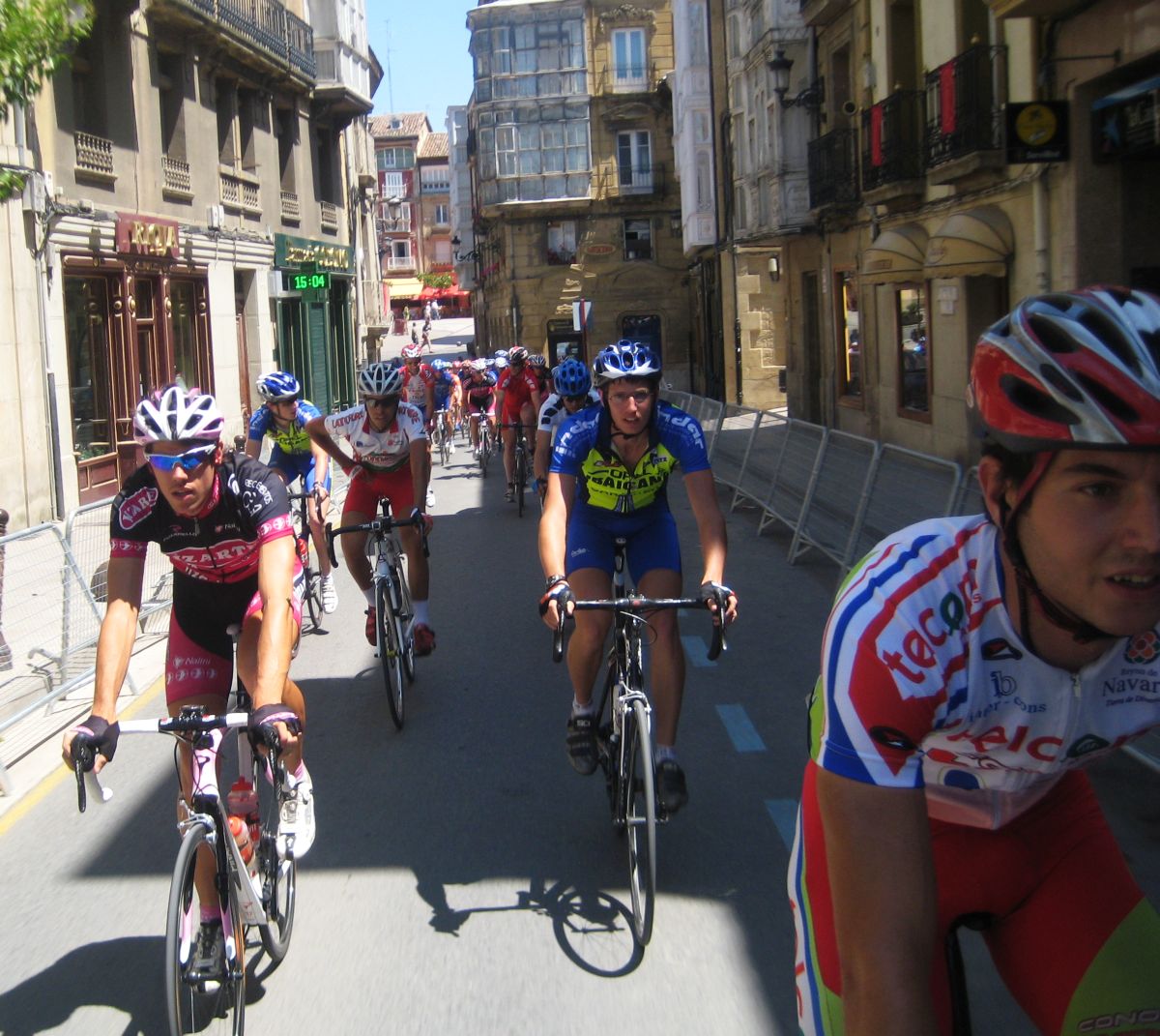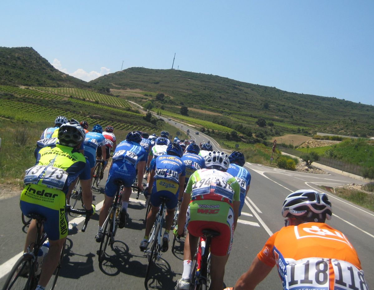 Empezamos el Muro y estaban los coches del grupo!! Joder!! Si todavía pillamos alante! Empezé a bailar la bici de Mayordomo y eso subía rápido, ahí subí con Abel y con el líder, y cogimos algunos pero el grupo lo teníamos al lado, se pusó a tirar un Seguros Bilbao para el lider a muerte con otro Telco para pillar el grupo ese pero nos quedamos a metros de cogerles, en Haro esprintamos y todo, pero para hacer el 40º o así. El Bicho Zugasti que venía de atras todavía pudo hacer noveno, como iba, como me espatarró en el puente!, eso si, gano su compañero Oriol Colomé.